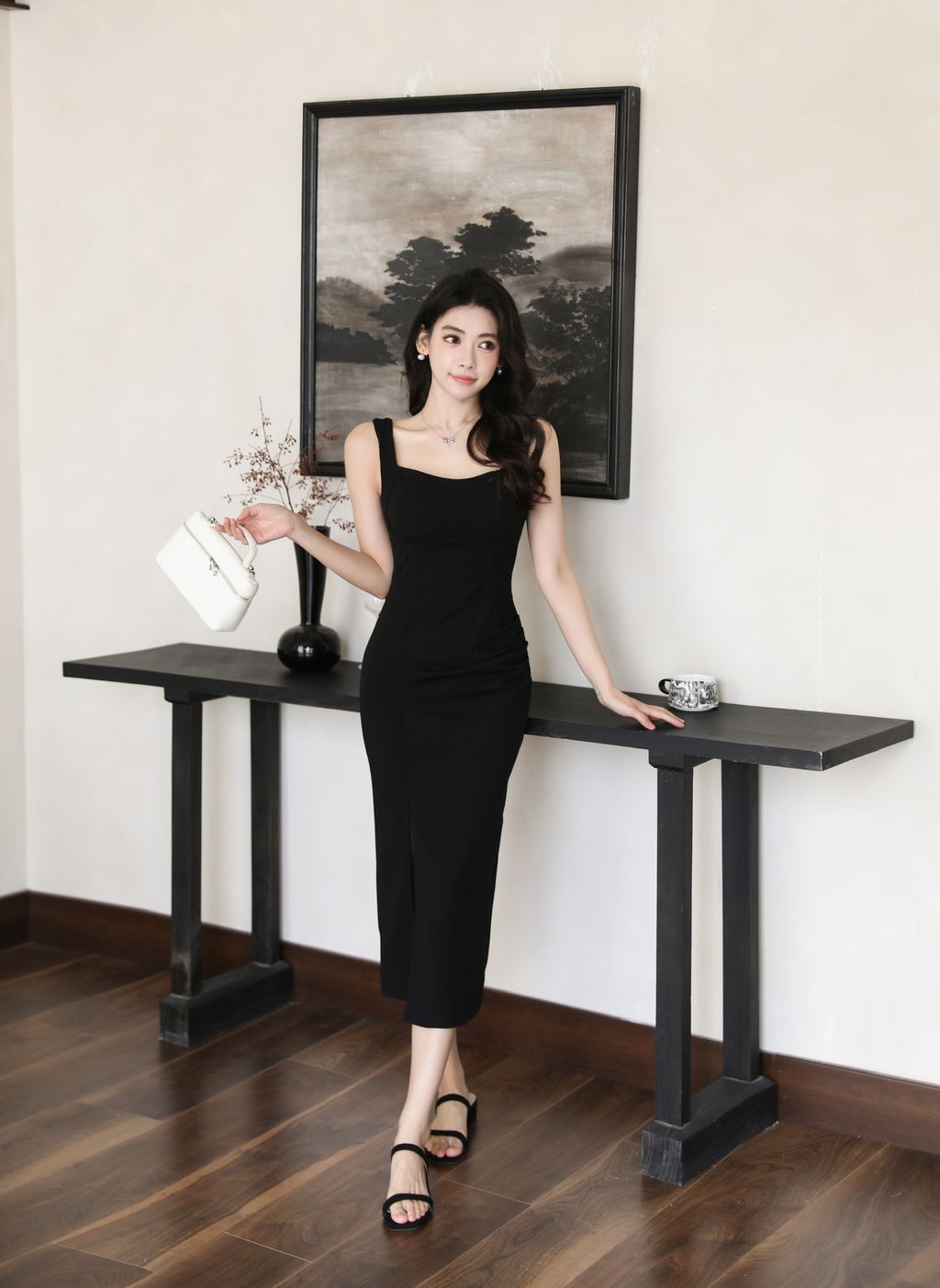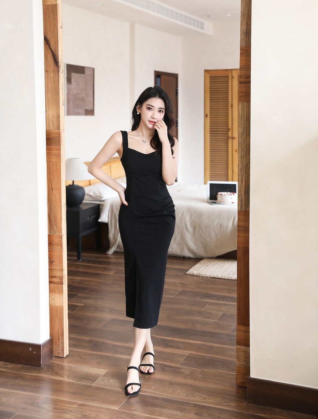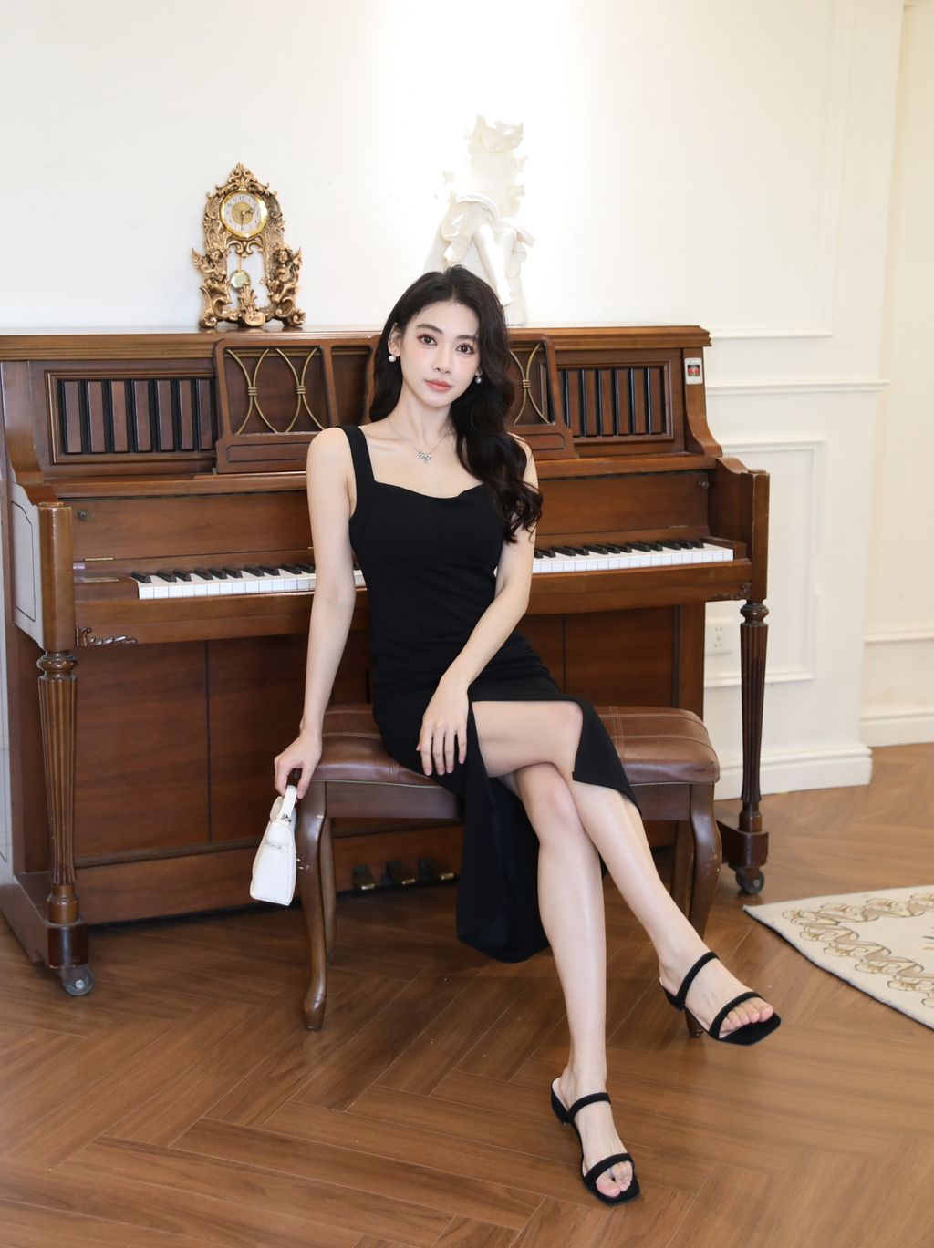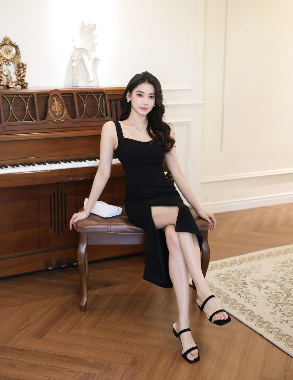 Features: Mixed suit cotton material , square neck sleeveless dress , slim-fit cutting , padded , concealed back zipper , side slit , slightly stretchable , comfy texture.