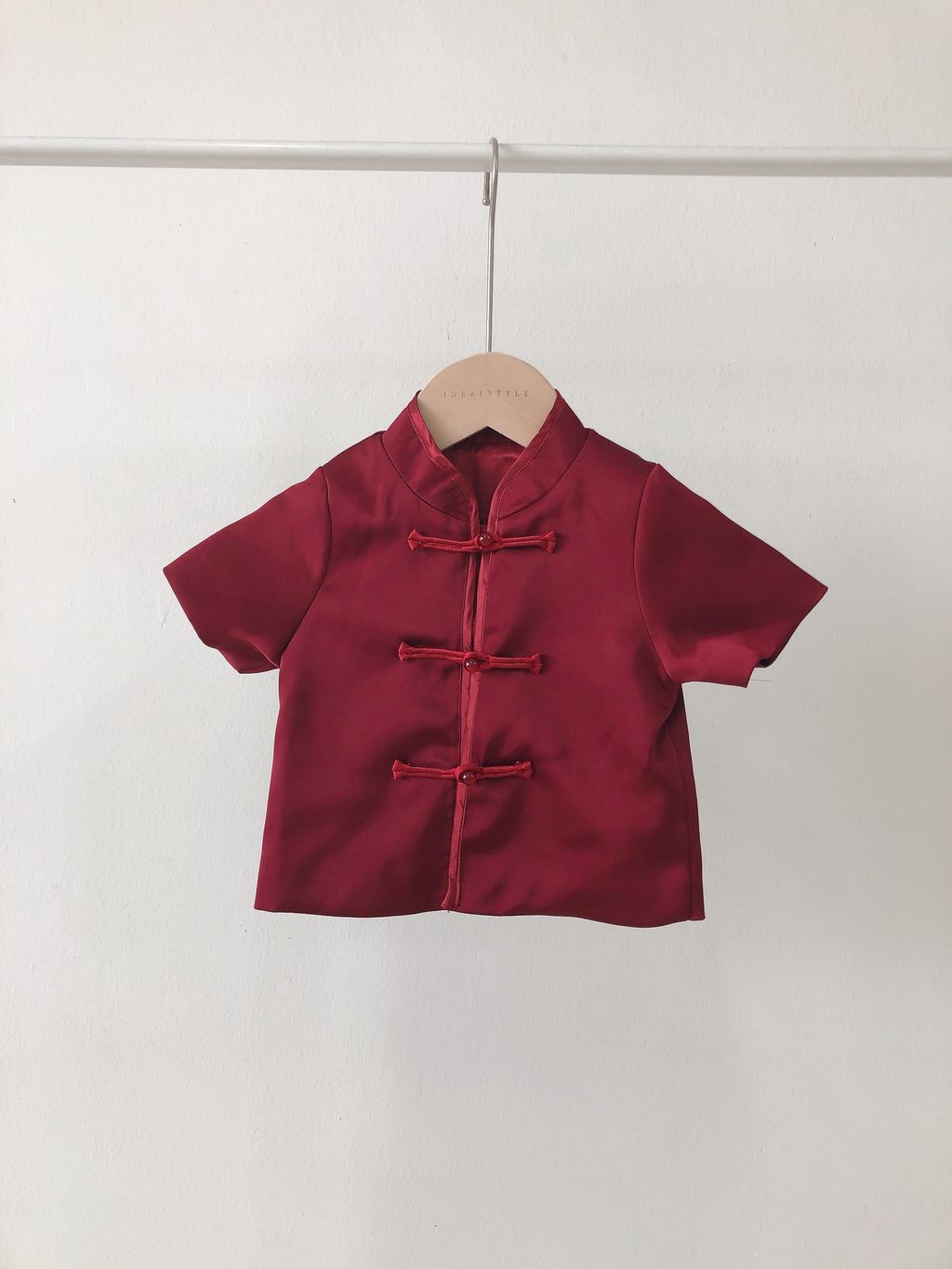 【玫花盛放】儿子唐装上衣 Rosie Boy Suit (Maroon)