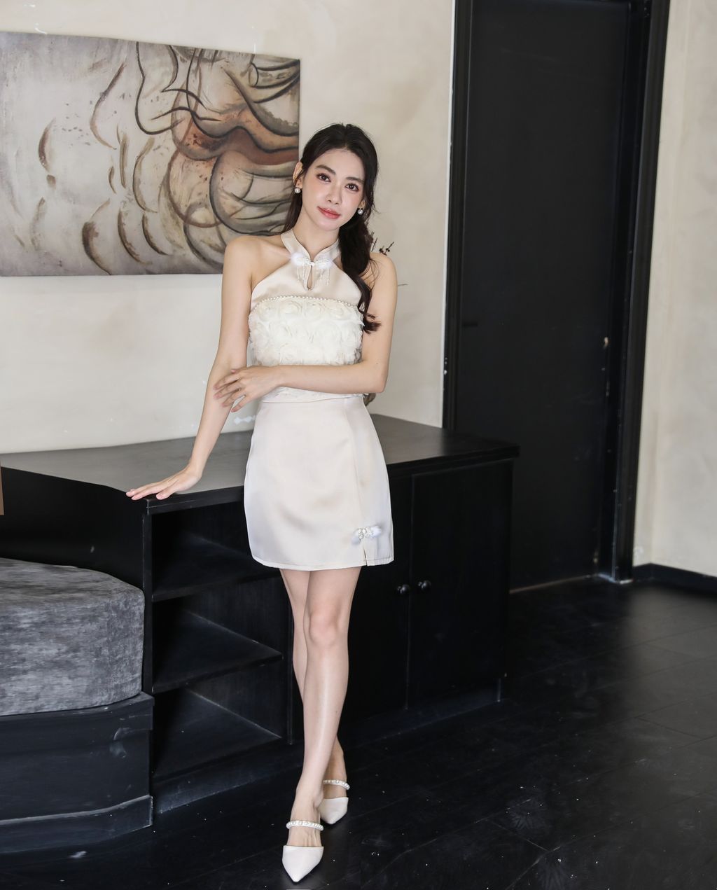 【玫花盛放】妈妈旗袍半身裙 Rosie Halter Mesh Cheongsam Skirt (Champagne)