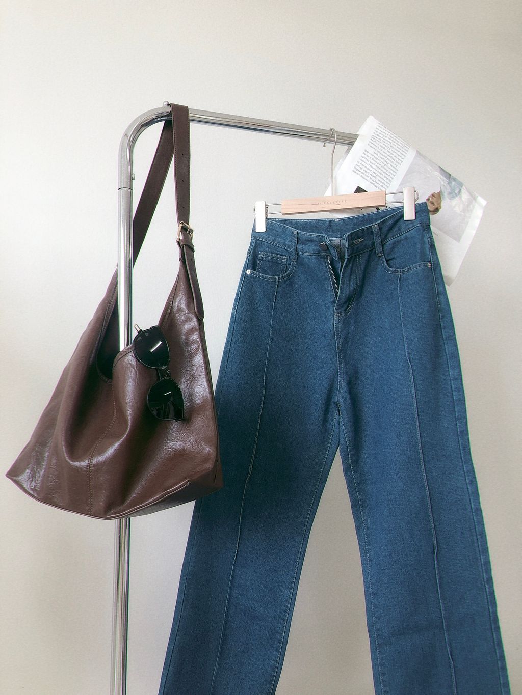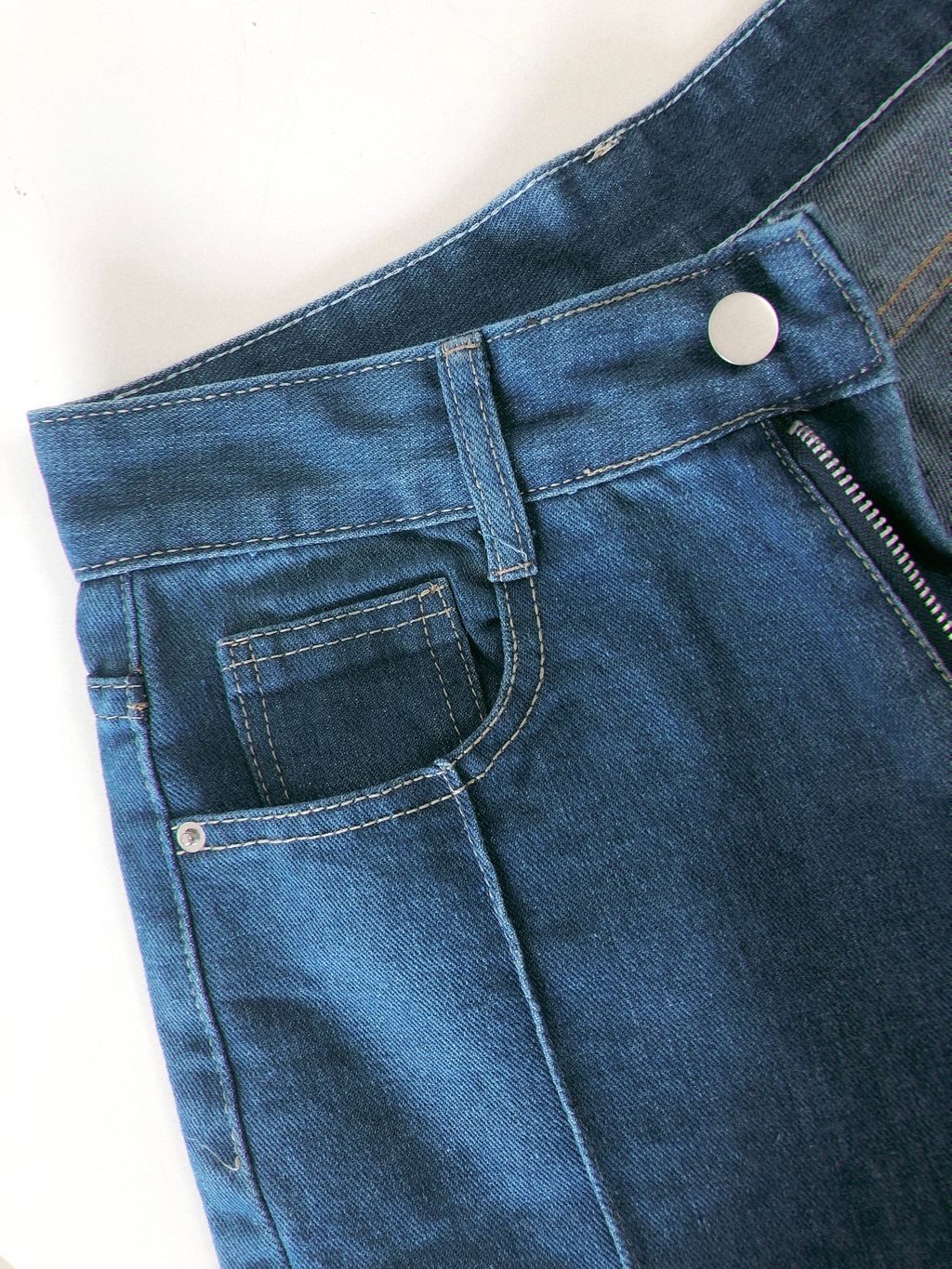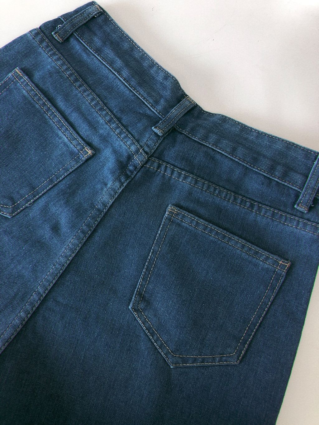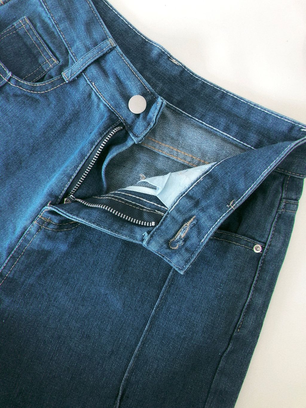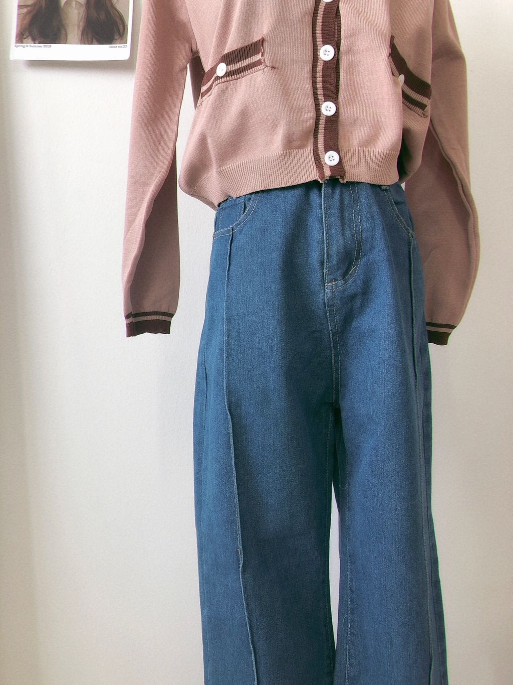 Features: Premium denim material , straight denim pants cutting , striped design , high waisted , side pockets , easy to match with other tops .