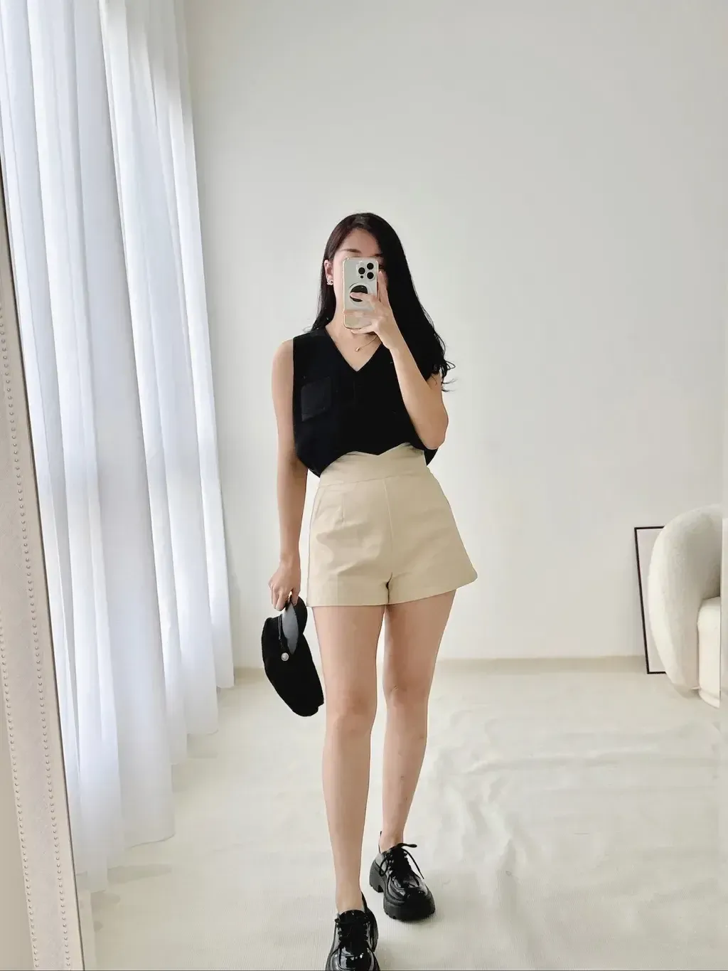 Features: Premium suit cotton materials , high-waisted suit shorts deisgn , decent length , side pockets , concealed back zipper , a-shaped design , slim-fit cutting , come with inner safety pants , easy to match with other tops .