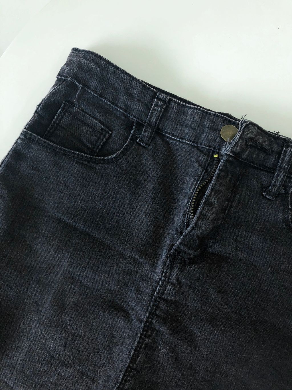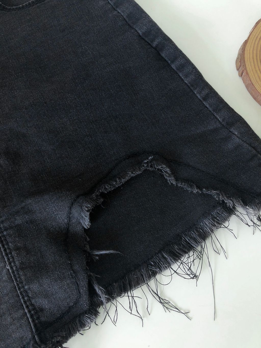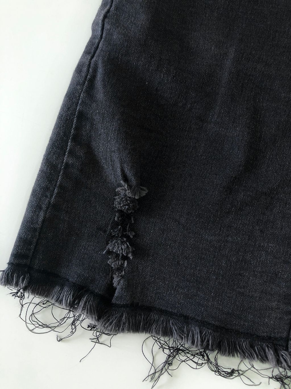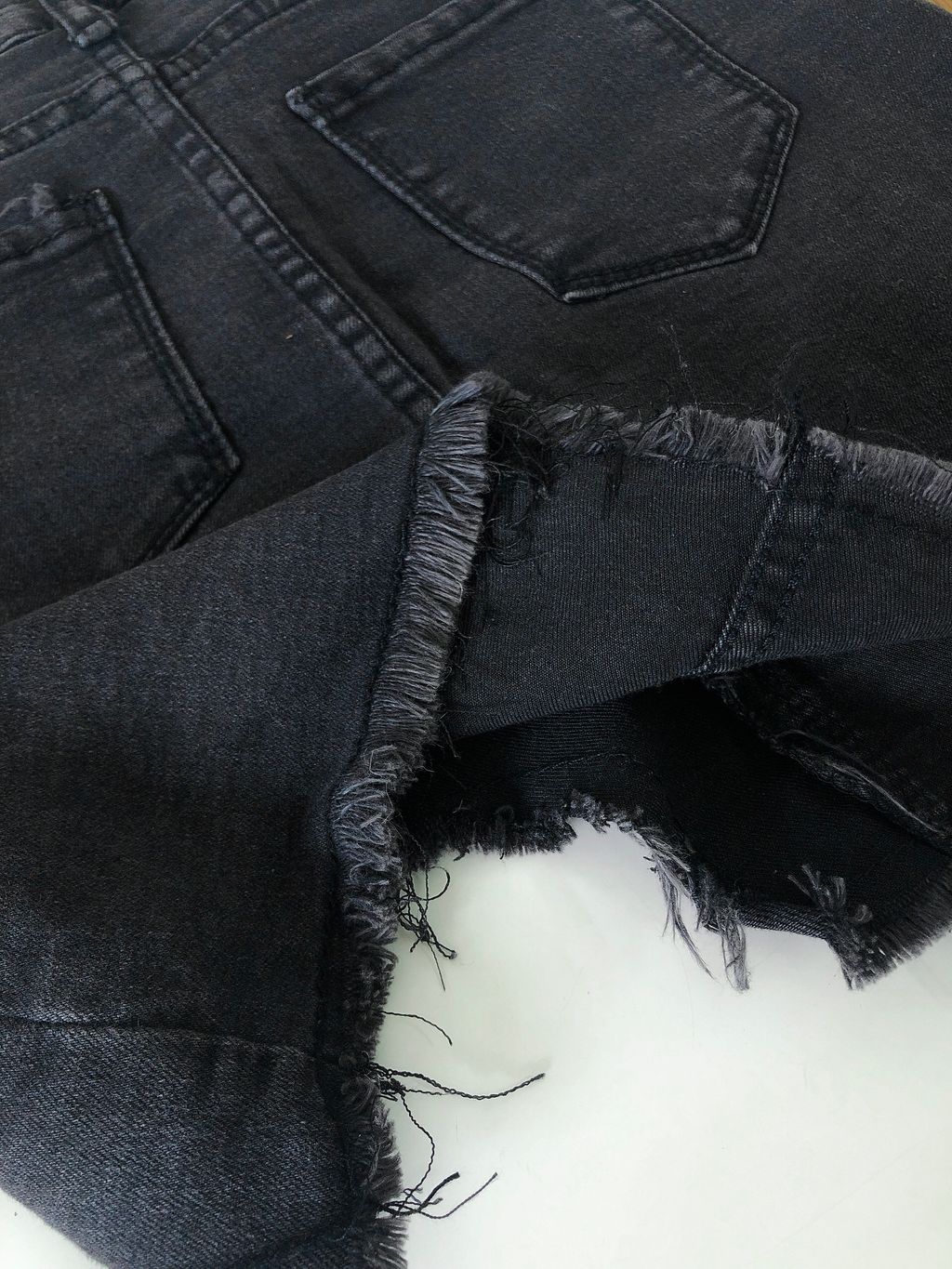 Features: Decent length , side pockets , irregular frayed edge design , stretchy materials , comfy texture , easy to style with any tops .