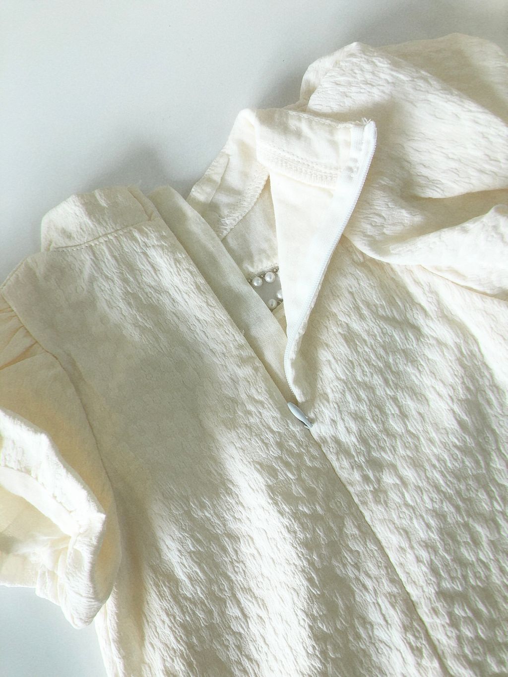 Features: Premium chiffon cotton material , 3D textured cheongsam girl dress , A-shaped cutting , puffy sleeves , come with inner-lining , comfy texture .