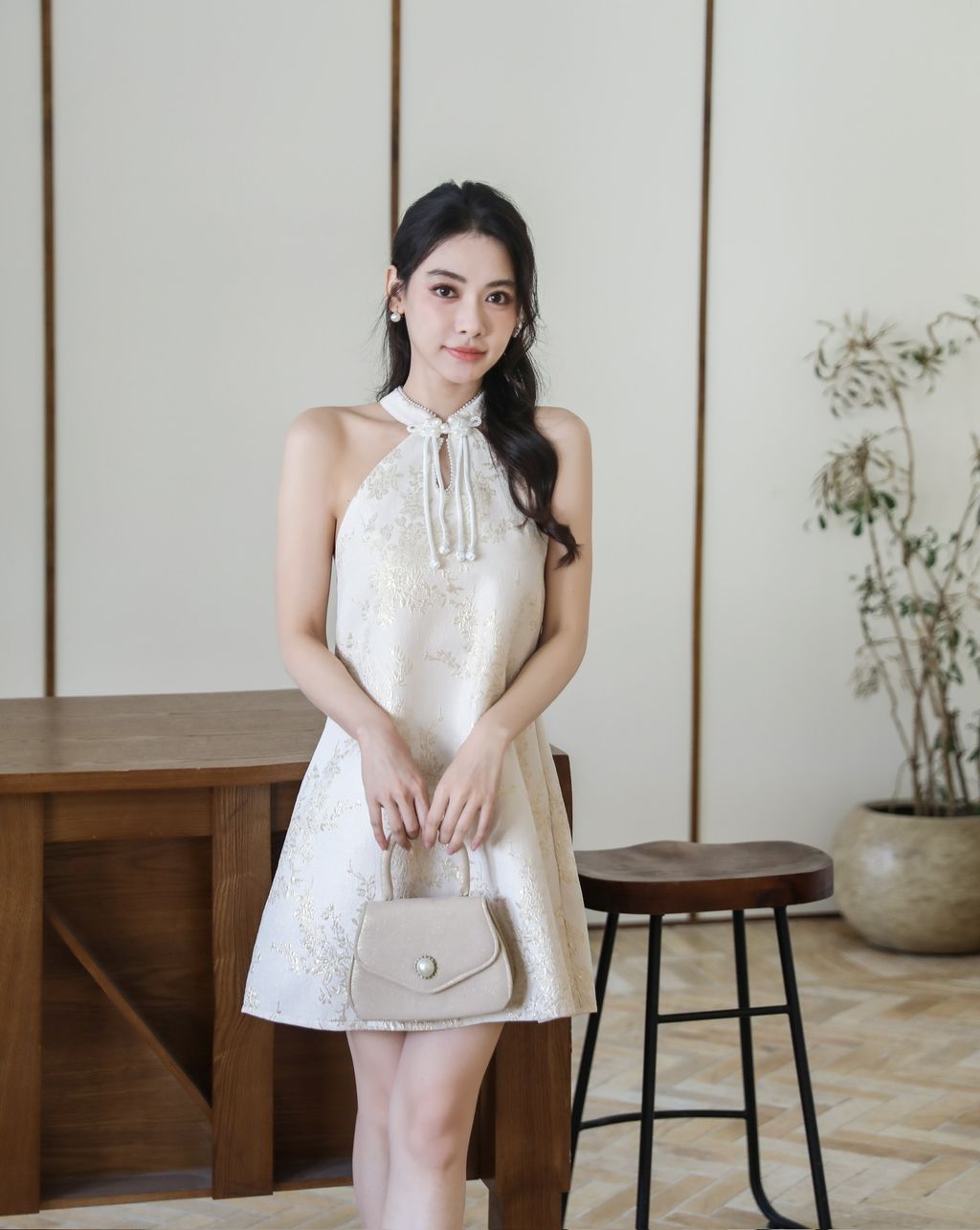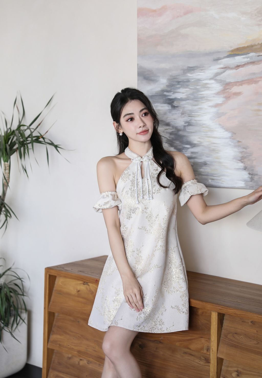 (Defects)【金枝玉叶】 妈妈娃娃裙 Jin Zhi Halter Wawa Dress (Beige) *含可拆卸袖子