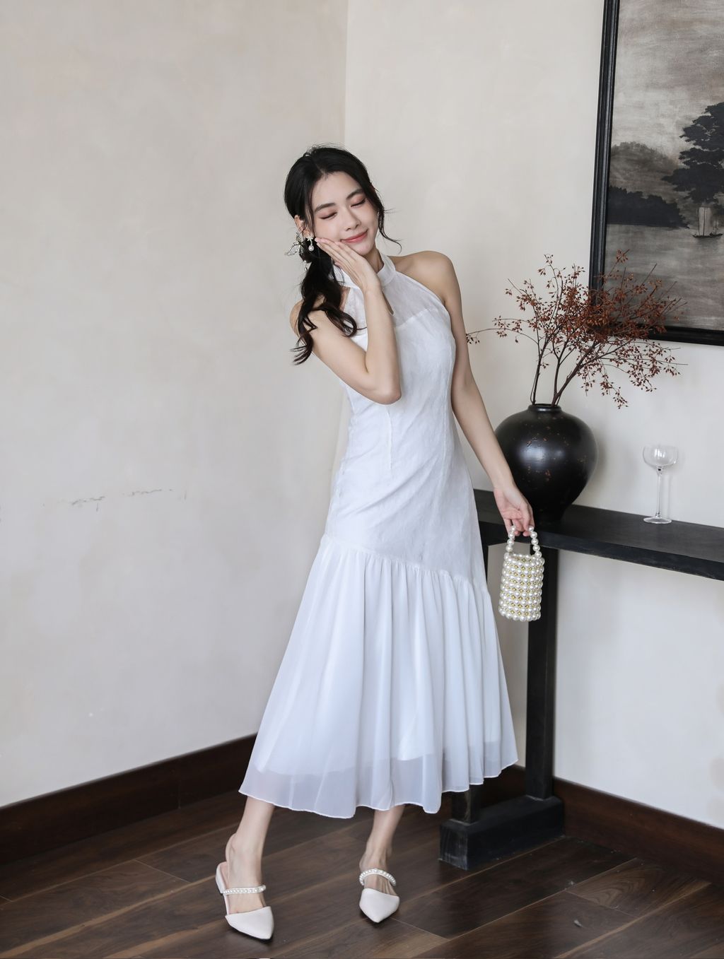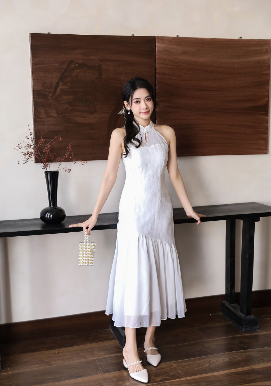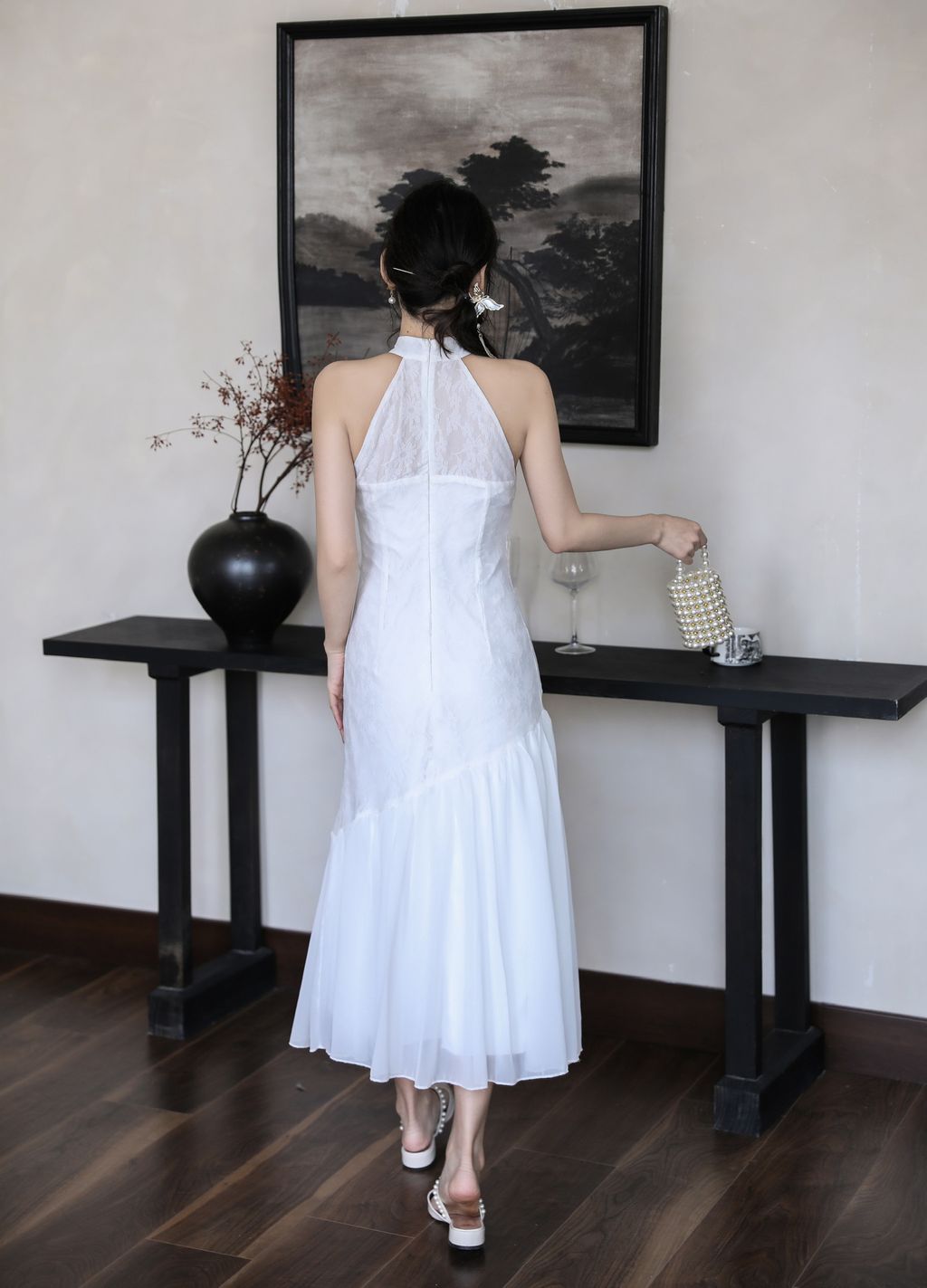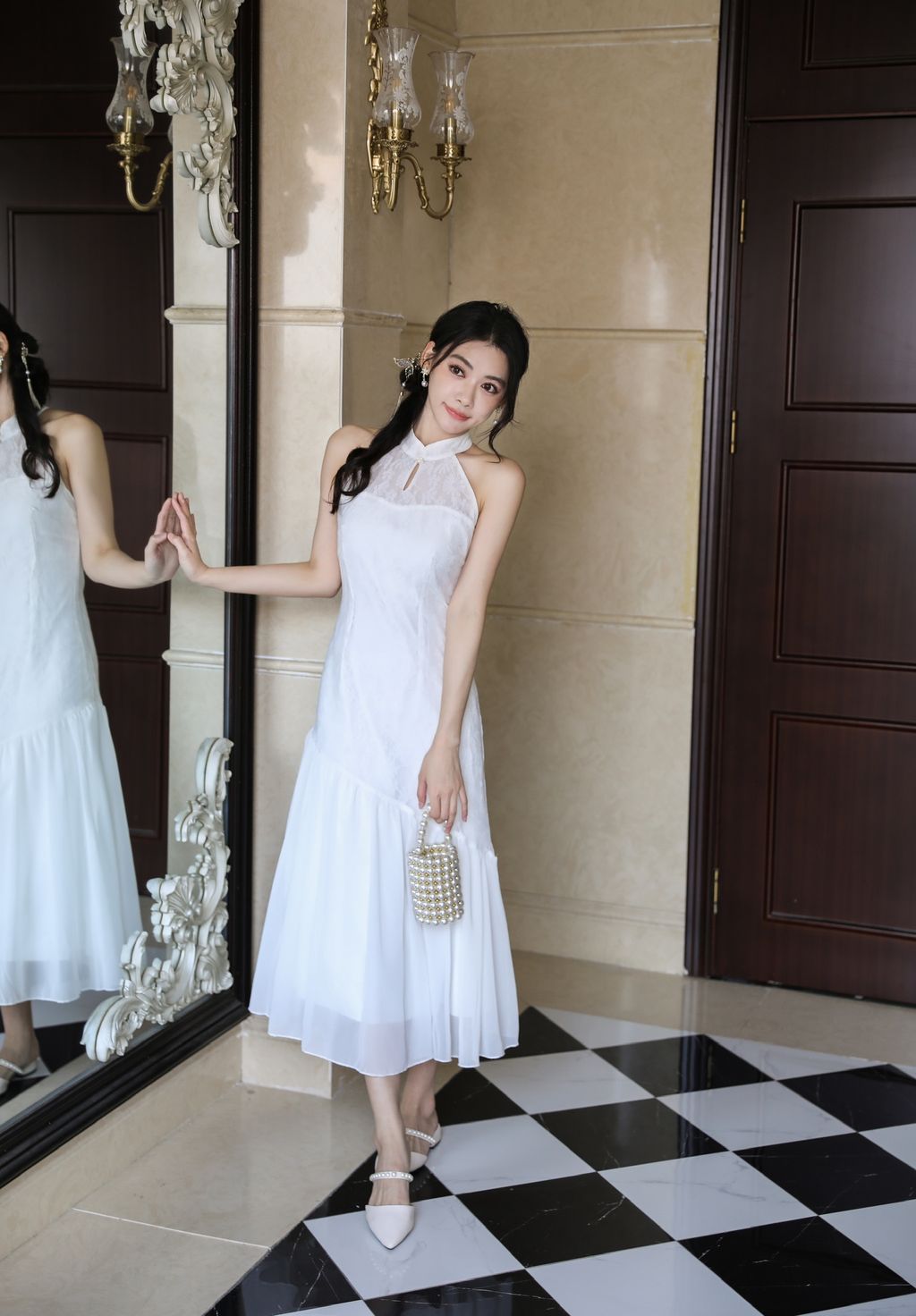 【沉鱼落雁】 Mermaid Lace Halter Cheongsam Dress (White)