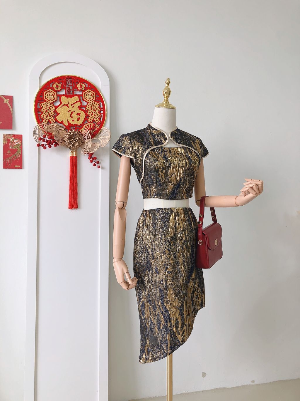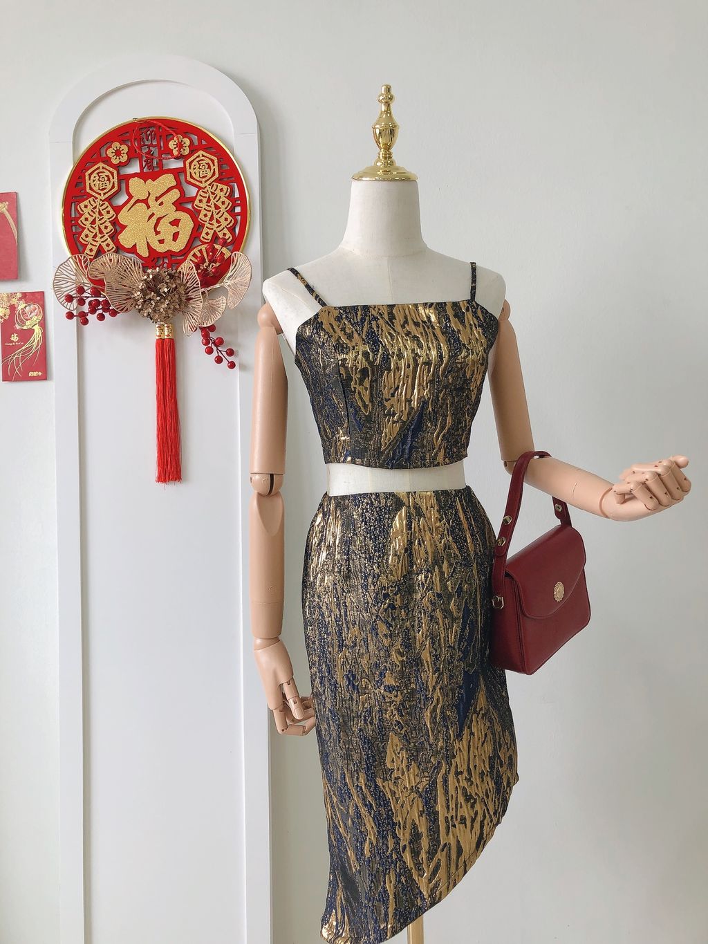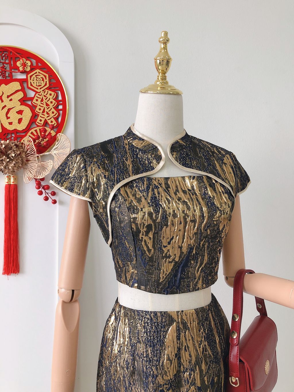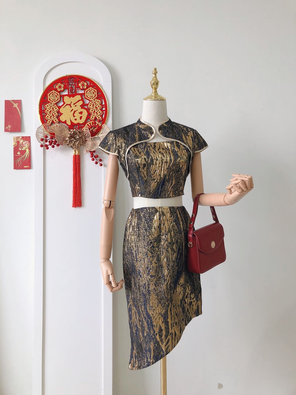 Features: Premium silky satin material , embroidery cheongsam set , come in one set , crop outerwear, spaghetti singlet top , adjustable straps , back zipper , irregualr midi skirt , high waisted , come with inner-lining , comfy texture .