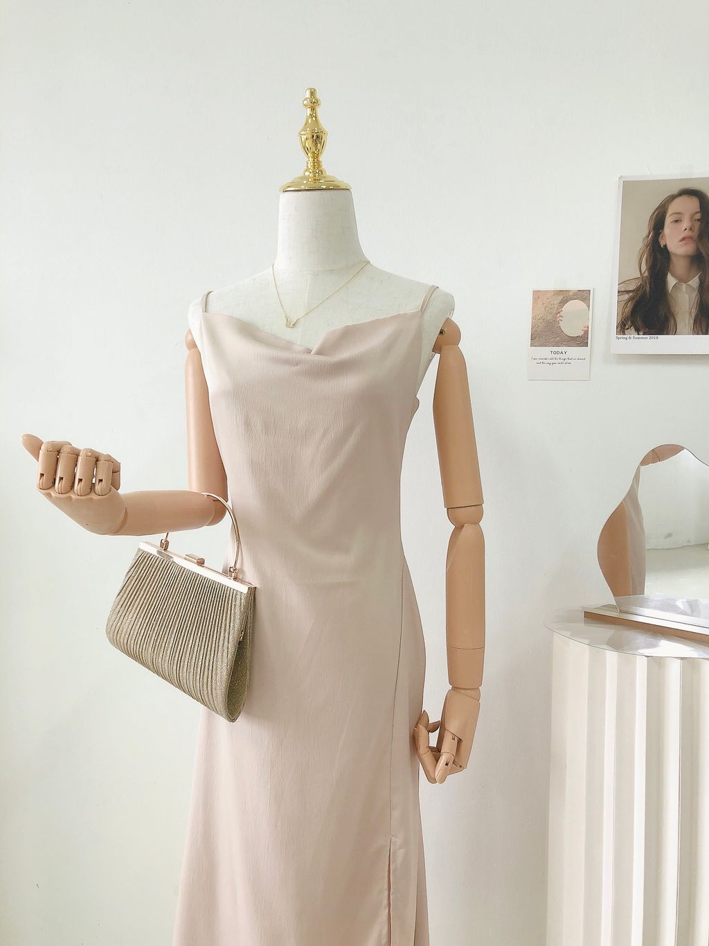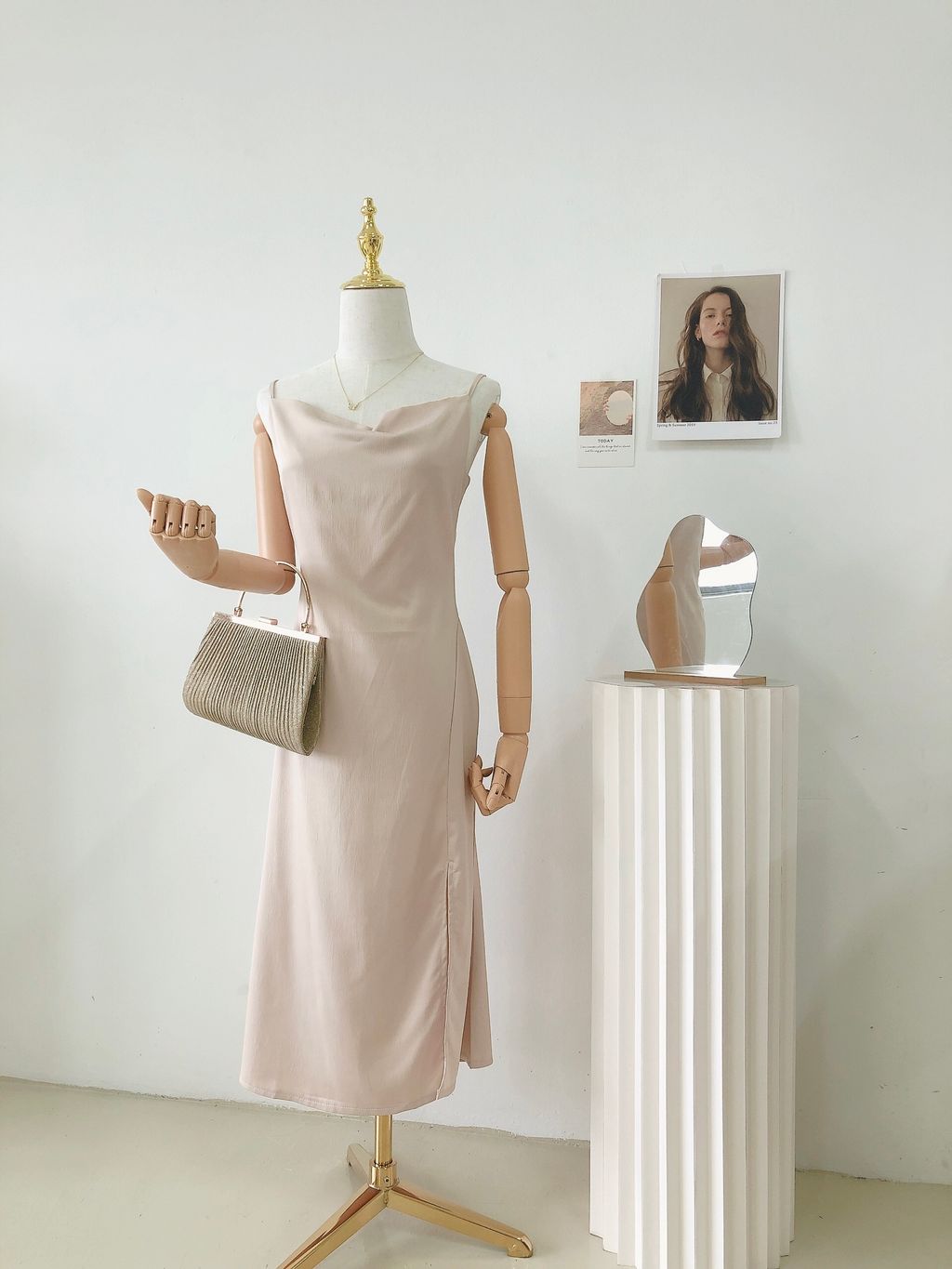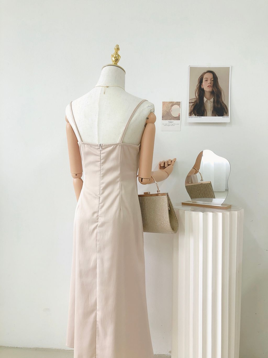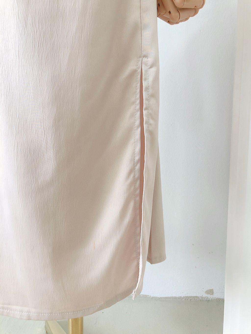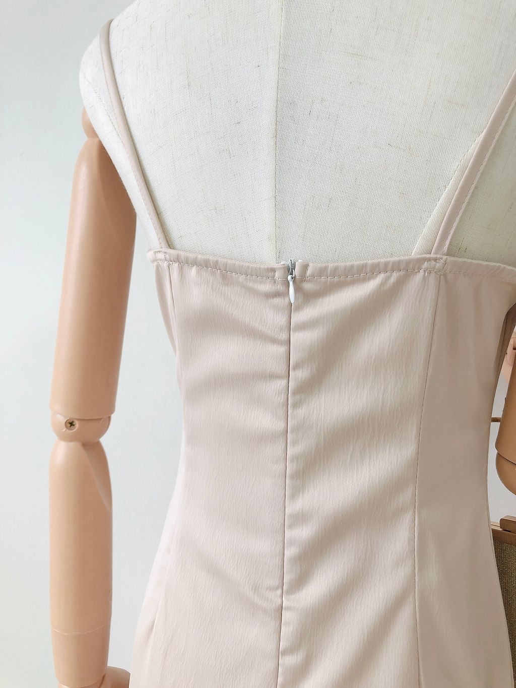 Features: Premium silky satin material , spaghetti slit satin dress , slightly stretchable , concealed back zipper .
