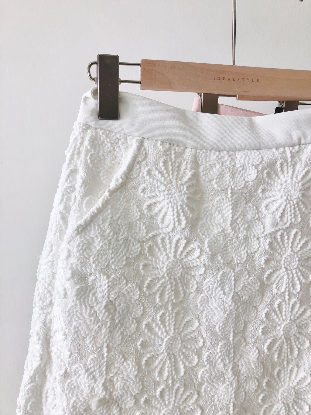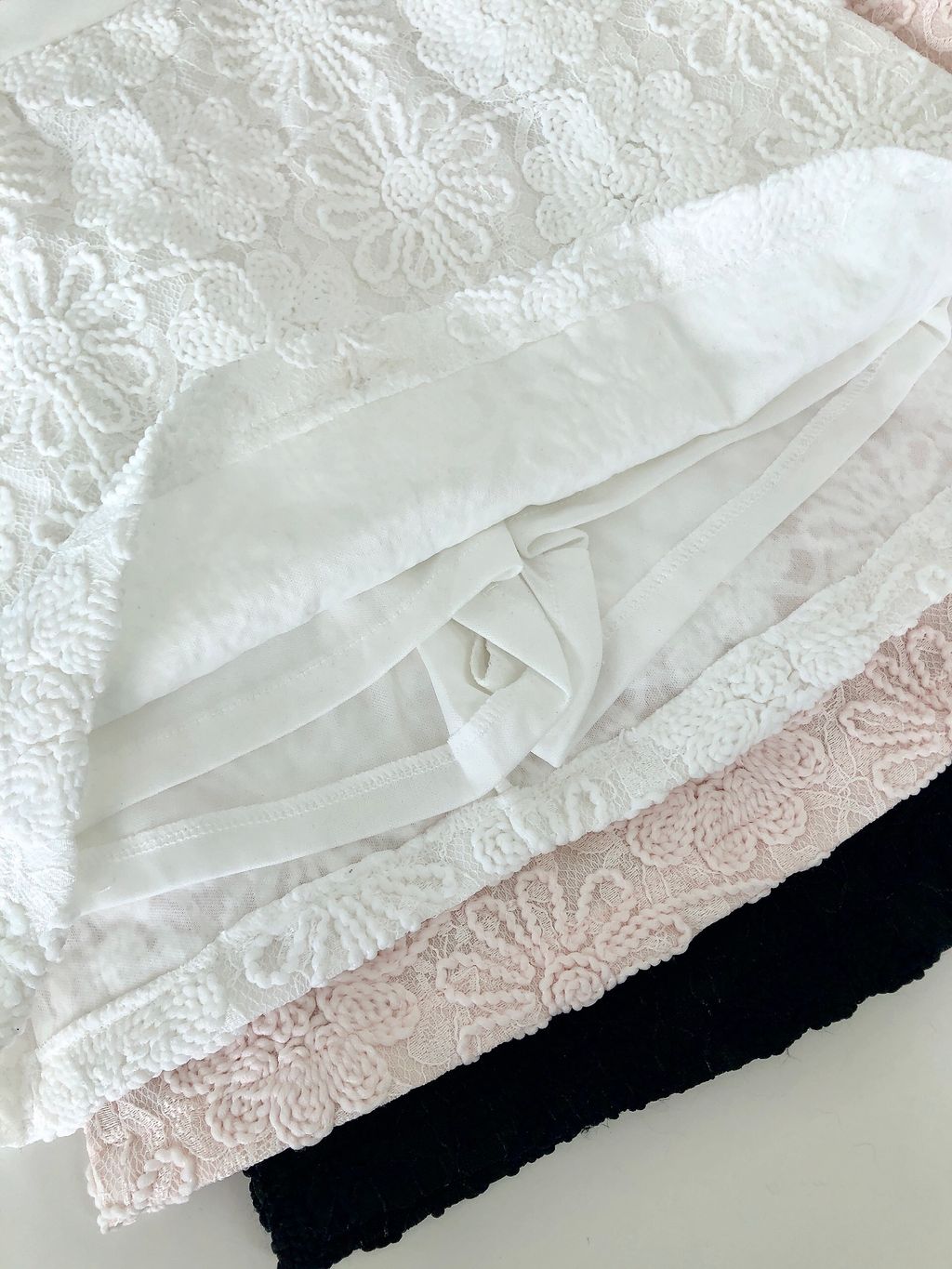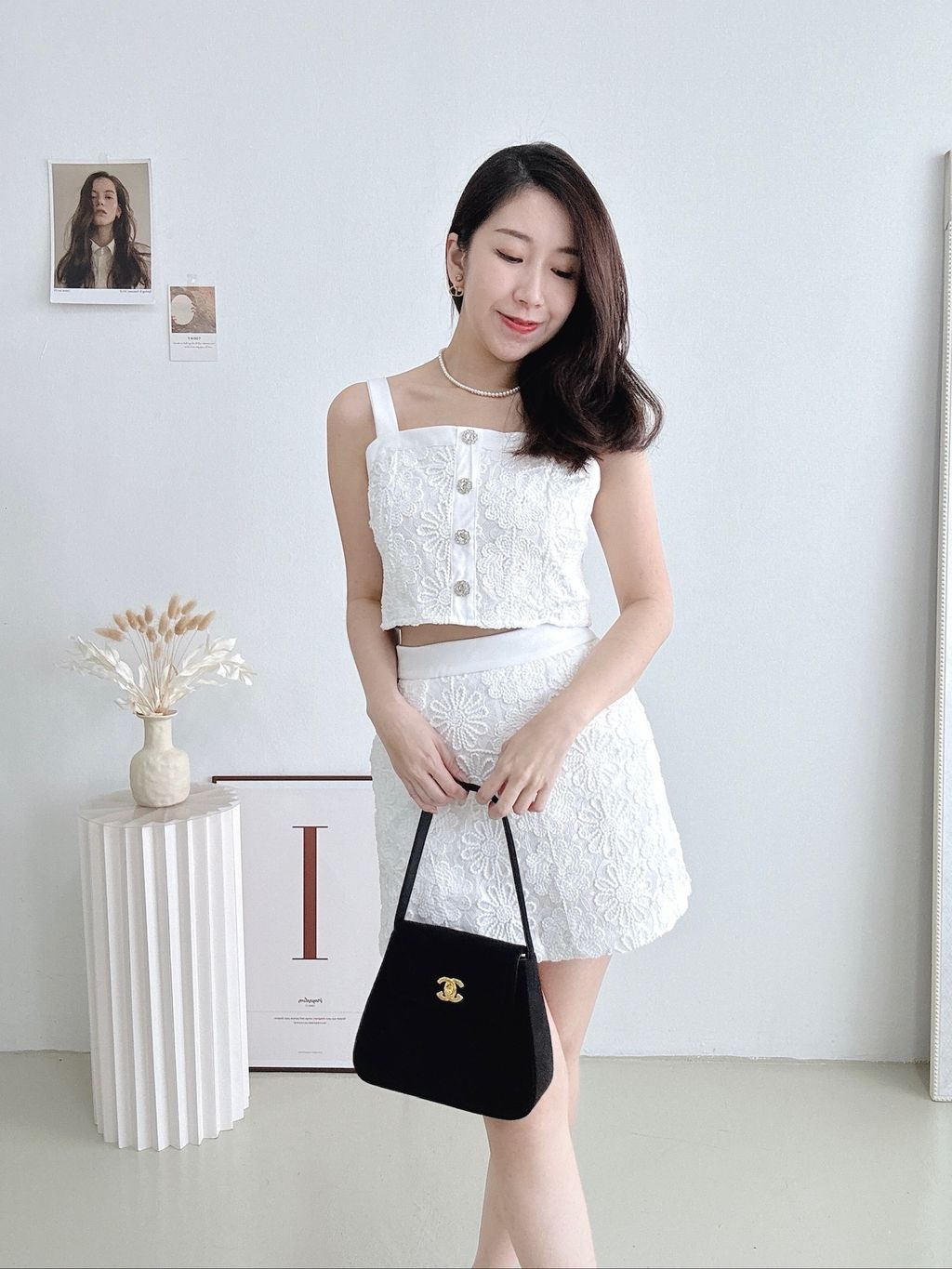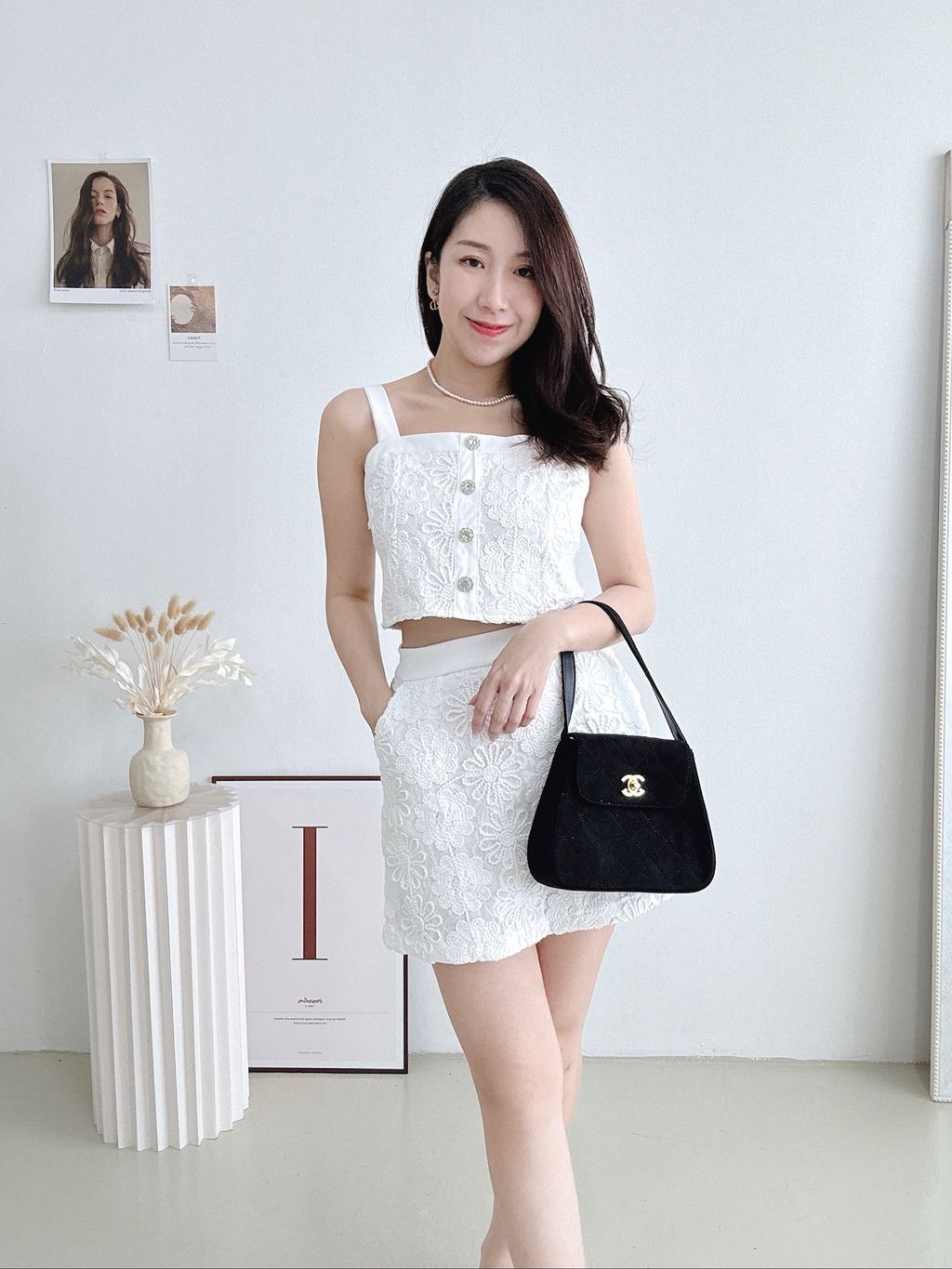 Features: Premium cotton material , floral crochet set , crochet crop top , A-shaped skirt , come in one set , back zipper , non-functional buttons , come with inner lining and safety pants , with pockets , can match with other tops and bottom separately .