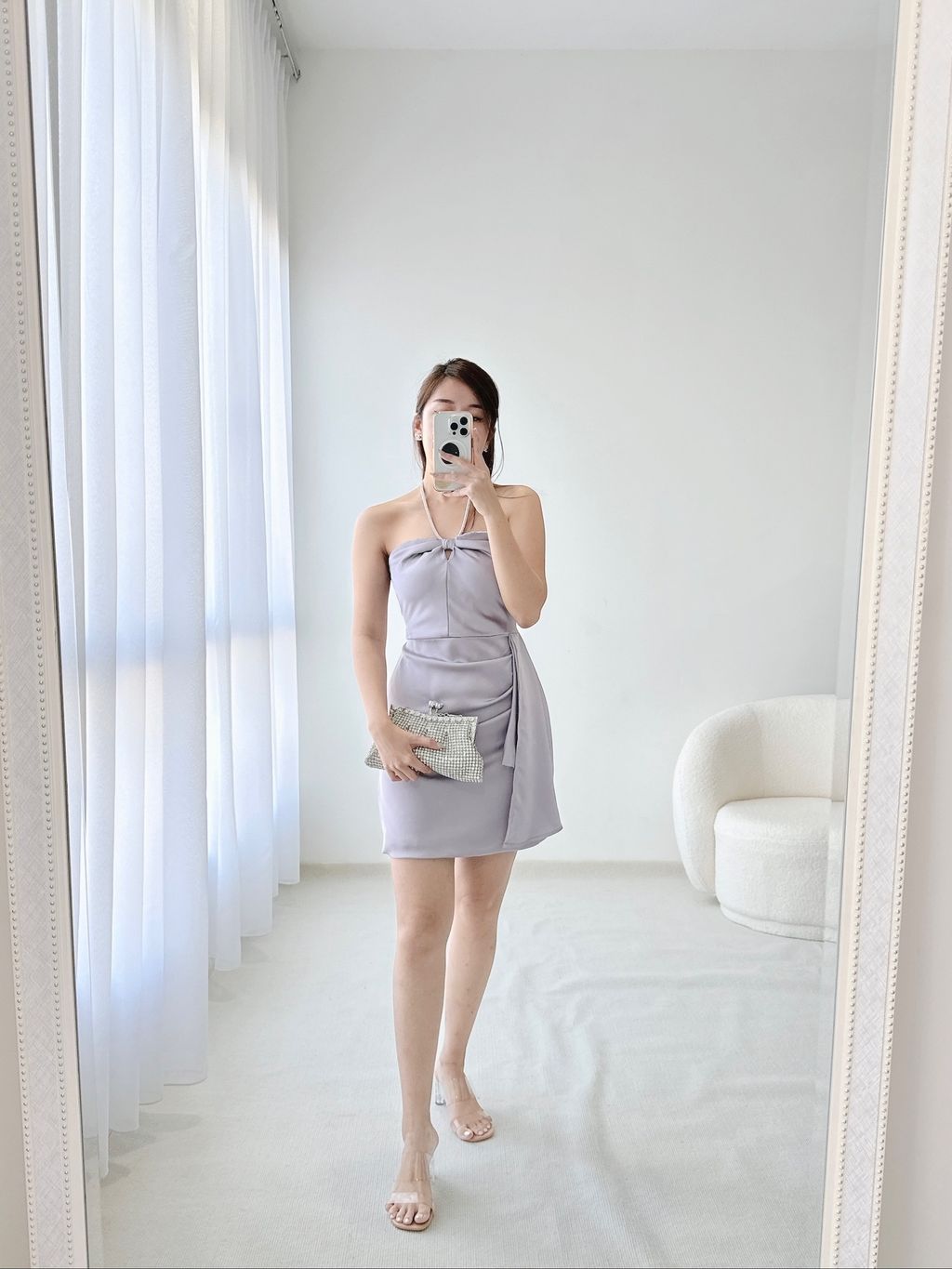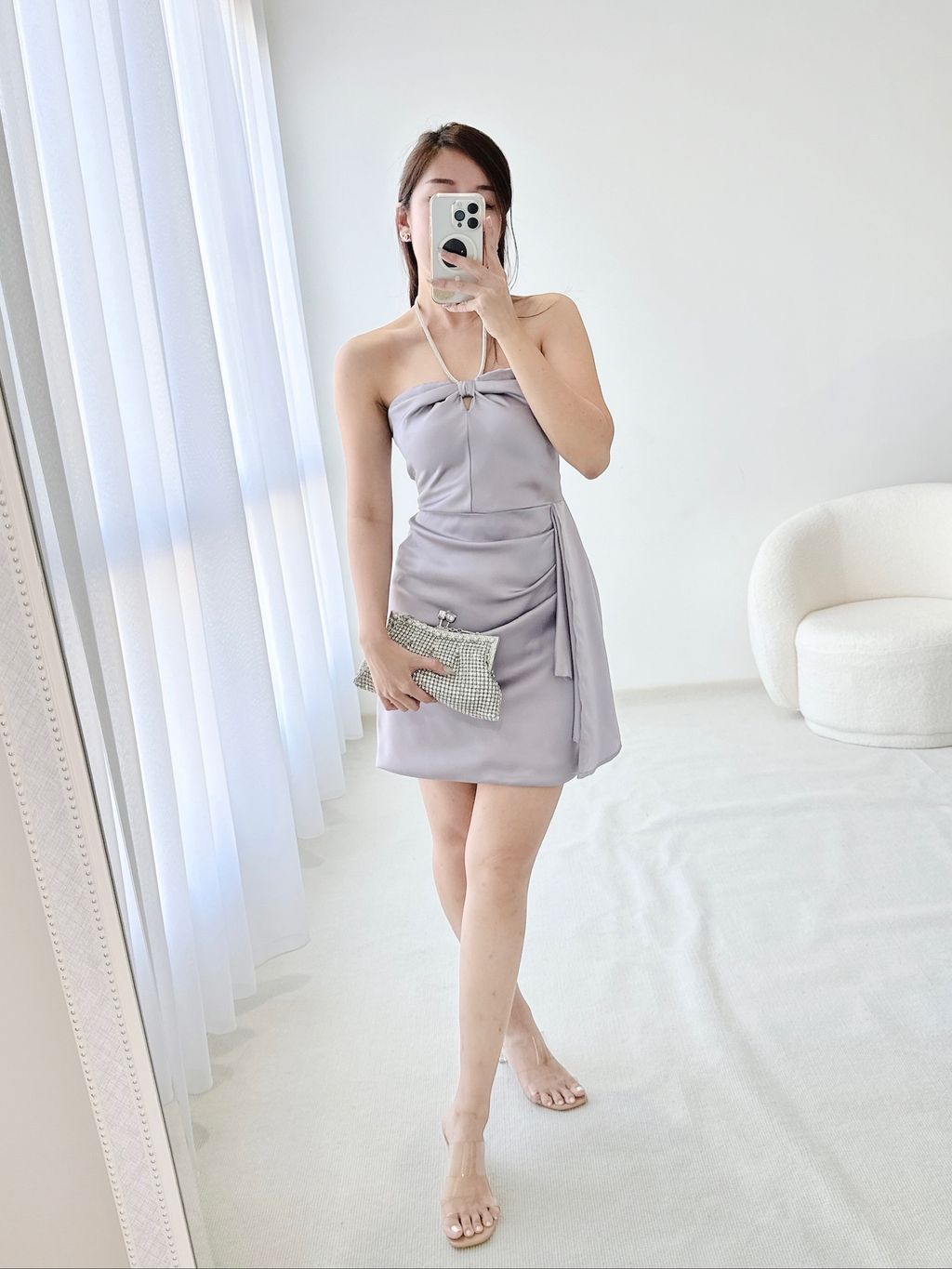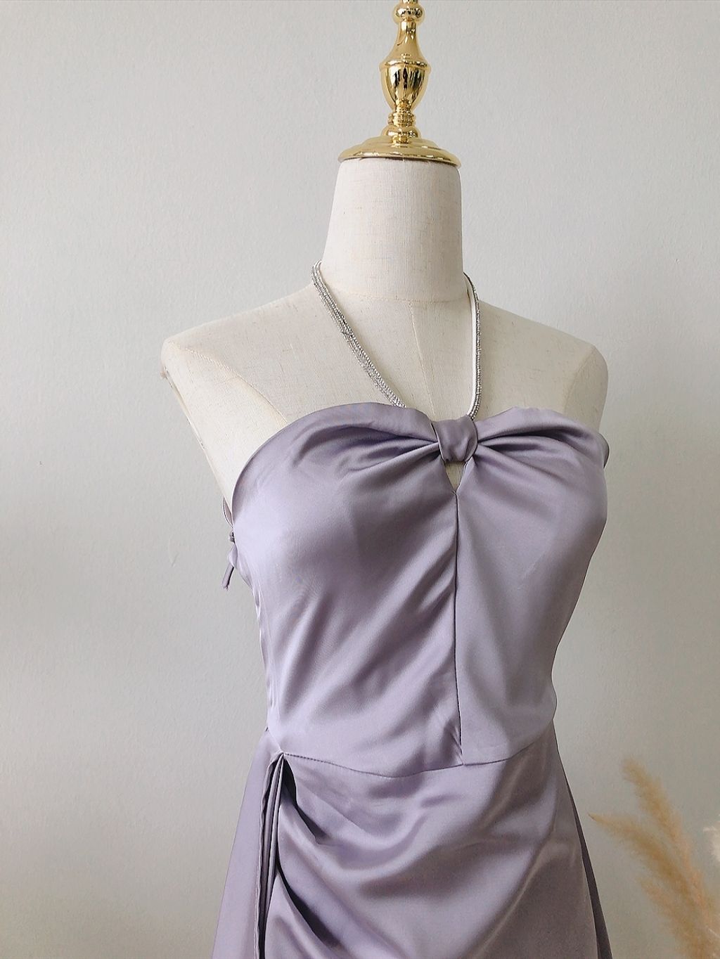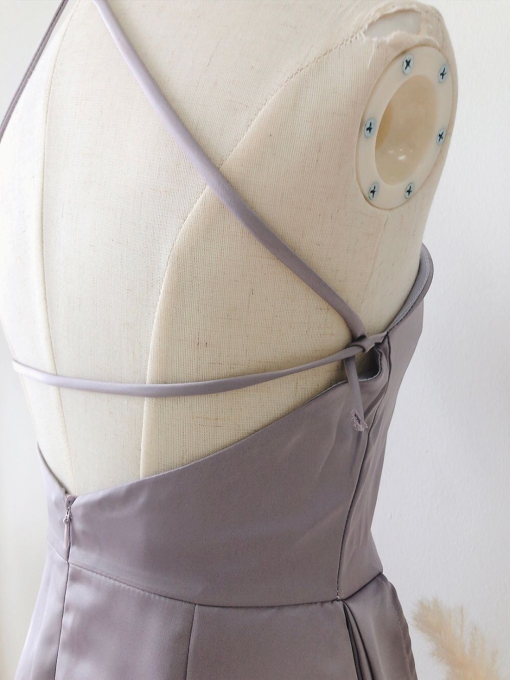 Giselle Halter Silky Satin Dress (Purplish Grey)