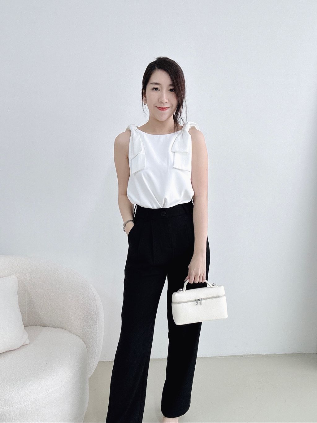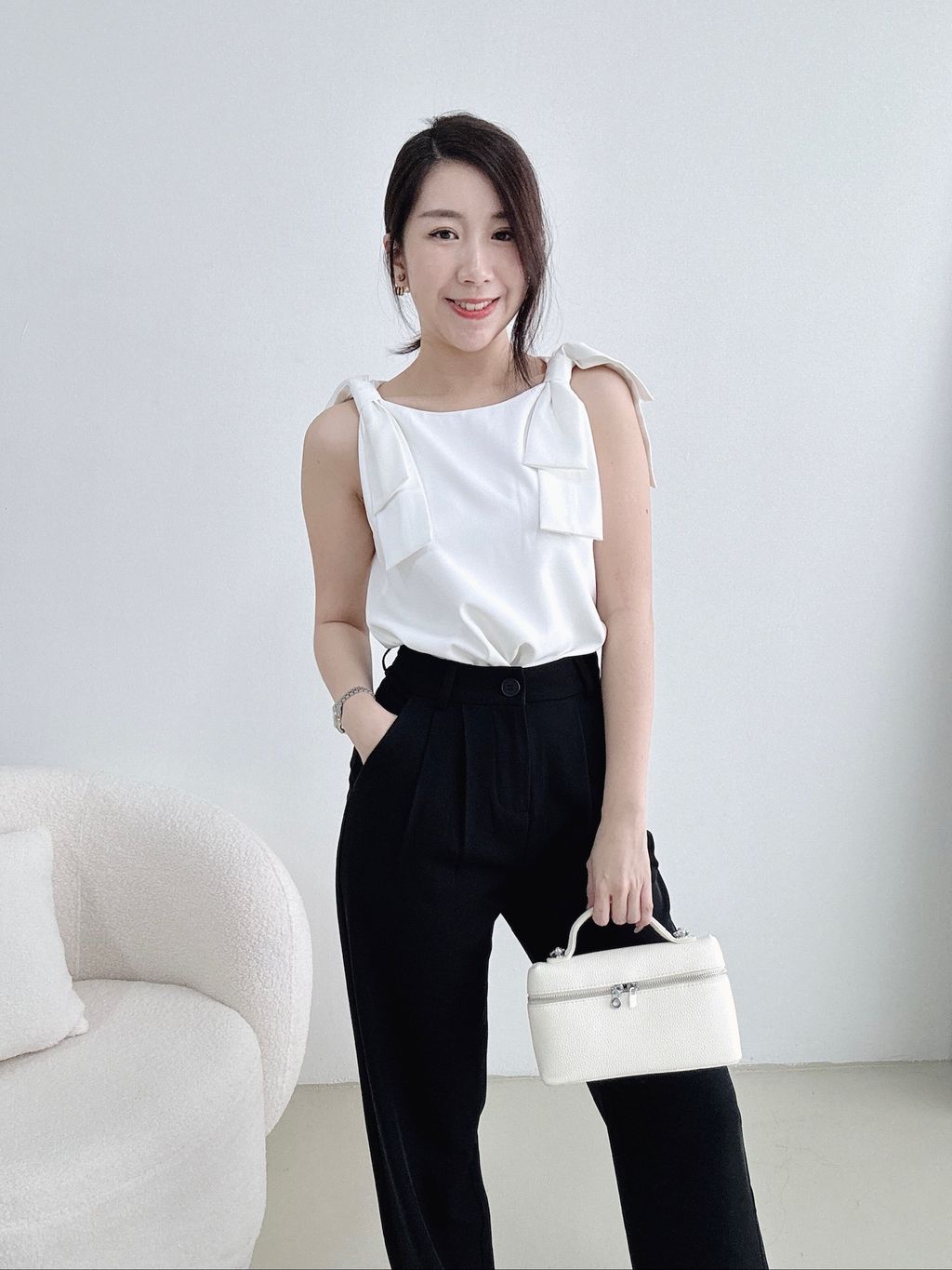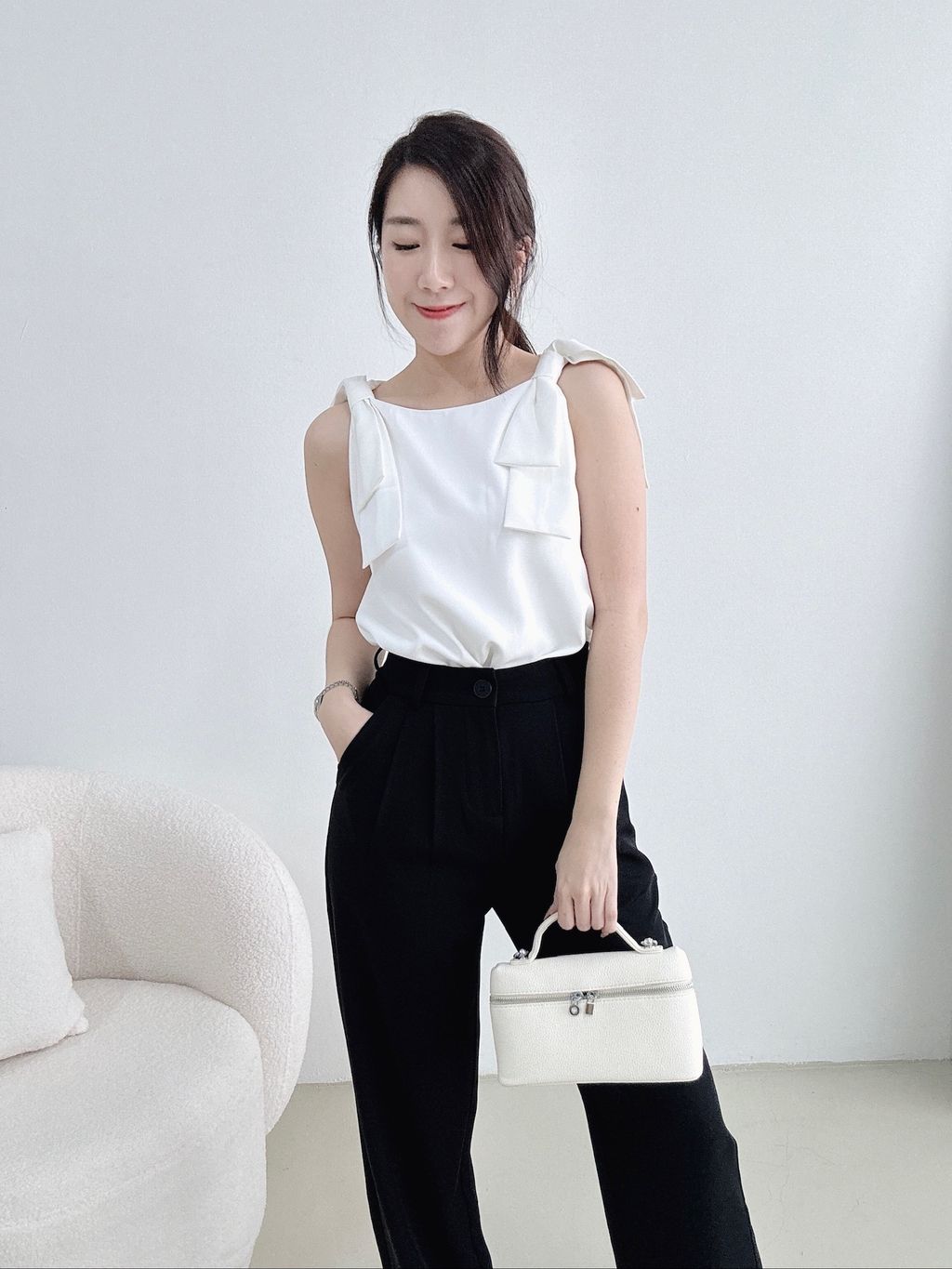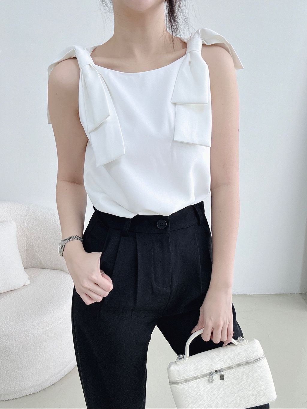 Christy Ribbon Suit Top (White)