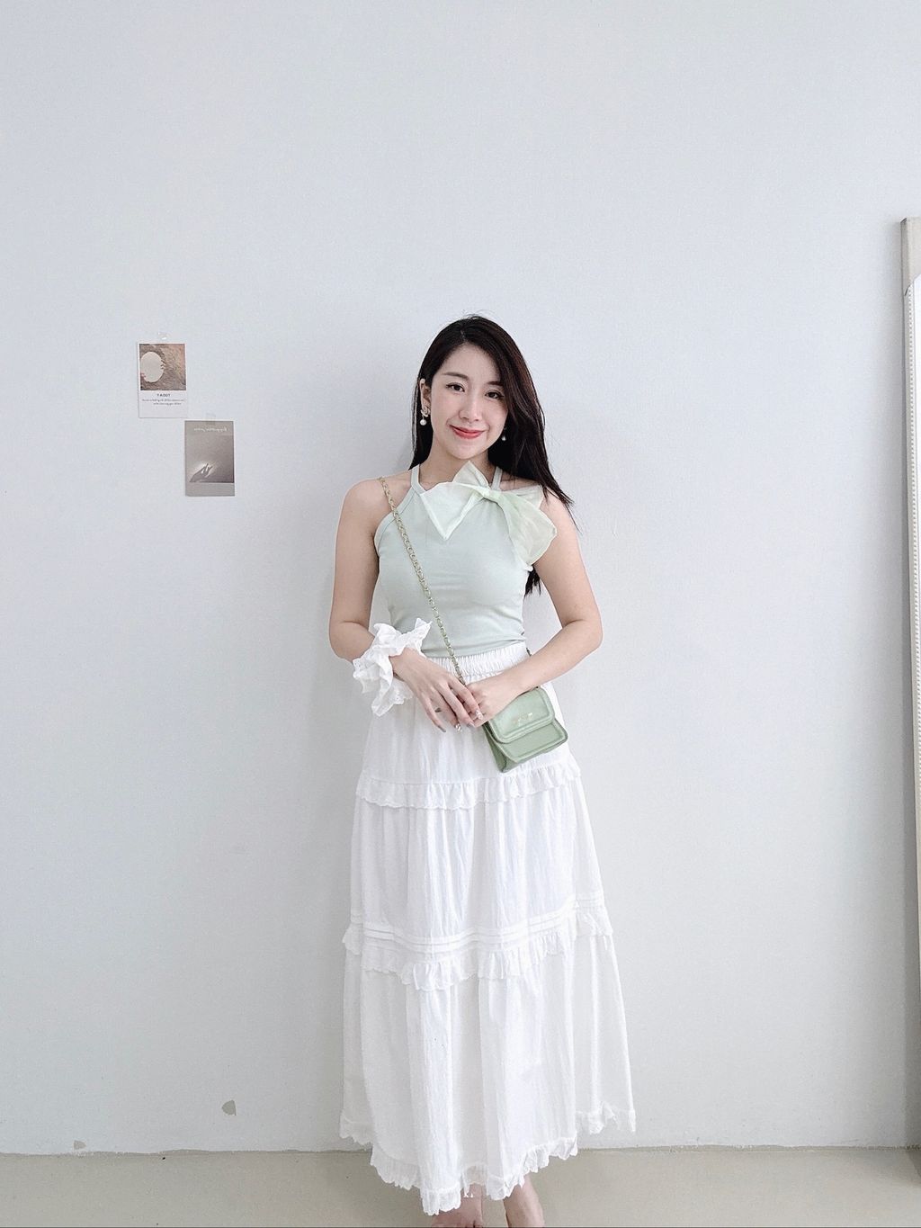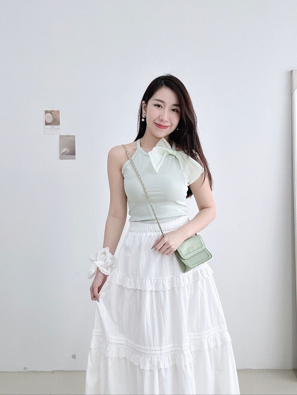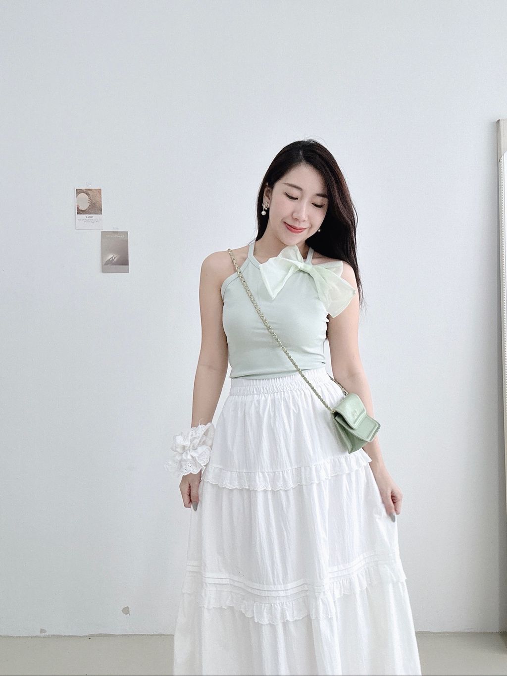 Features: Premium pure cotton material , stretchy materials , mesh ribbon halter tank top design , easy to match with any bottom .