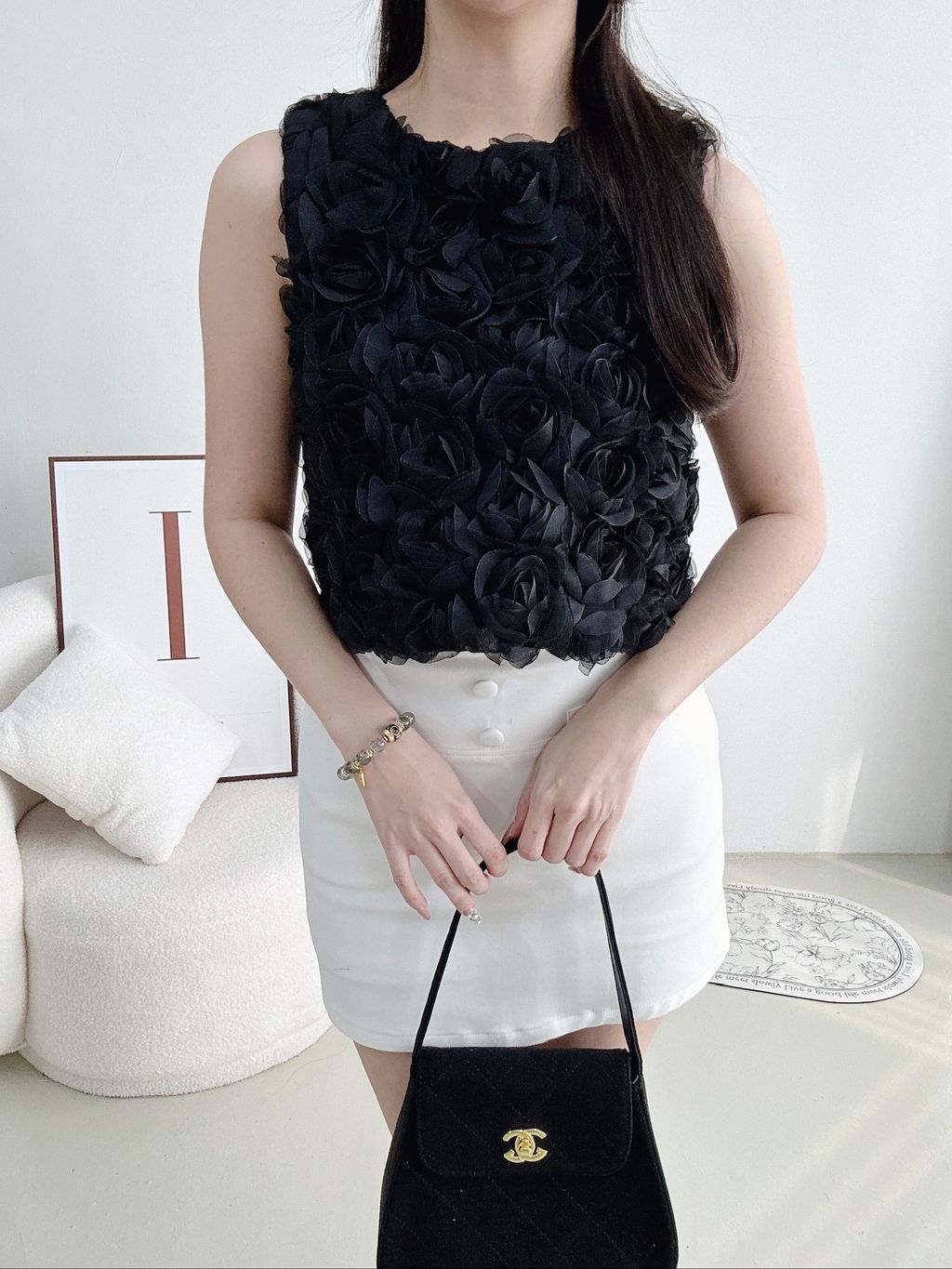 Features:  Premium chiffon mesh mixed cotton material , mesh tank top design , standard length , slightly stretchable , funtional neck button , come with inner lining , easy to match with any bottom .