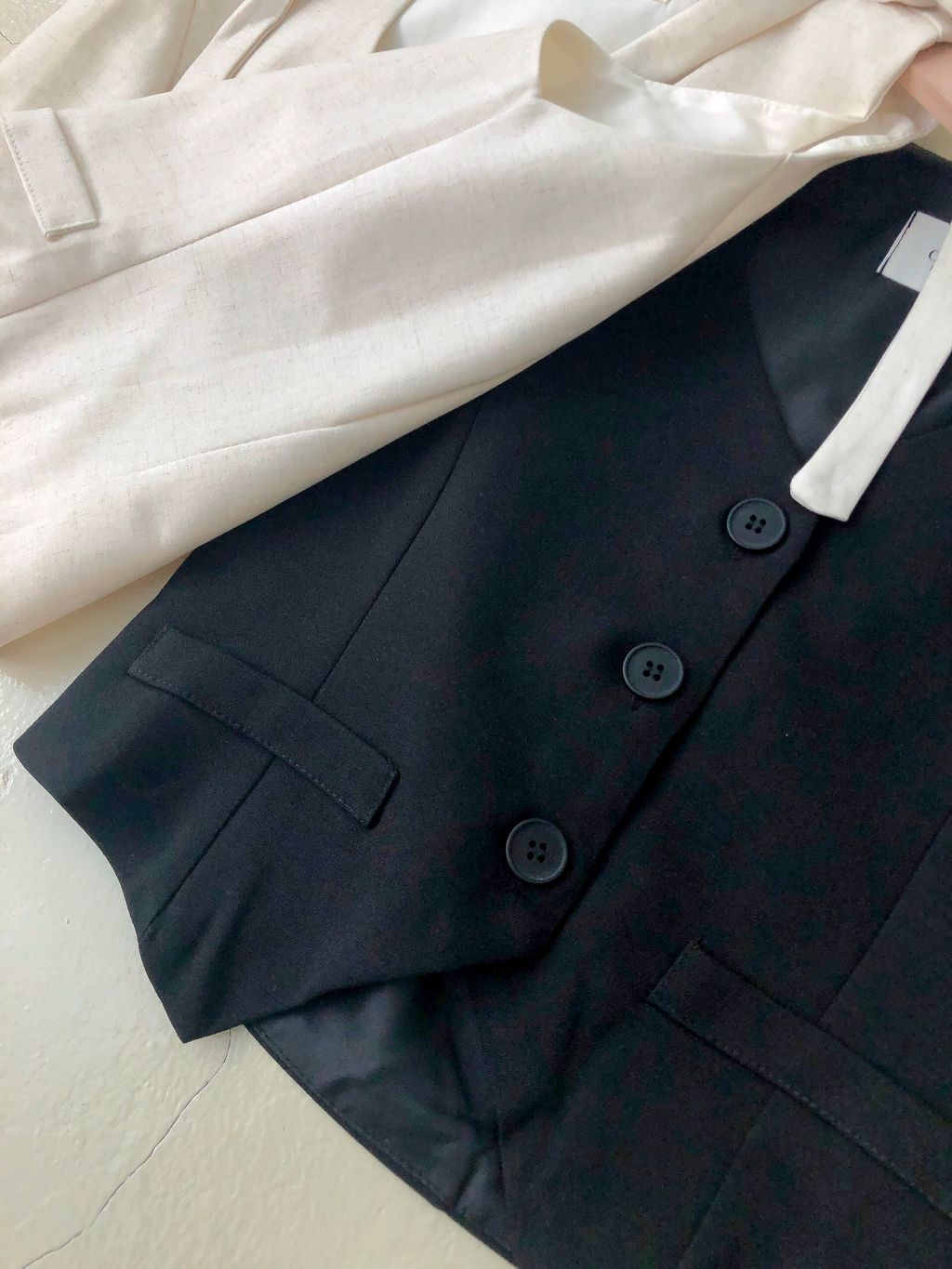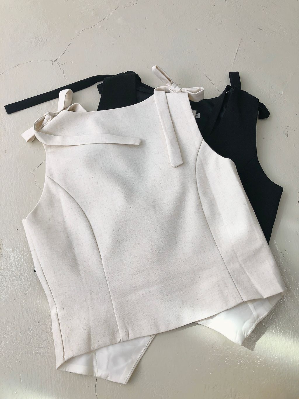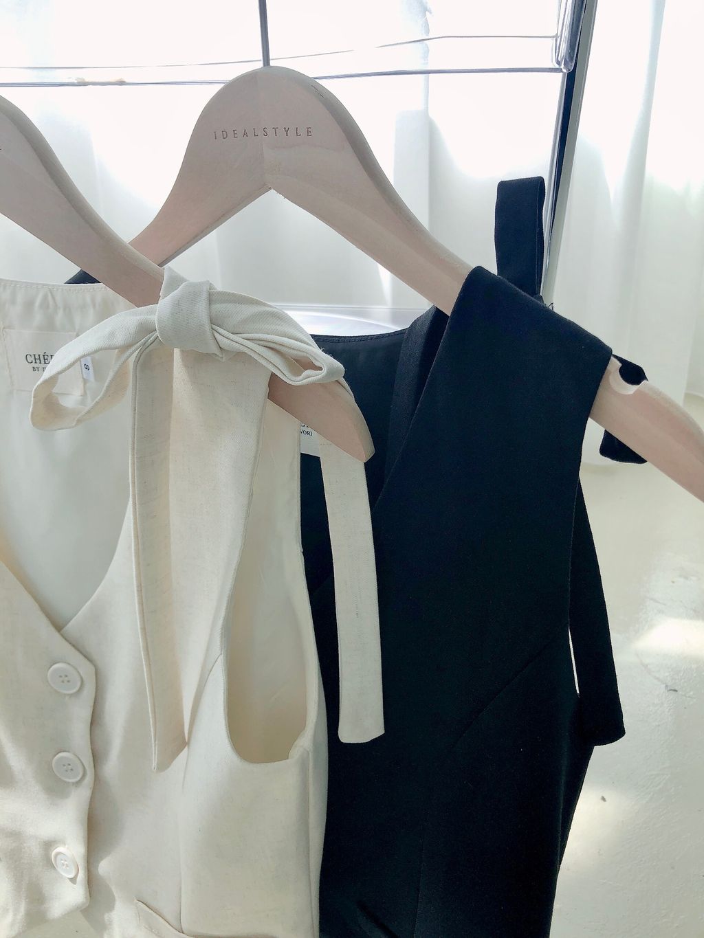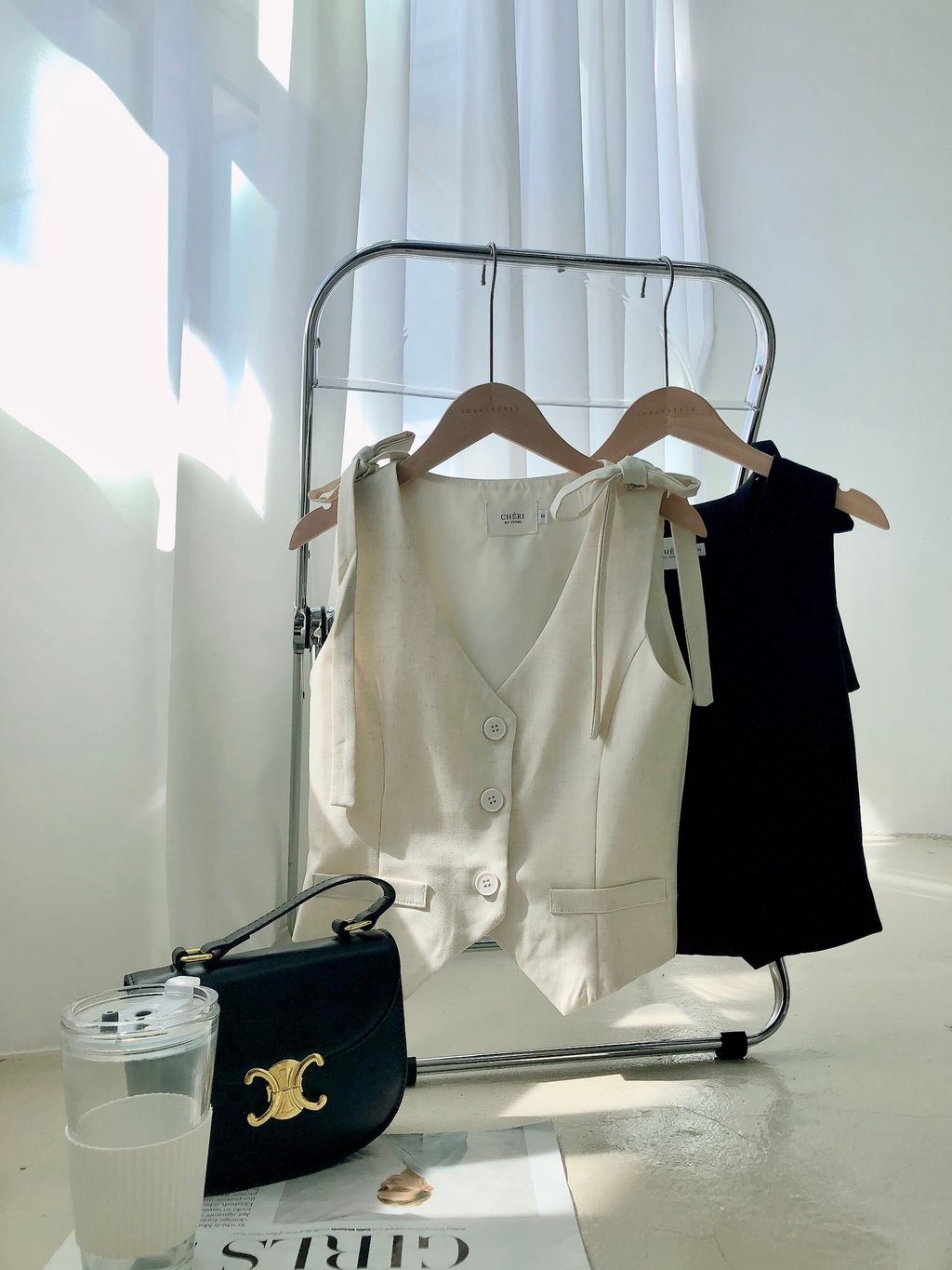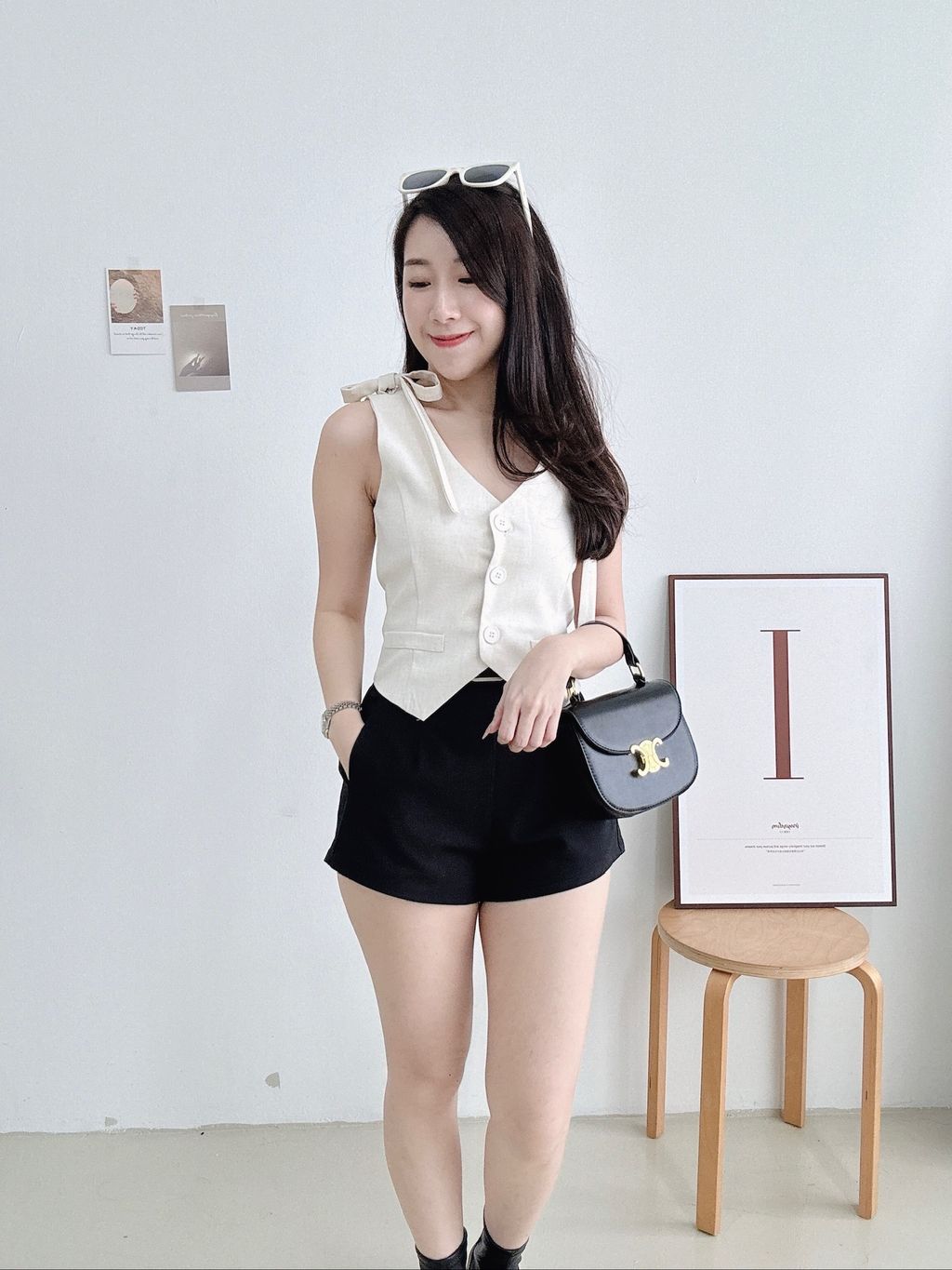 Features: Premium linen cotton materials , comfy texture , suit vest top design , functional buttons , self-tied ribbon , easy to match with other bottoms.