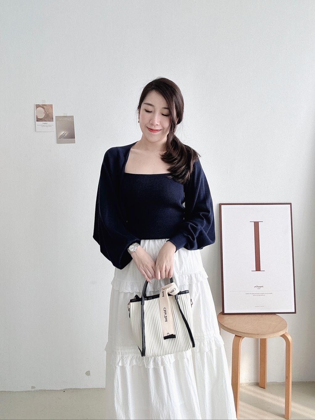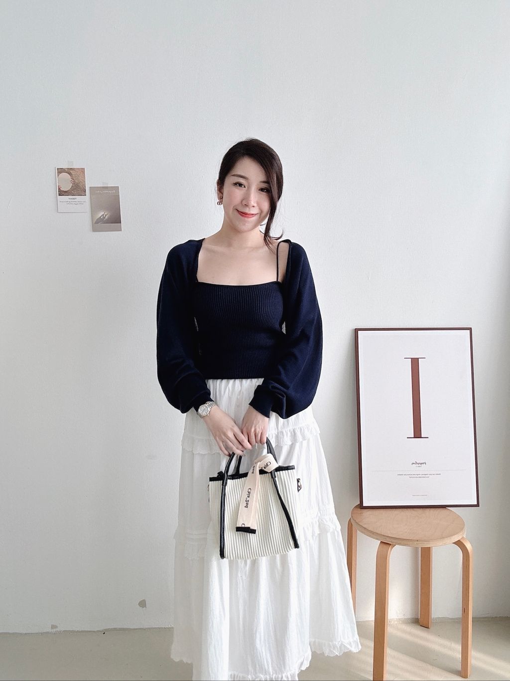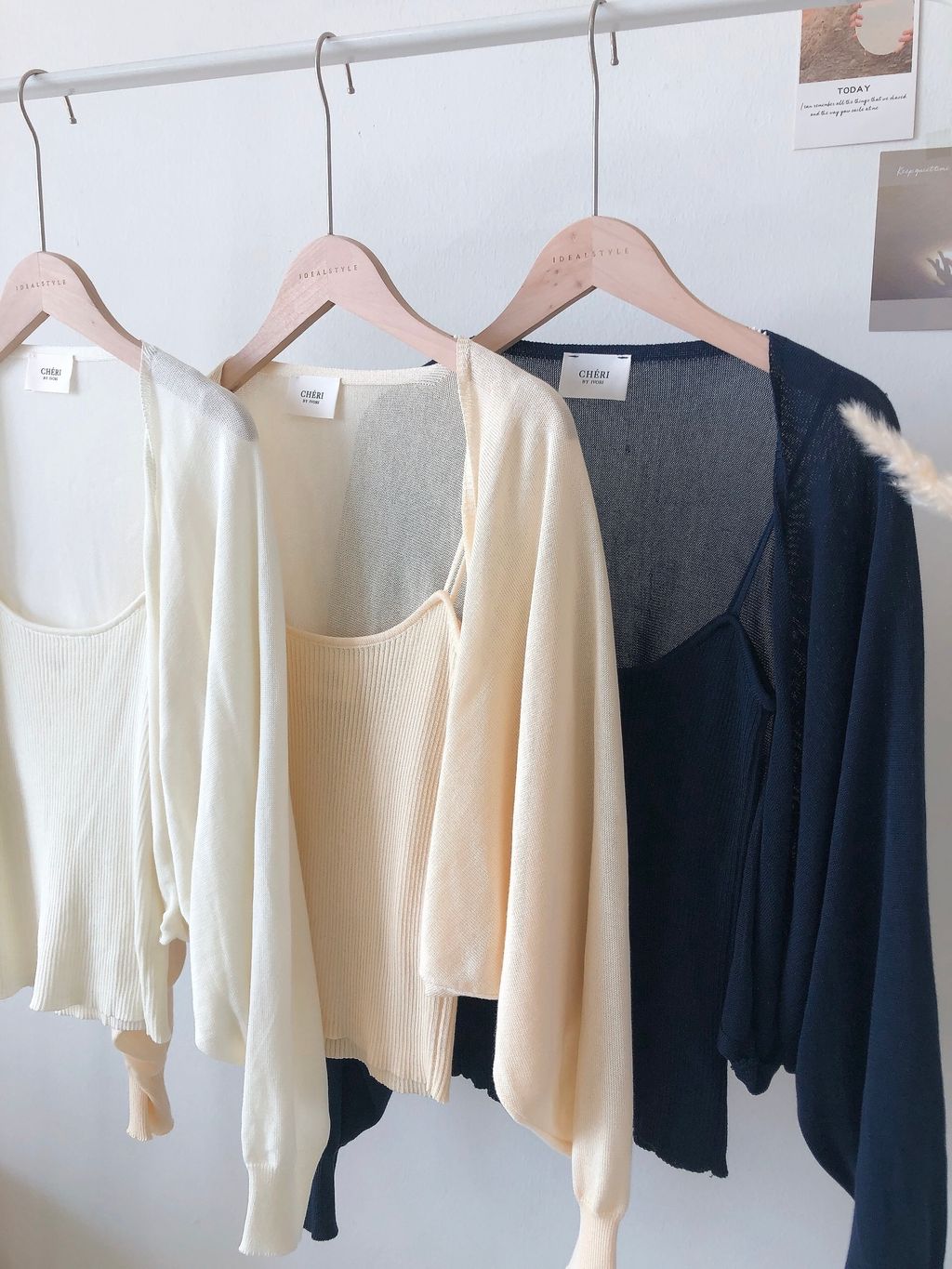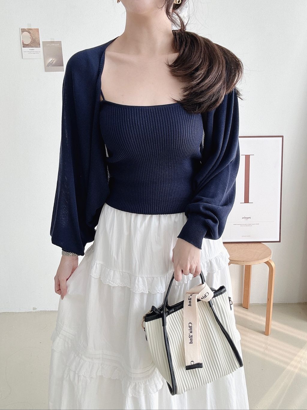 Features: Stretchy rib knit materials , comfy texture , knitted 2pcs top set design , knitted outer crop , spagheti camisole top , come in one set , easy to match with other top or bottoms.