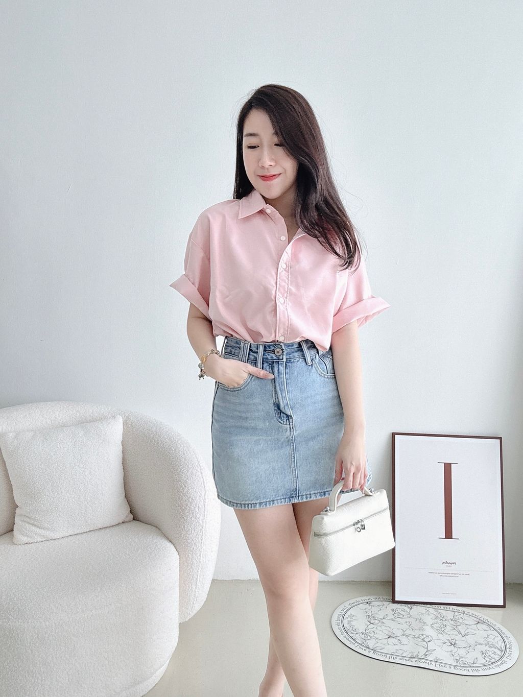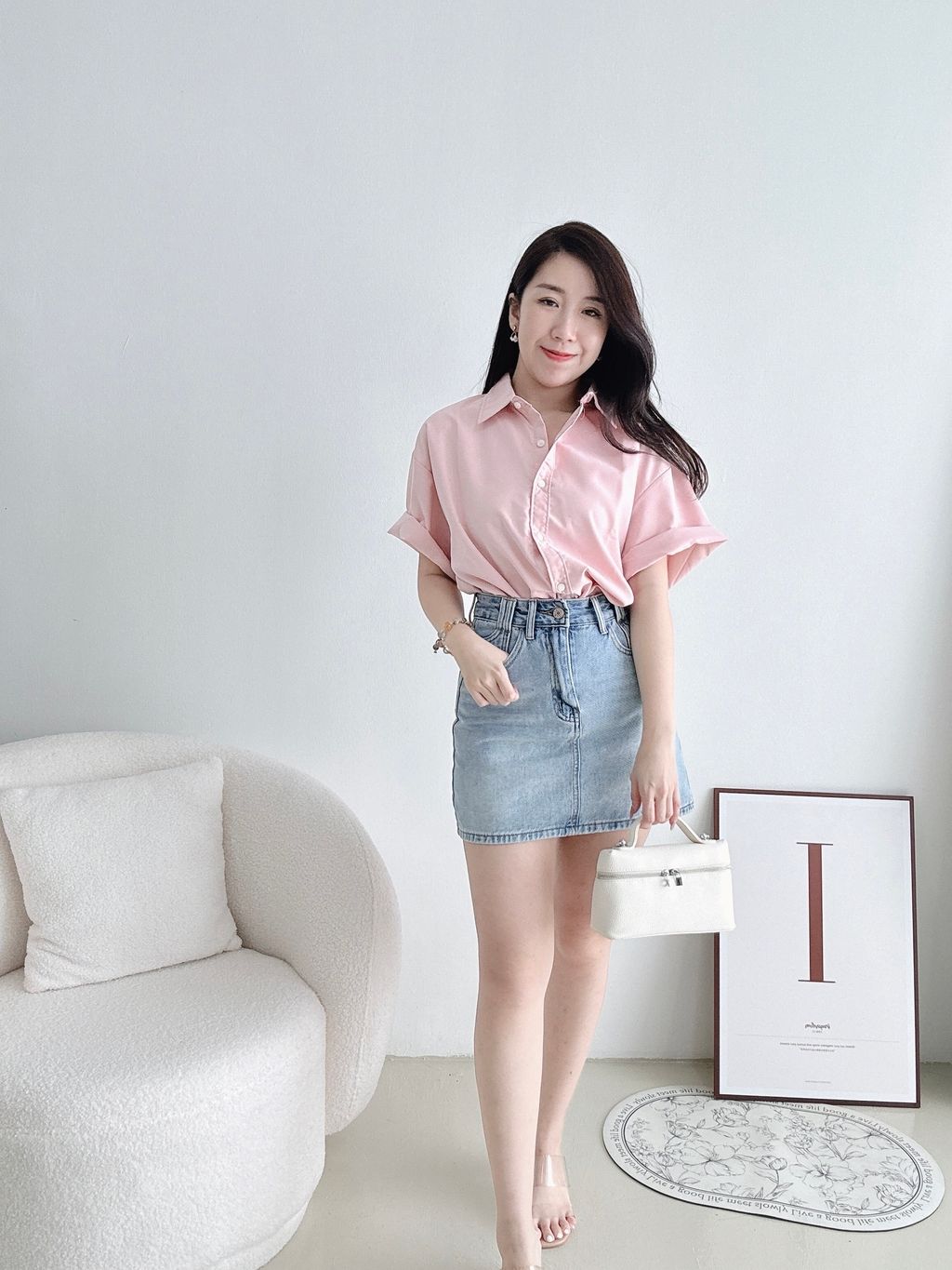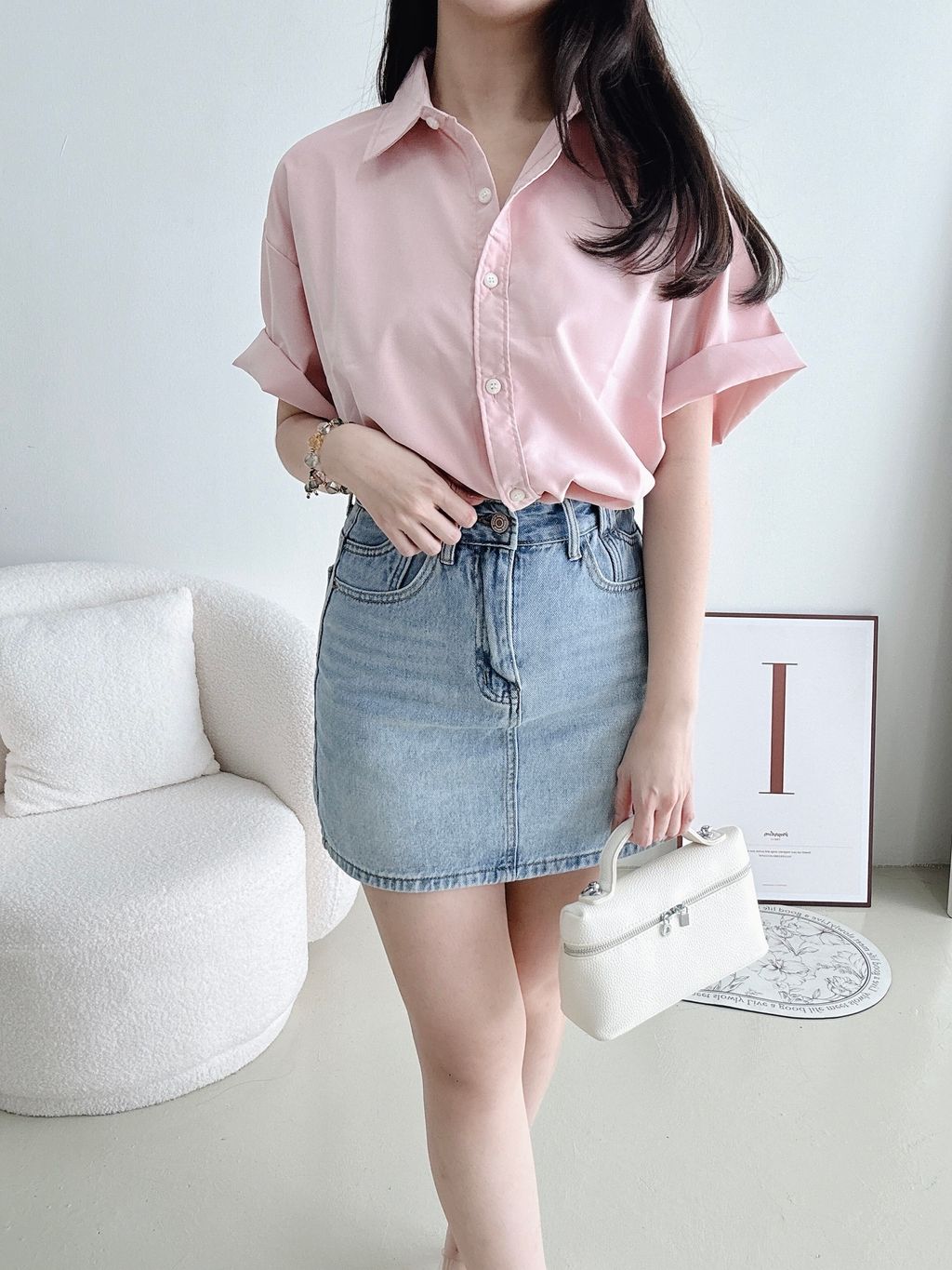 Features: Premium pure cotton material , short sleeves blouse design , comfy texture , functional buttons , easy to match with other bottoms