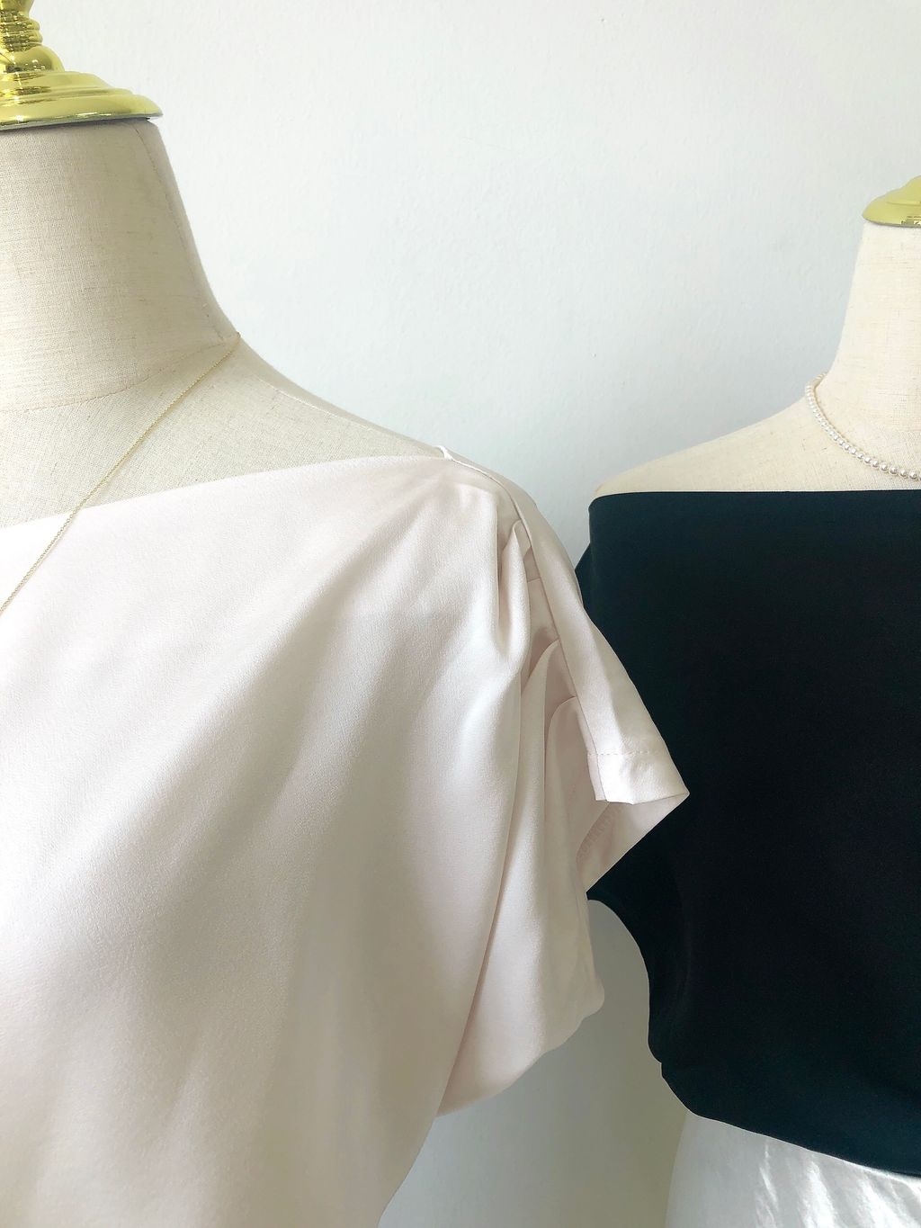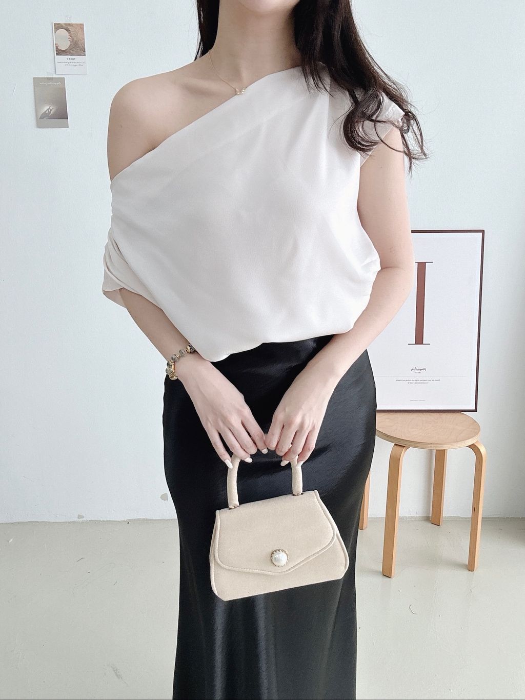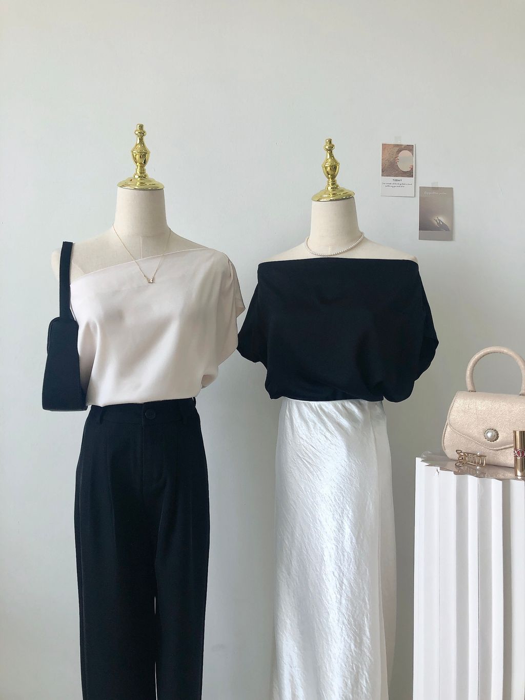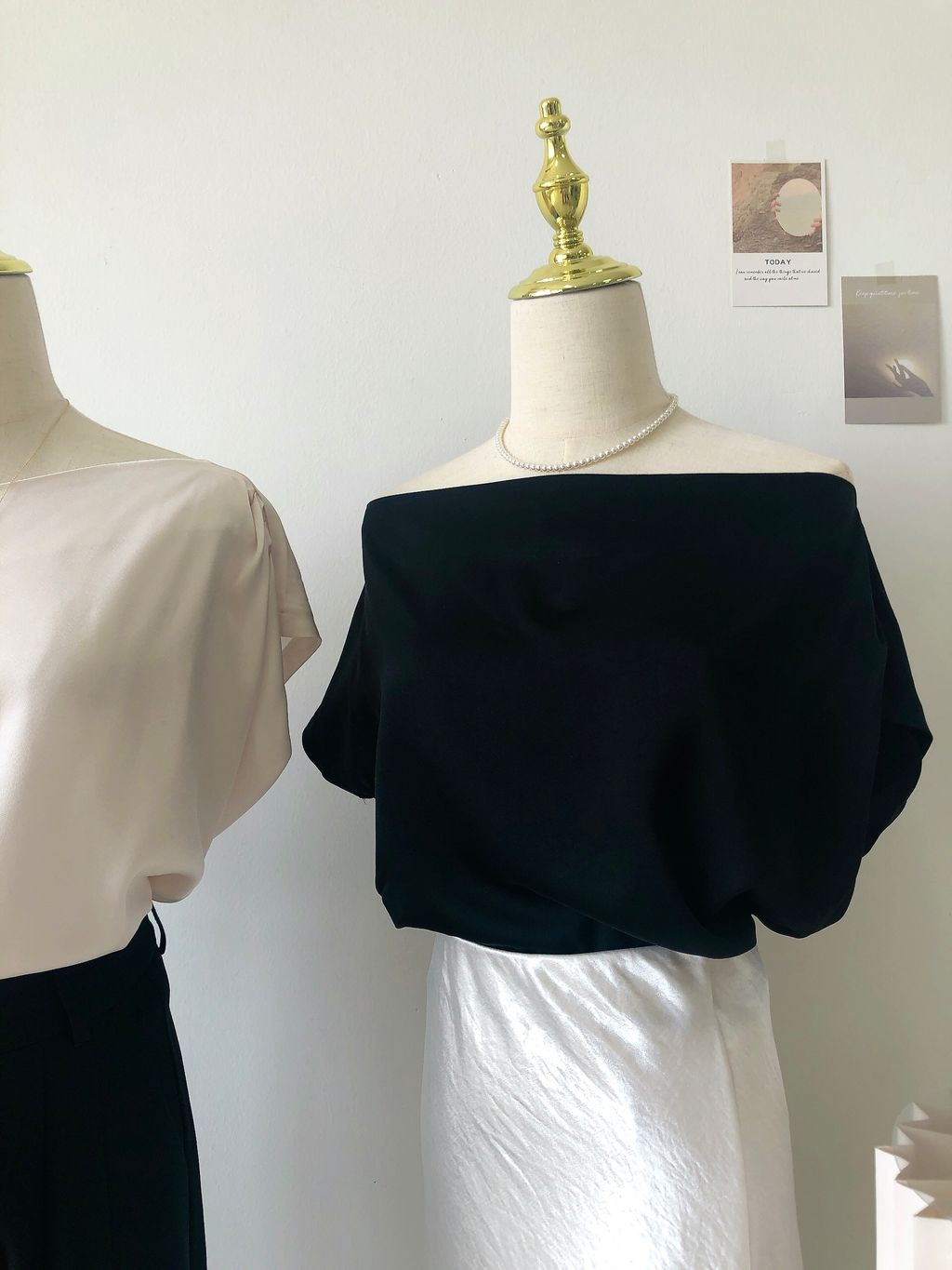 Features: Premium silky satin material , ruched toga slit top design , can wear as a toga top or off shoulder top , comfy texture , easy to match with other bottoms .