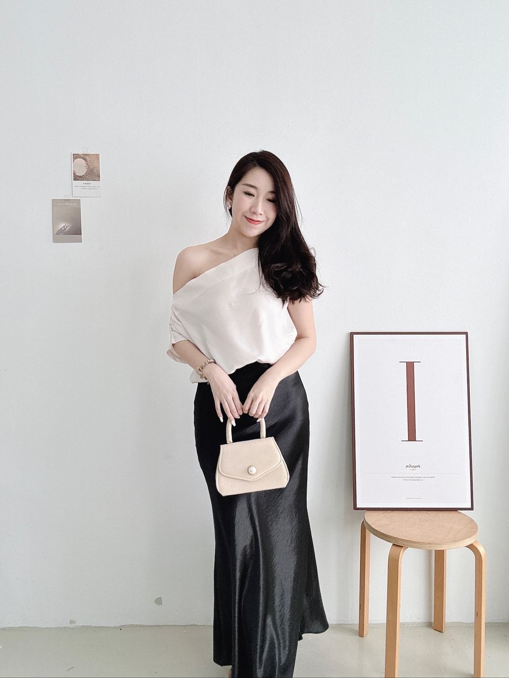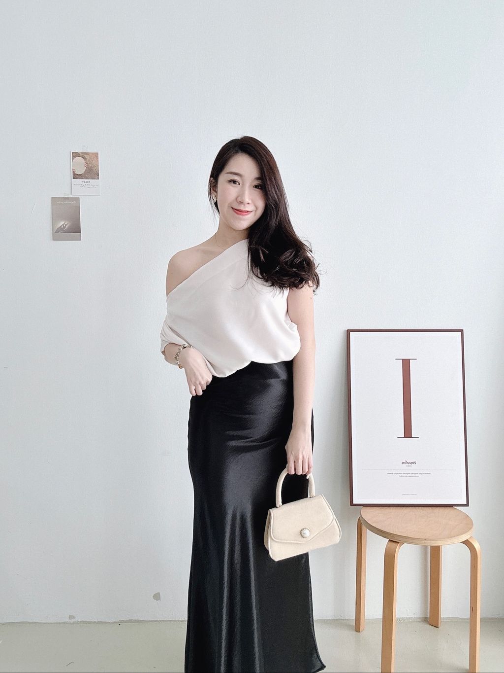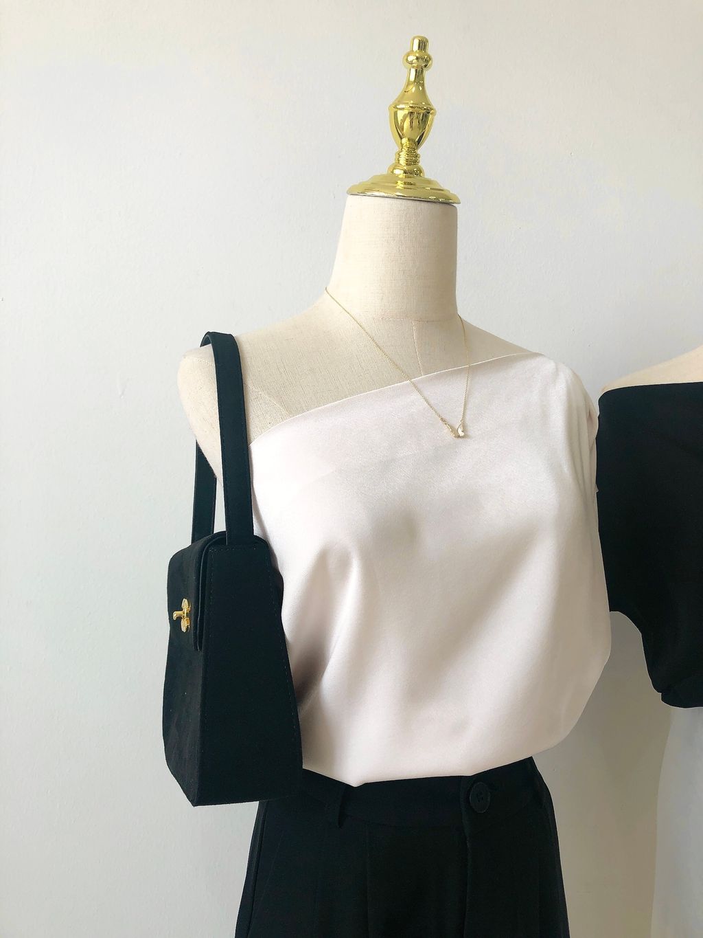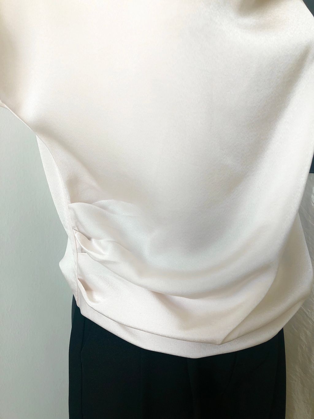 Features: Premium silky satin material , ruched toga slit top design , can wear as a toga top or off shoulder top , comfy texture , easy to match with other bottoms .