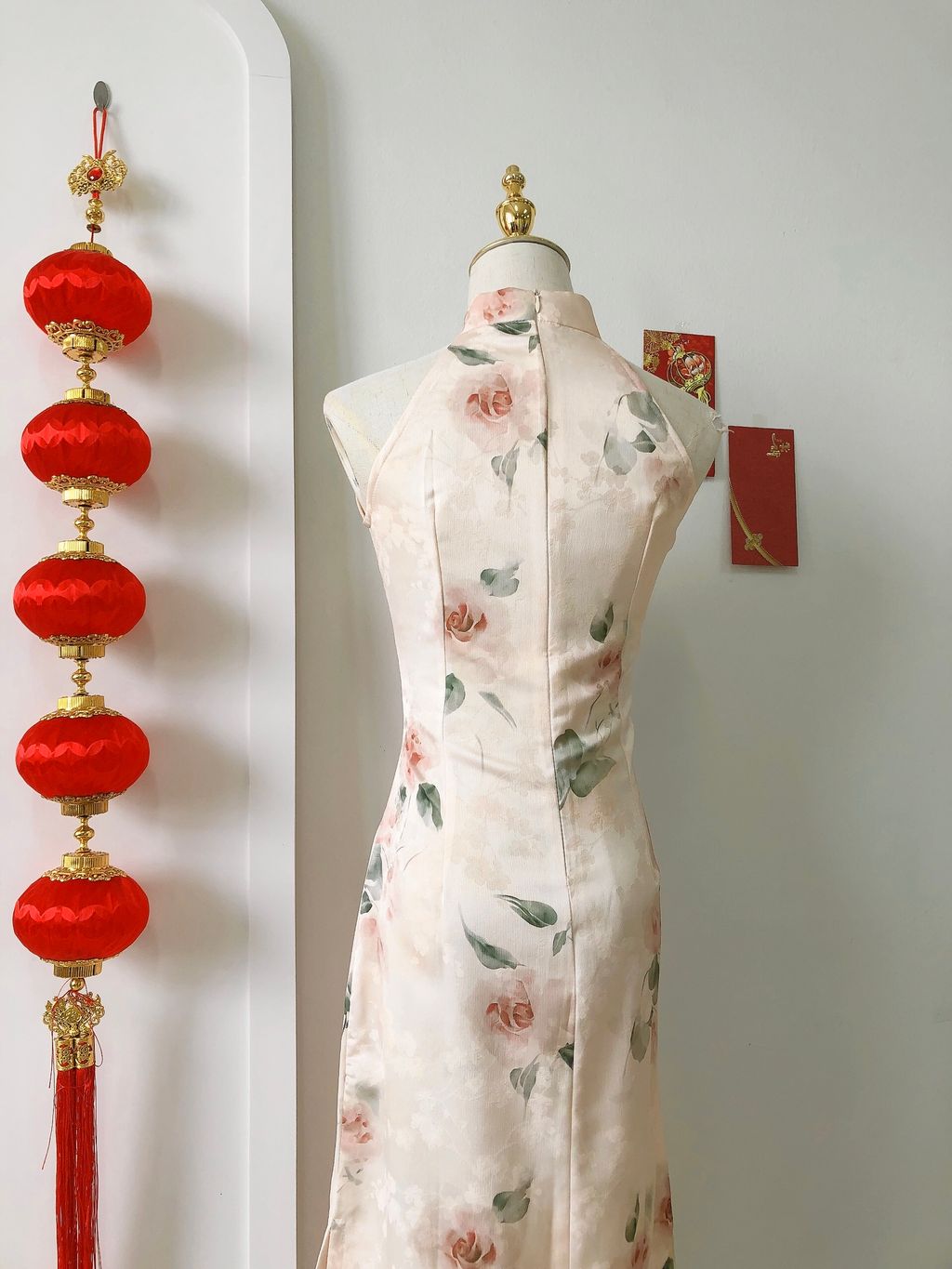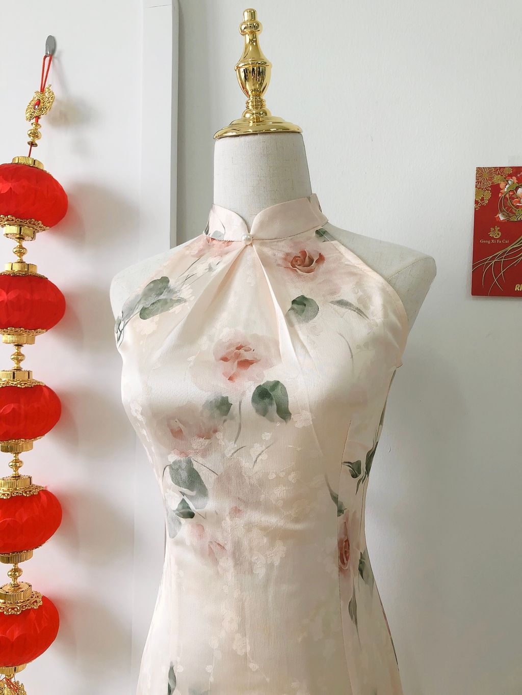 Features: Premium silky satin material , oriental halter cheongsam dress , side slit , back zipper , comfy texture , slim-fit cutting .