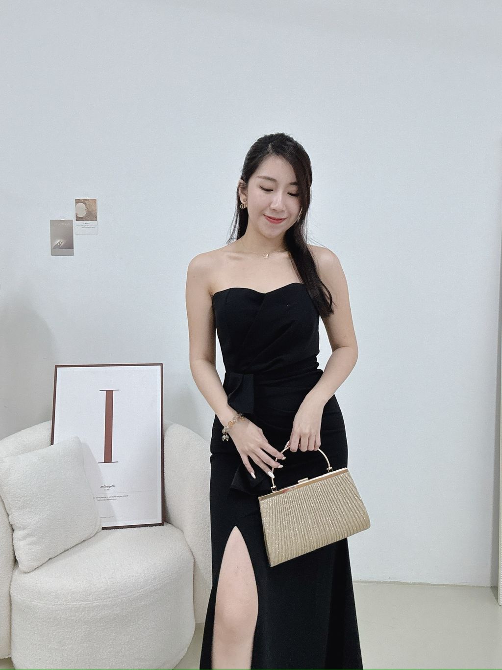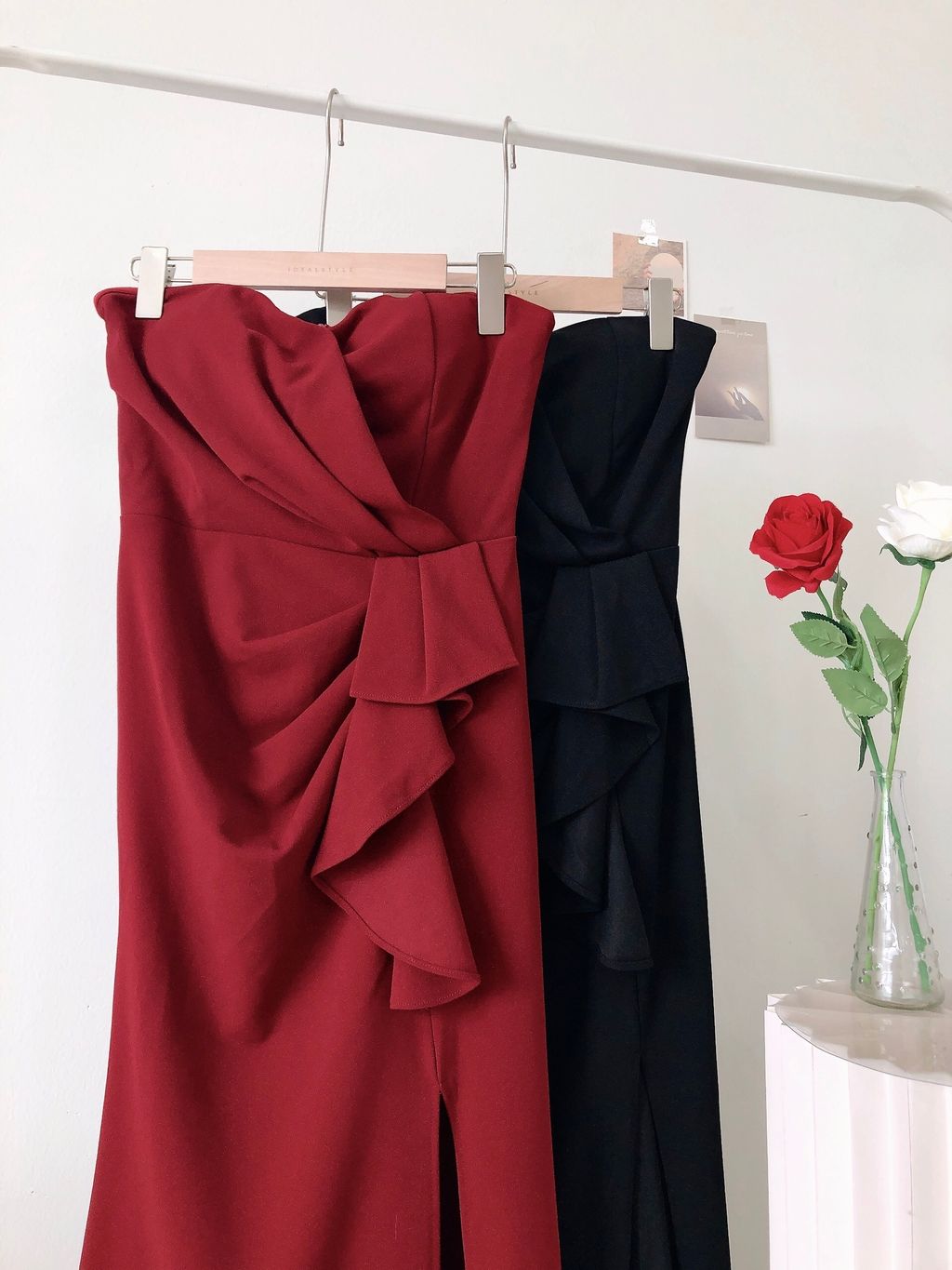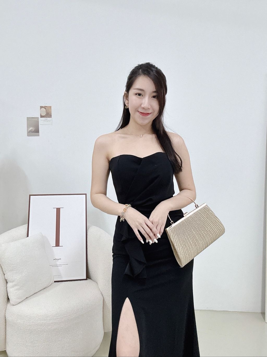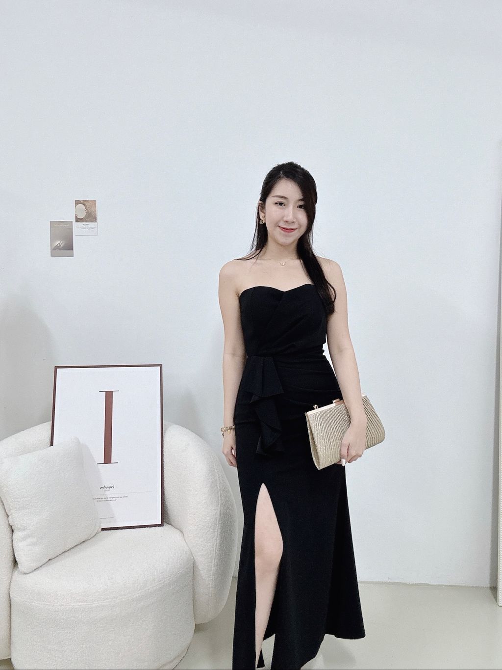 Features: Premium suit cotton material , slightly stretchable , ruched tube slit dinner dress , slim-fit cutting , mermaid dress design , side slit , padded , come with anti-slip , concealed back zipper , maxi length .