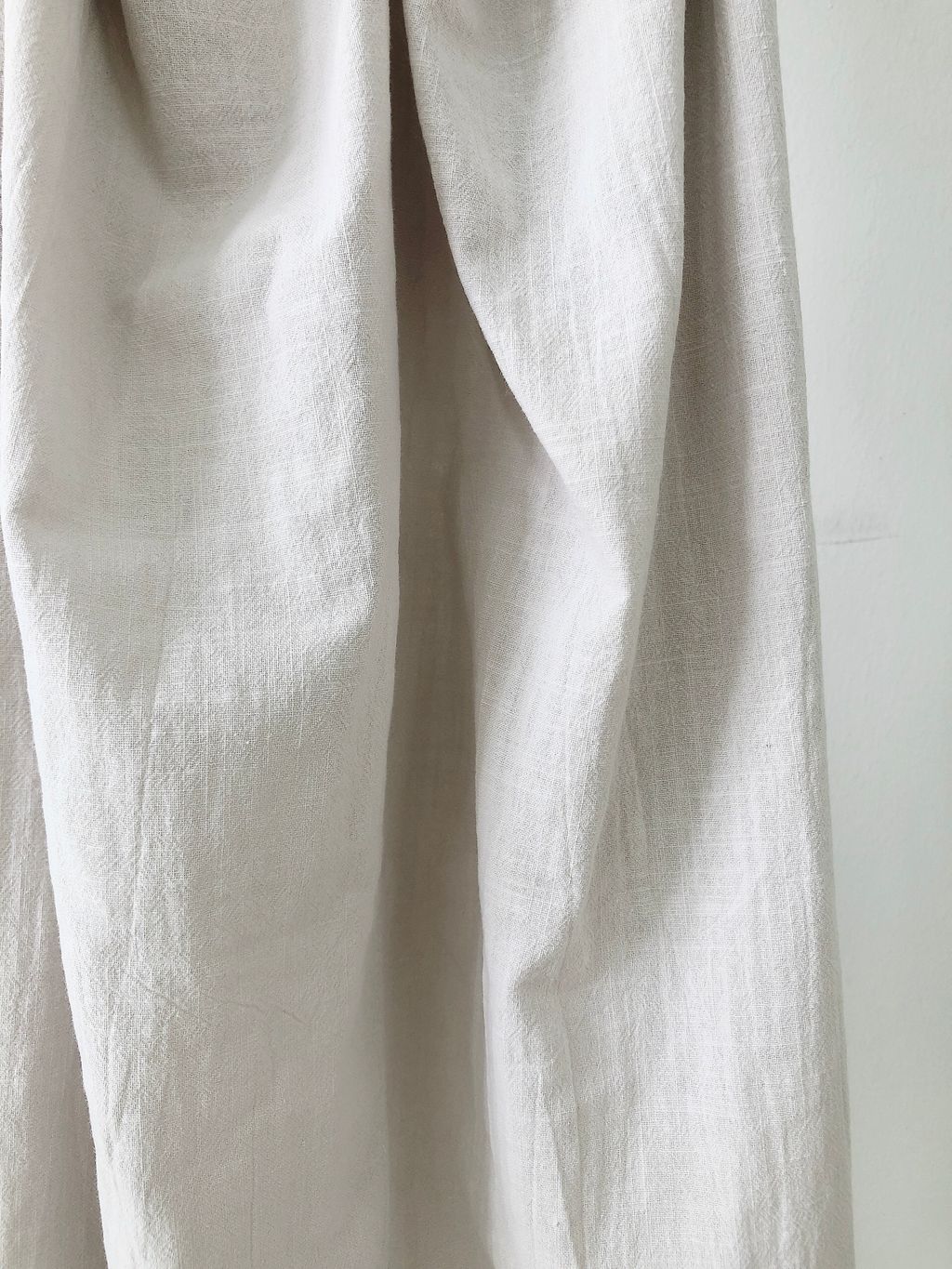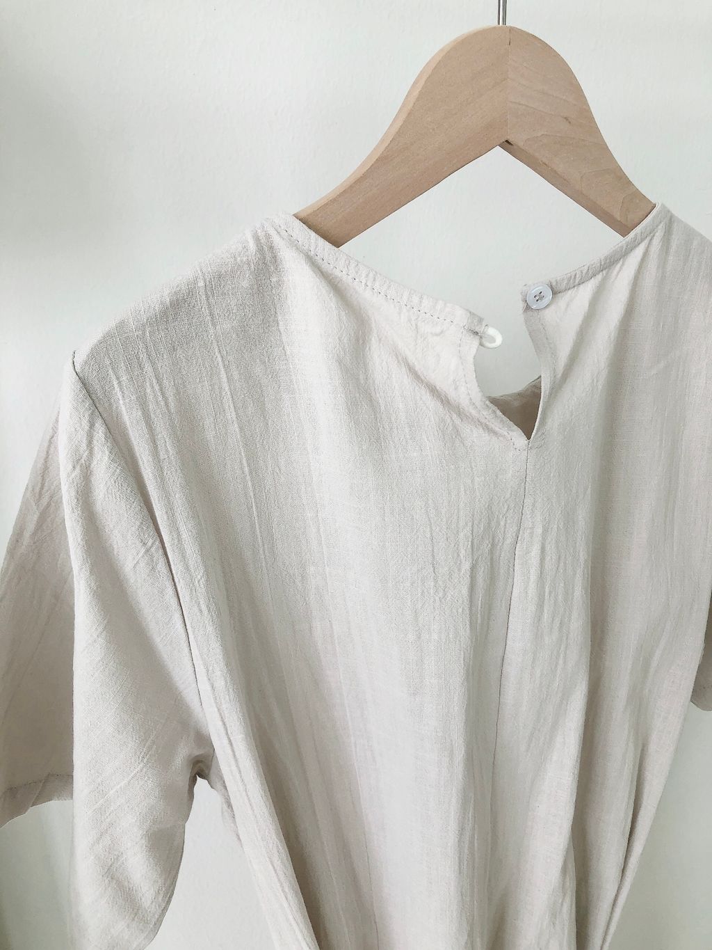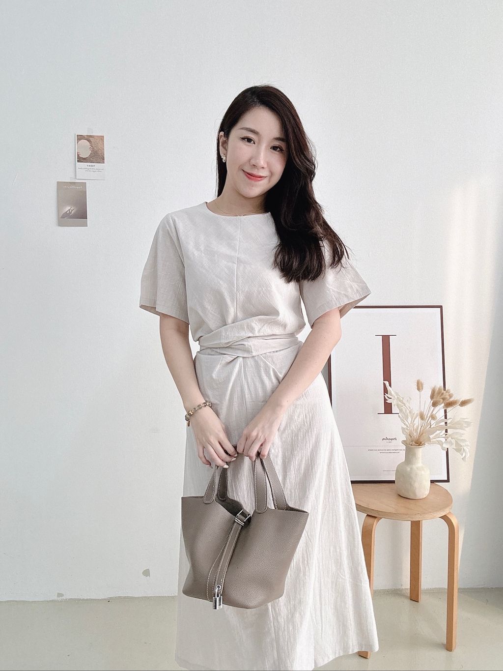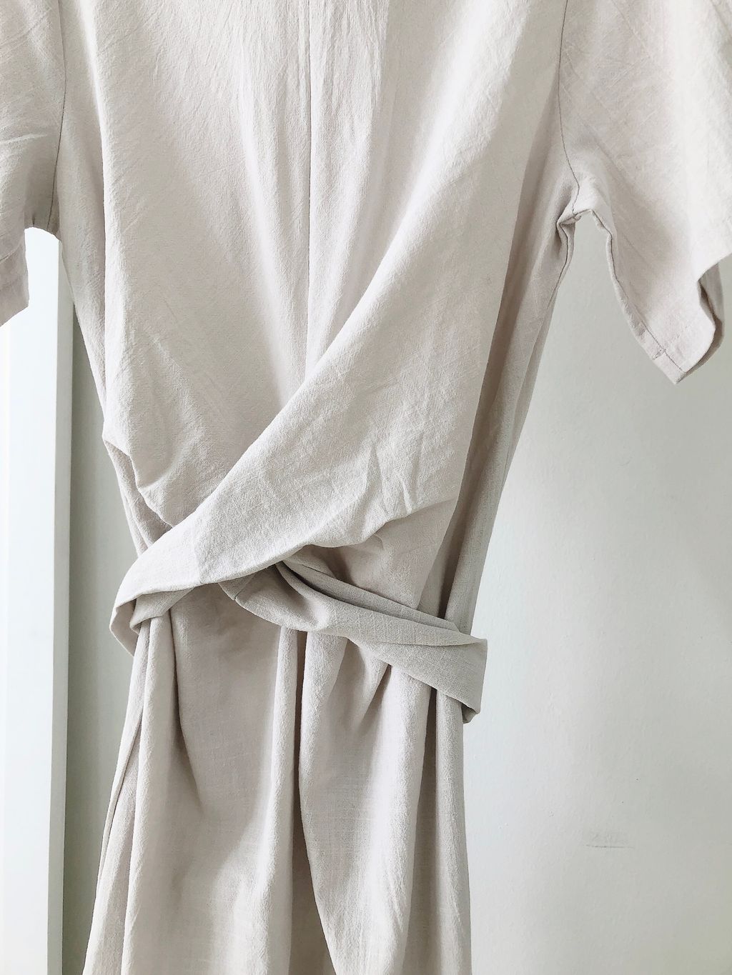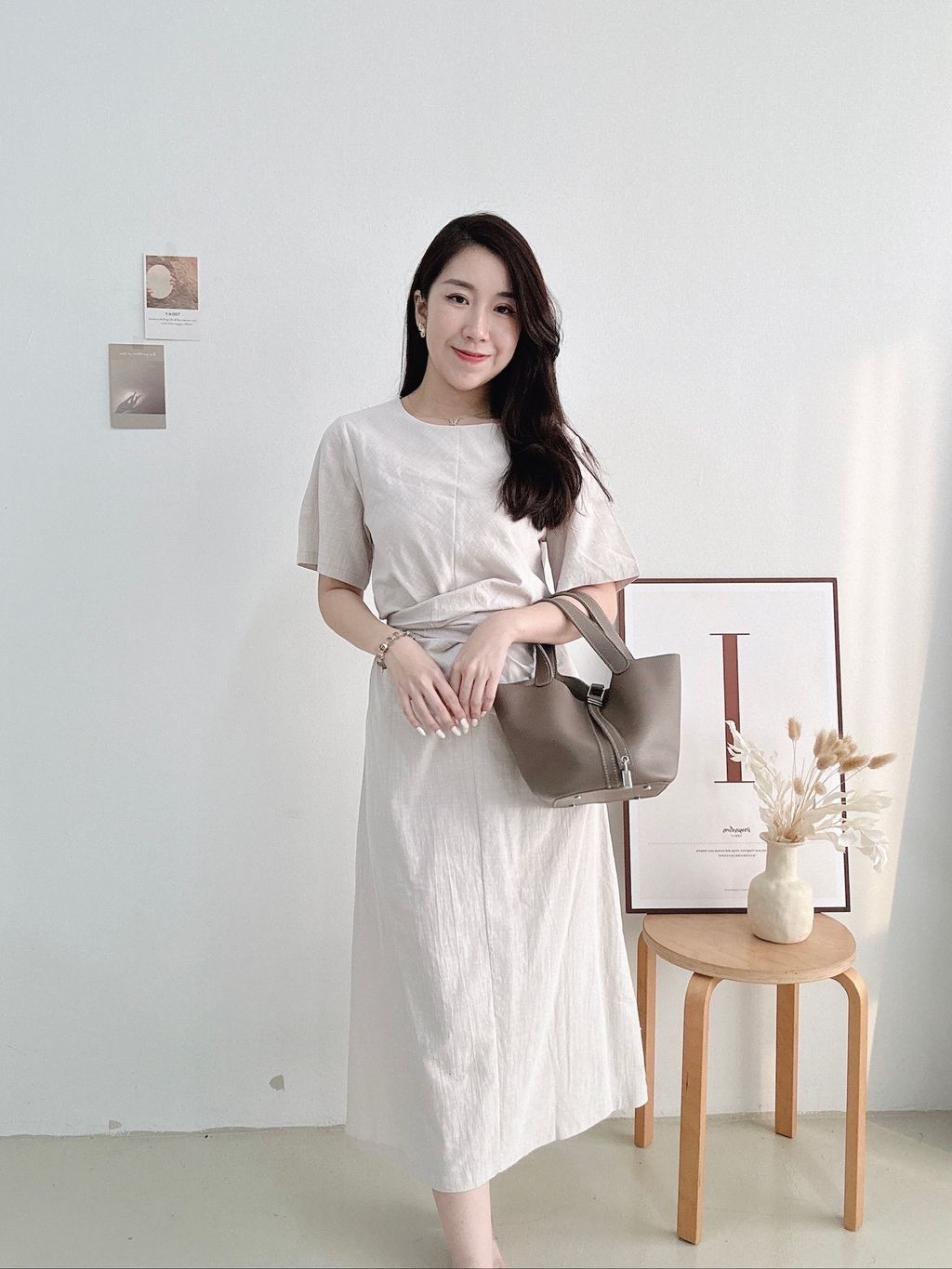 Features: Premium linen cotton material , comfy texture , cross twist short sleeves dress , round necked , functional neck button , self-tied ribbon .