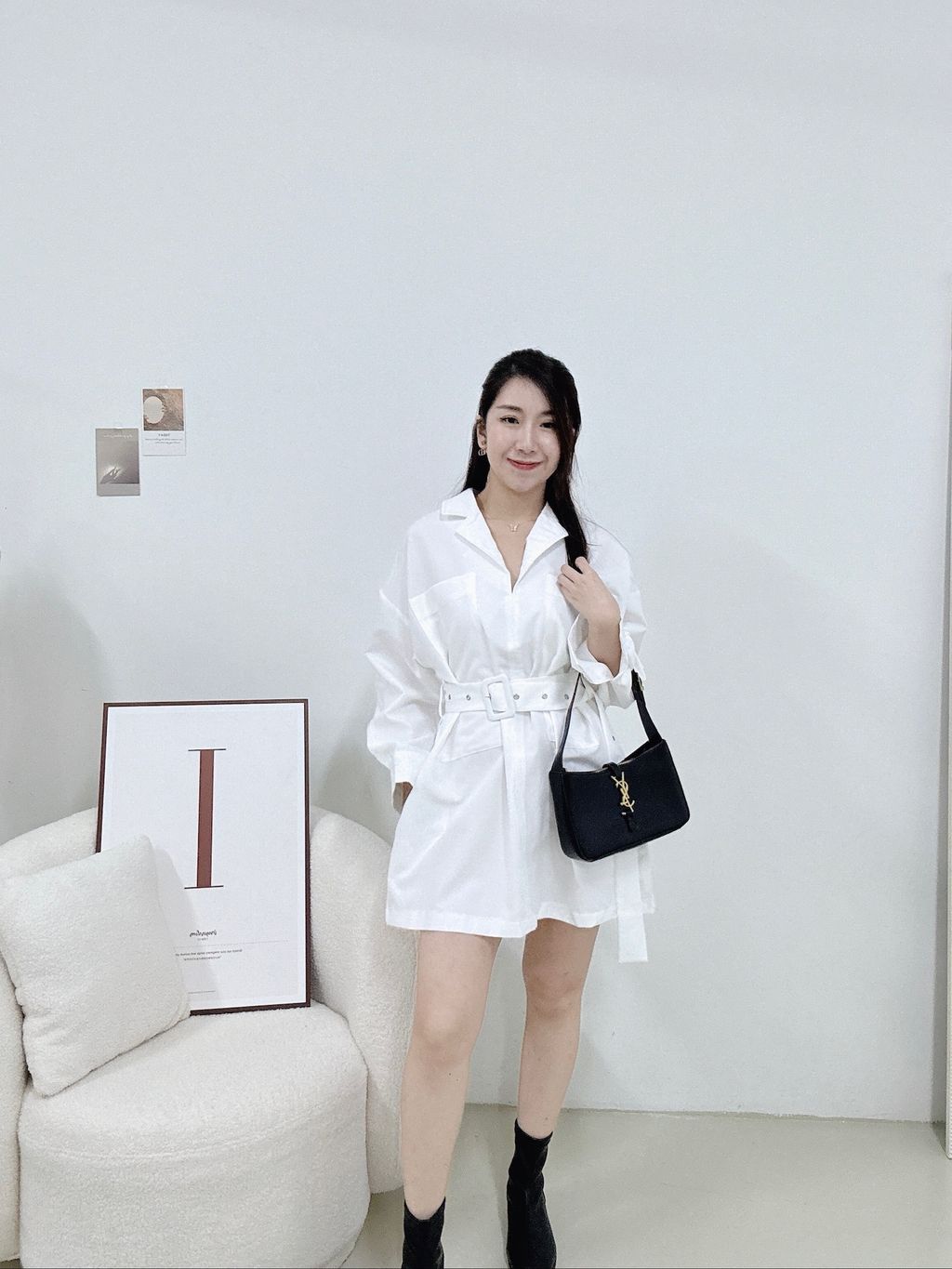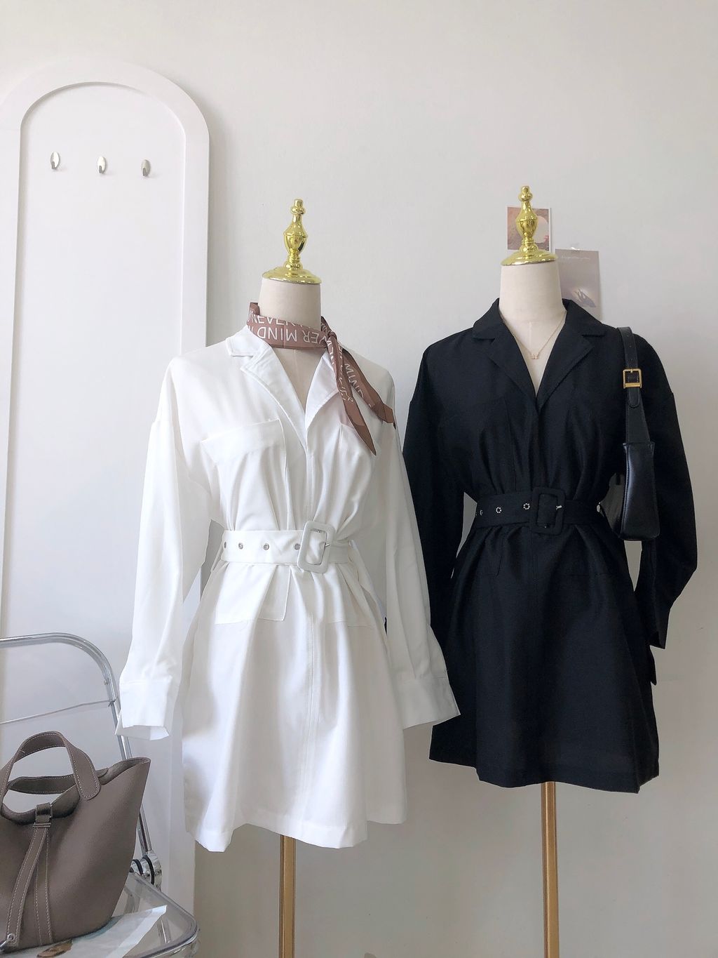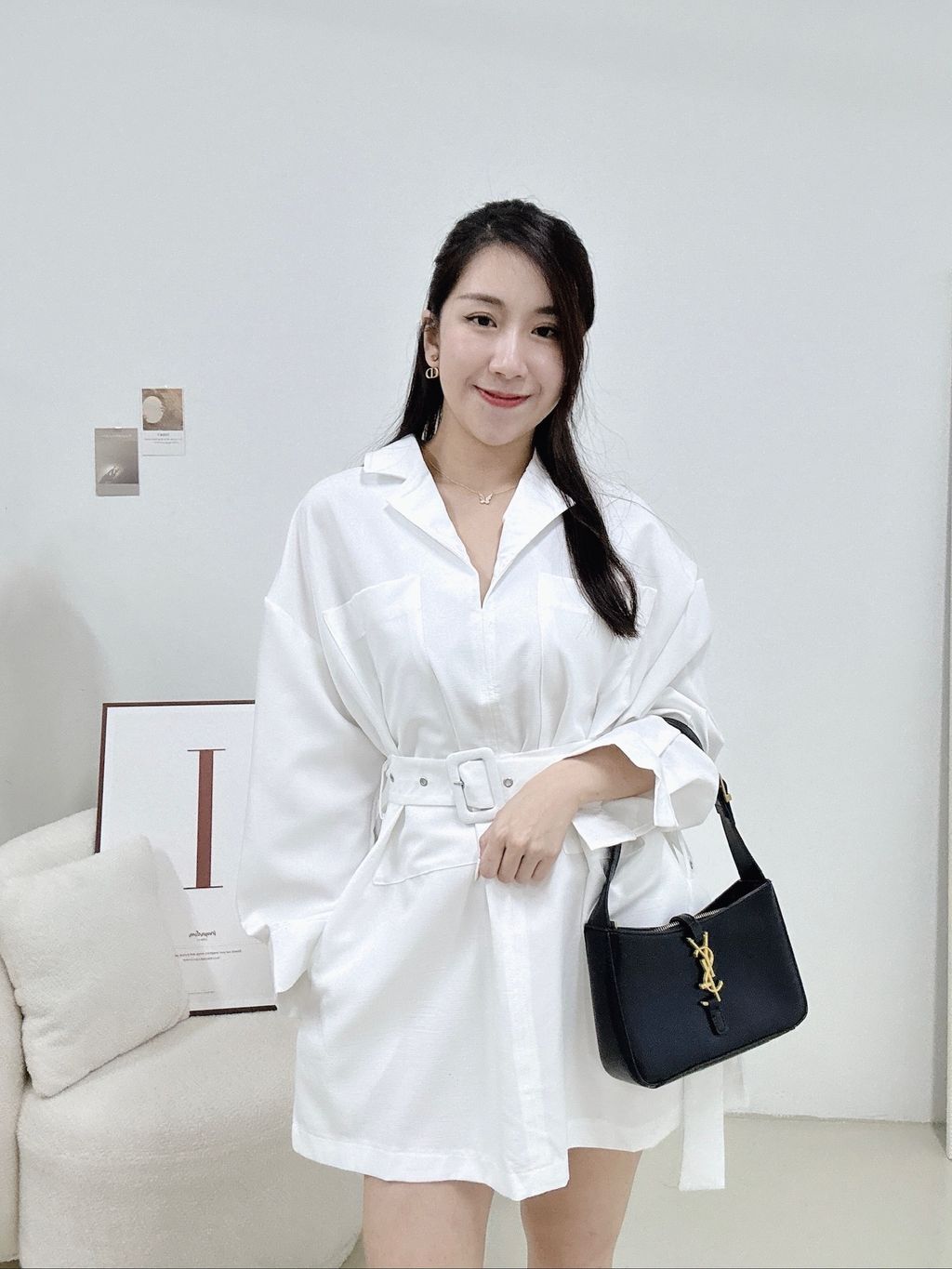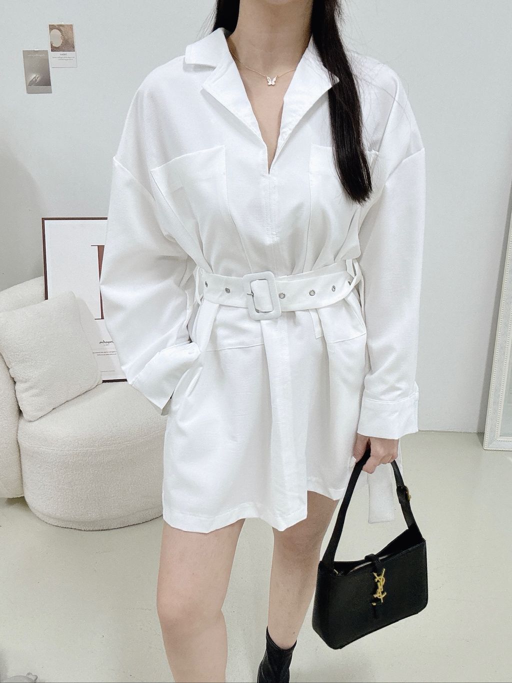 Features: Comfy mixed cotton material , collared blouse dress , V necked , come with belt , side pockets .
