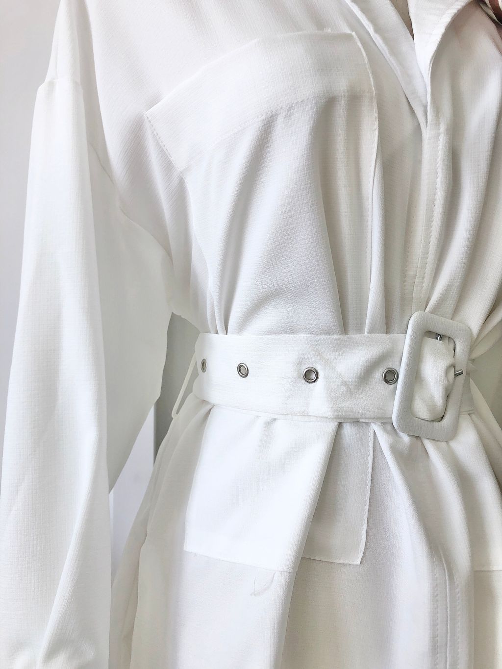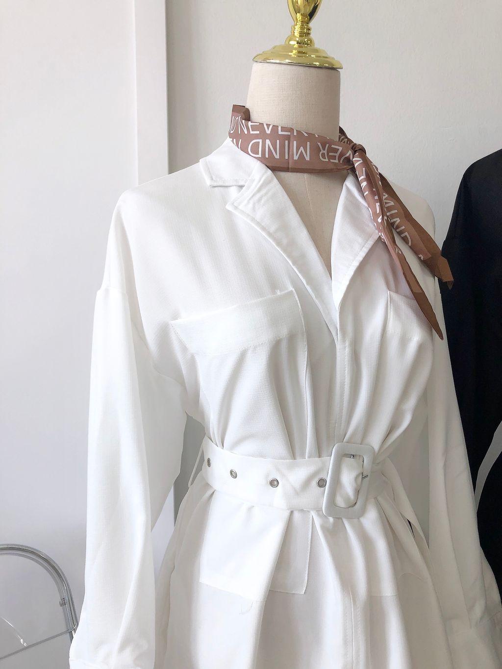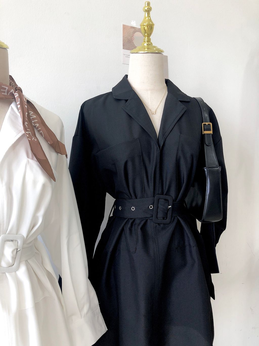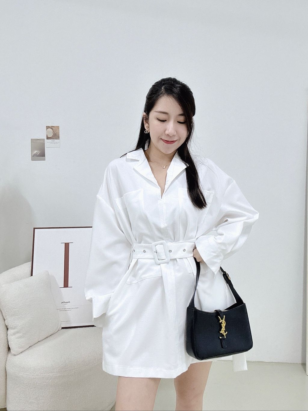 Features: Comfy mixed cotton material , collared blouse dress , V necked , come with belt , side pockets .