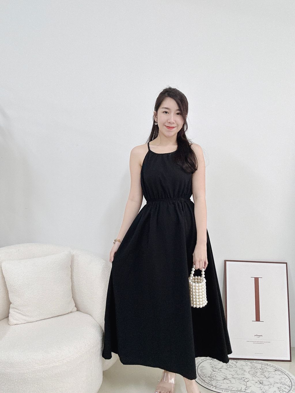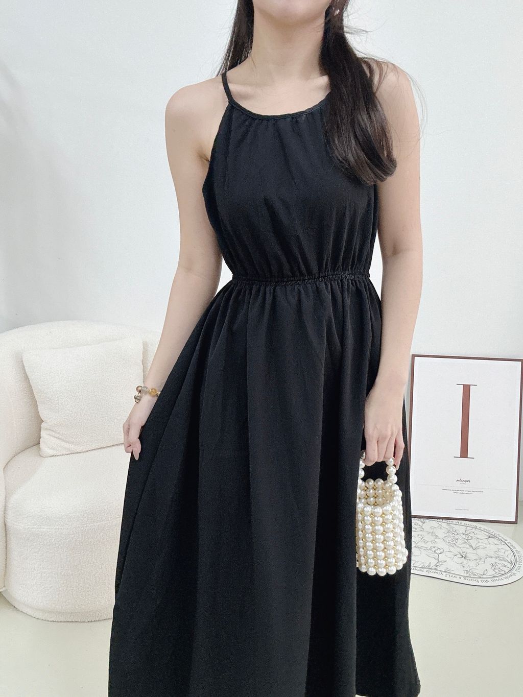 Features: Mixed linen cotton material , comfy texture , halter bareback dress design , self-tied halter ribbon , stretchy waistband .