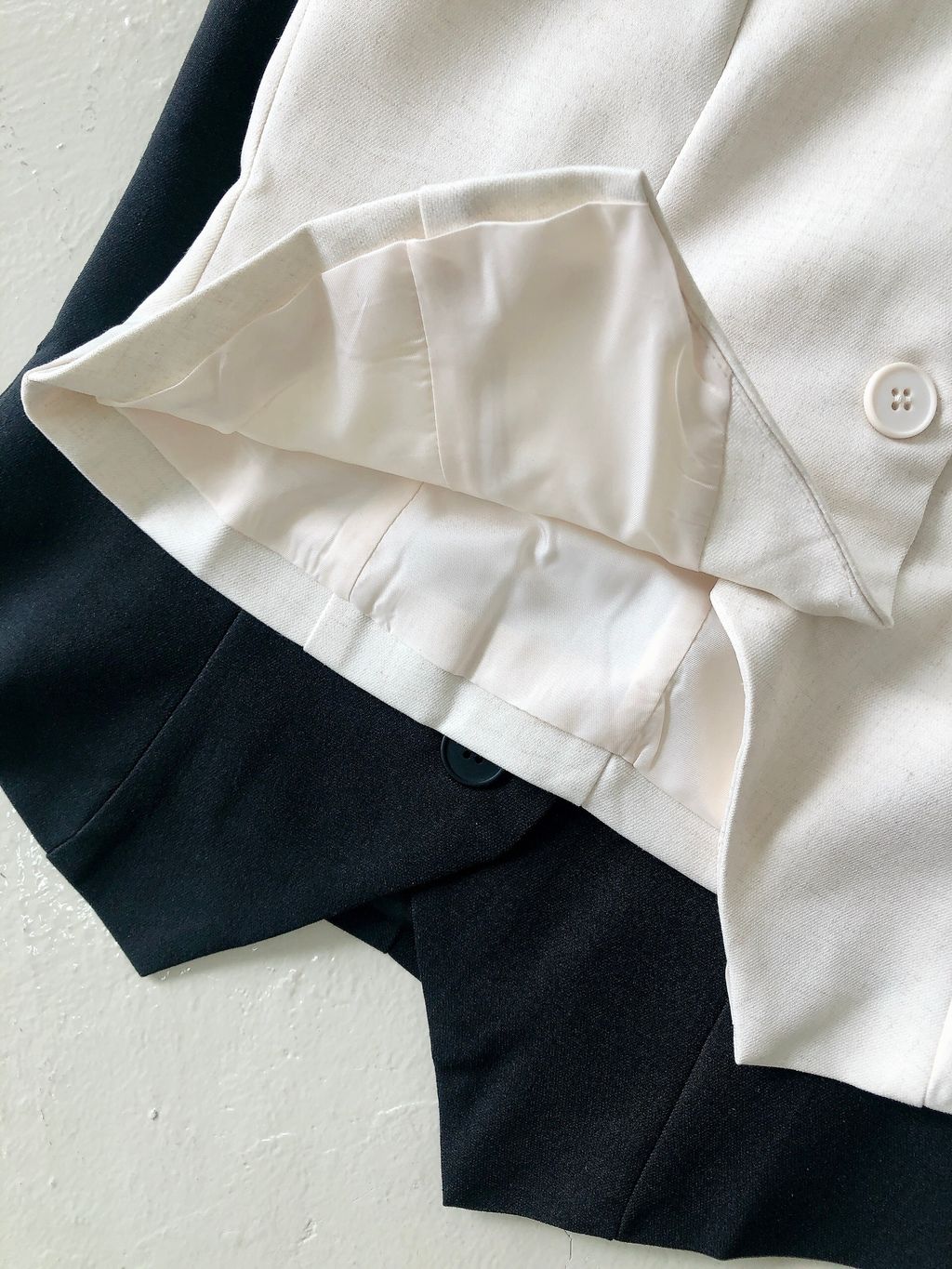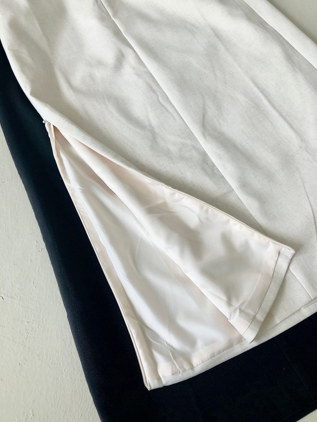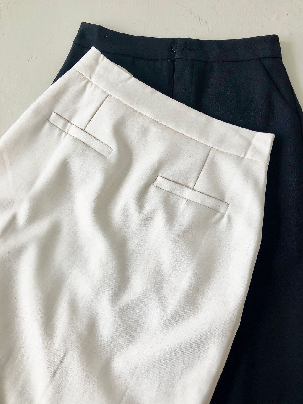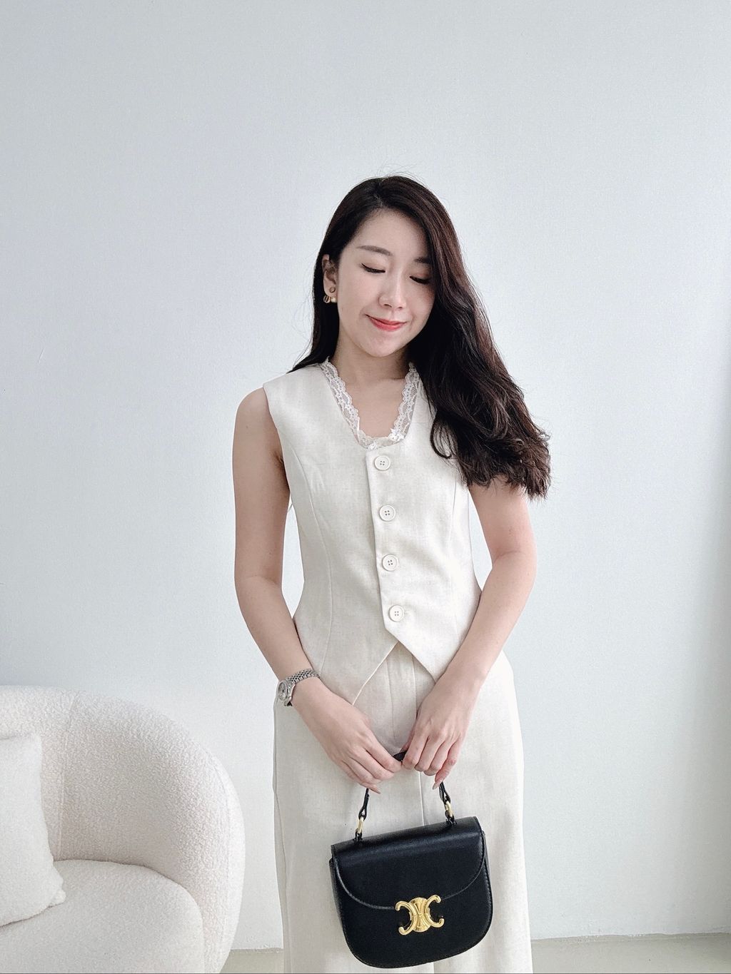 Features: Premium linen cotton material , comfy texture , sleeveless vest suit set design , button-up vest top , high-waisted suit skirt , come in one set , functional buttons , concealed side zipper , with side pockets , come with inner lining , can match with other top and bottoms separately .