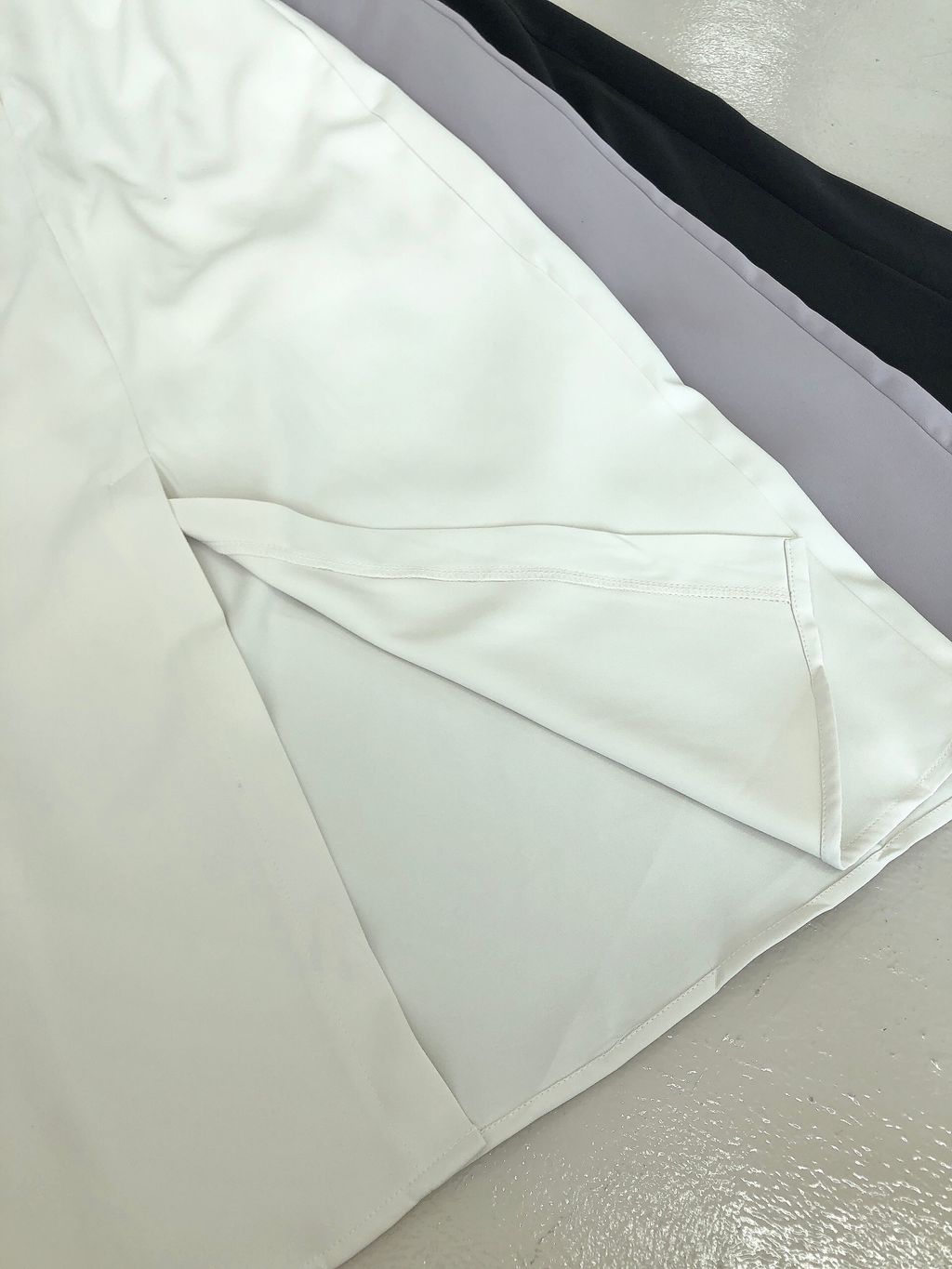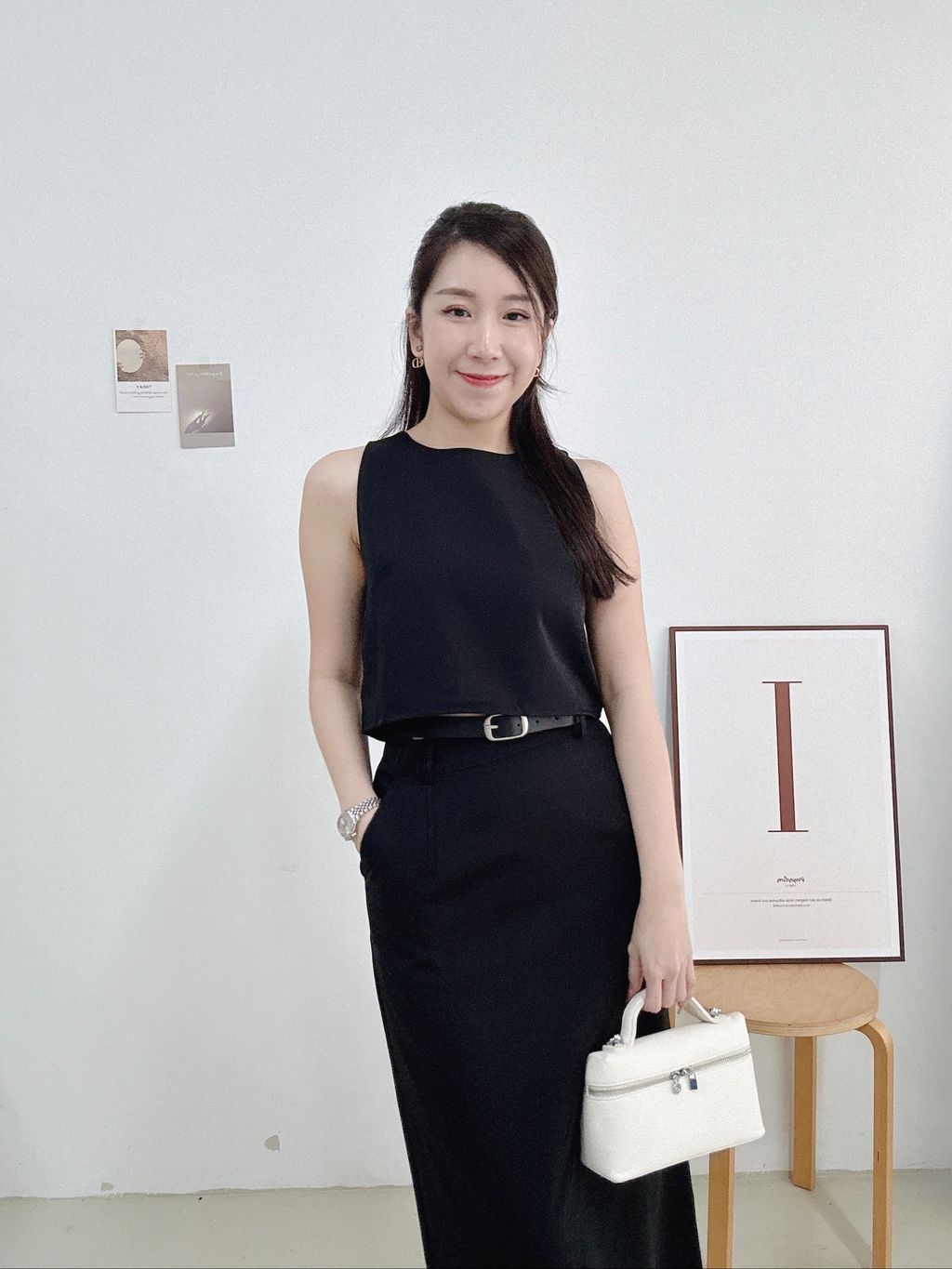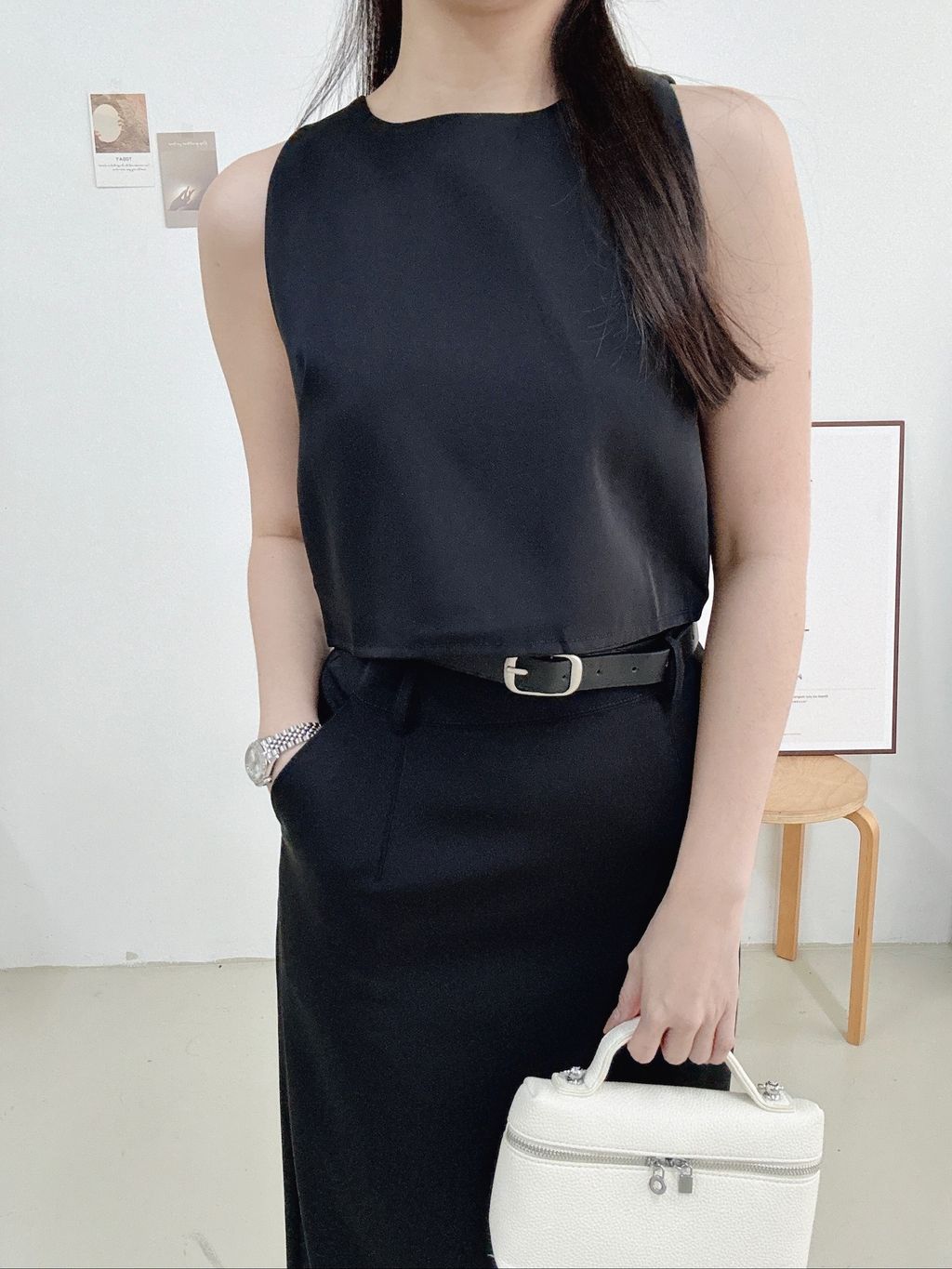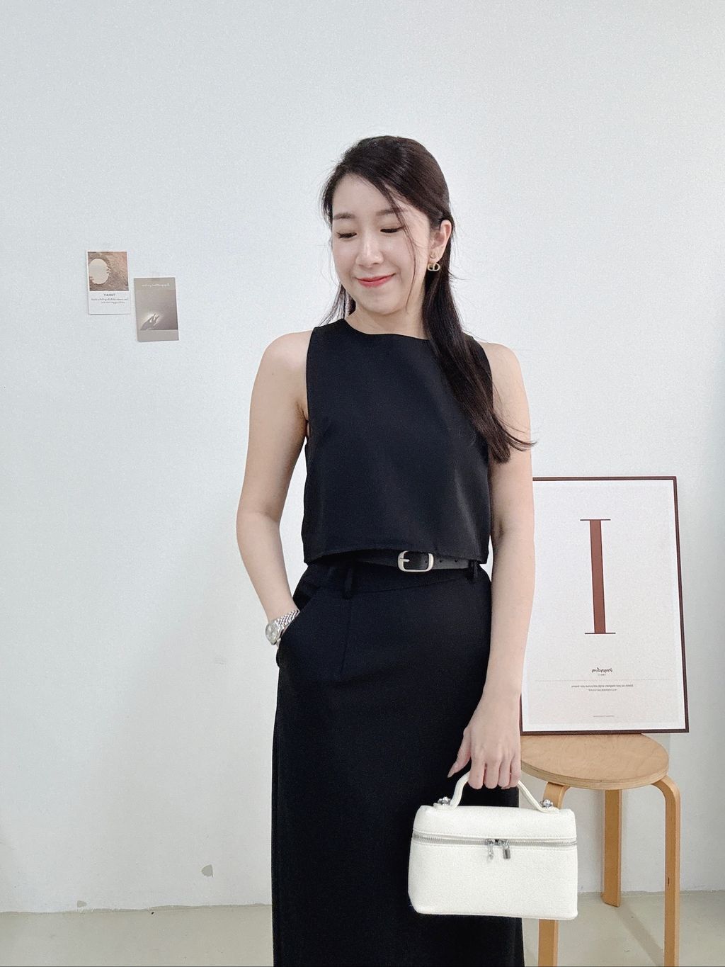 Features: Premium chino cotton material , comfy texture , sleeveless suit set design , cropped tank top , high-waisted midi skirt , come in one set , come with belt , side pockets , back zipper , with inner lining , can match with other top and bottoms separately .