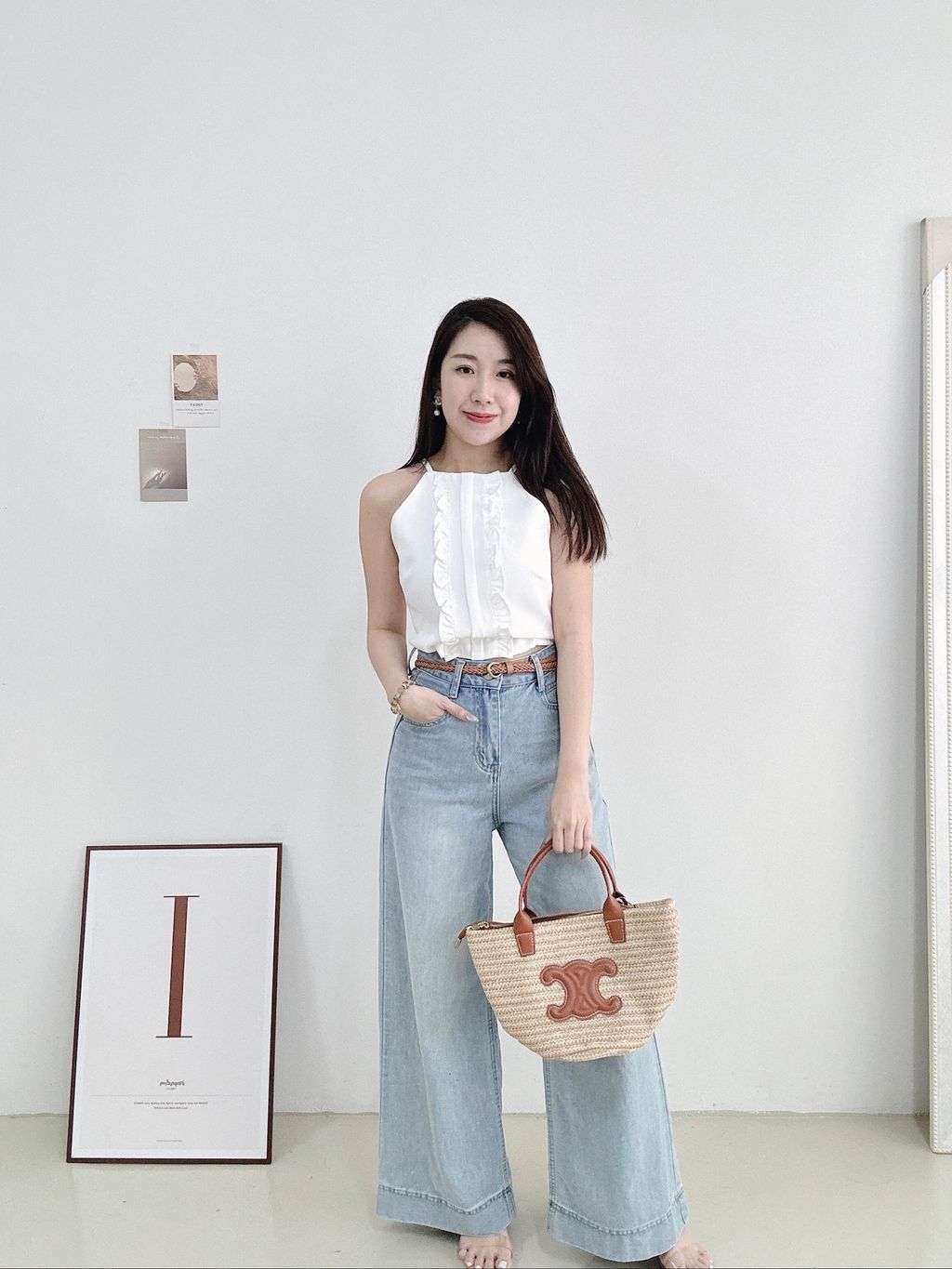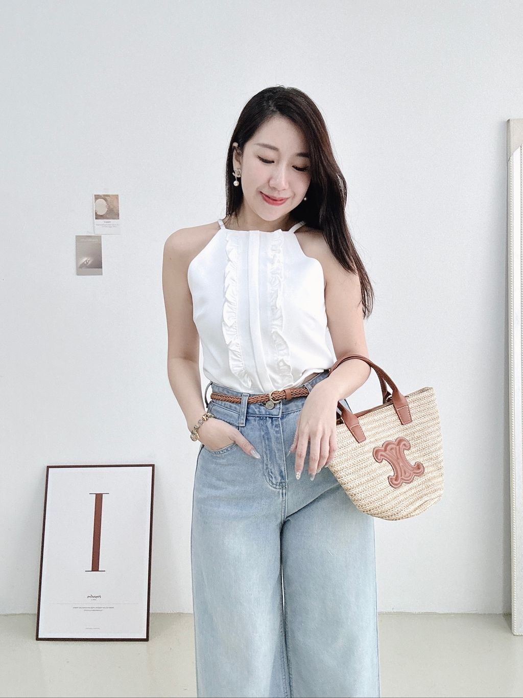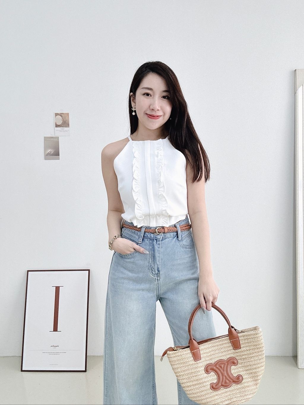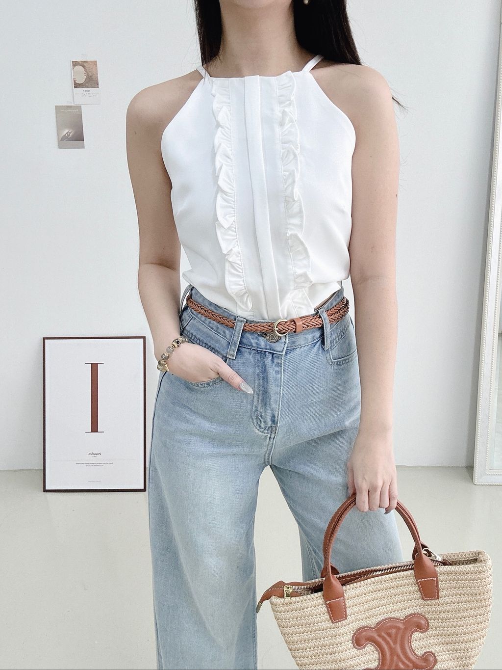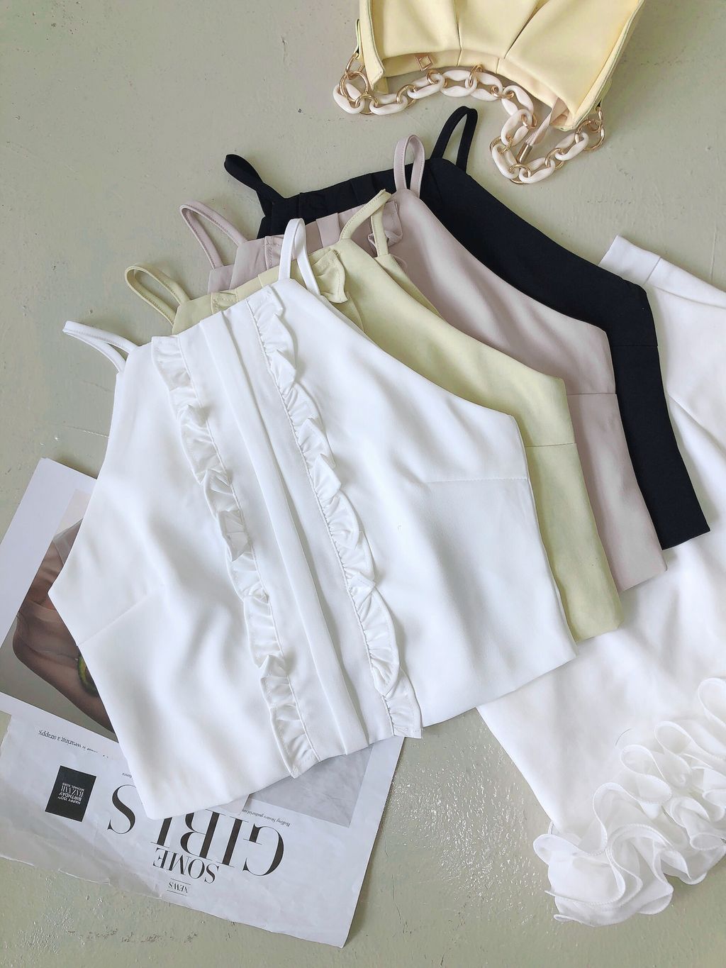 Features: Premium chino cotton material , ruffle halter crop top design , back zipper , easy to match with any bottom .