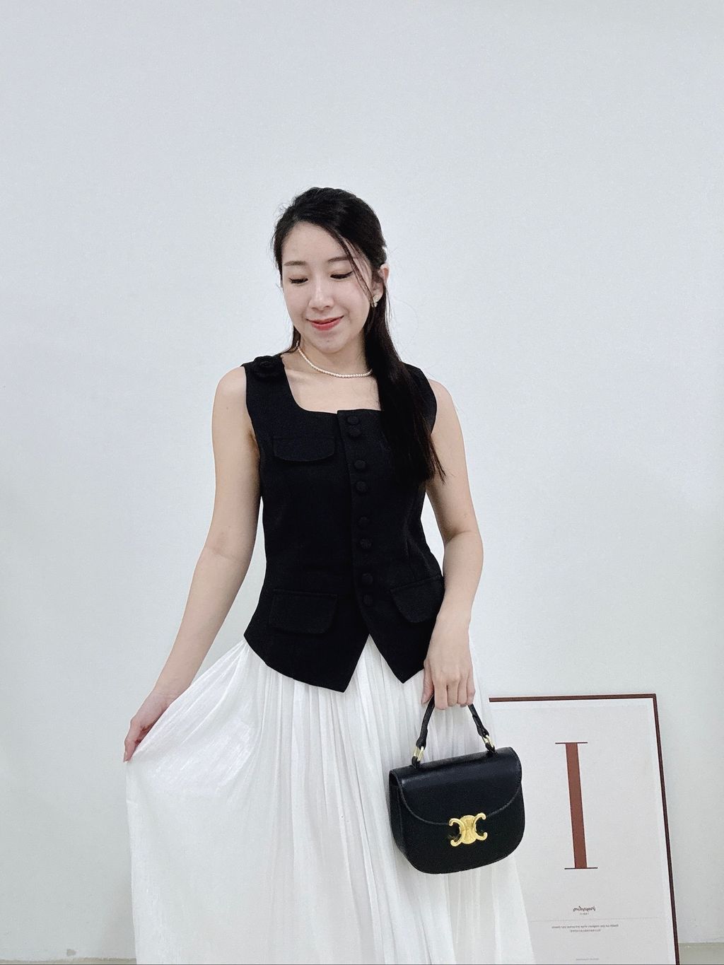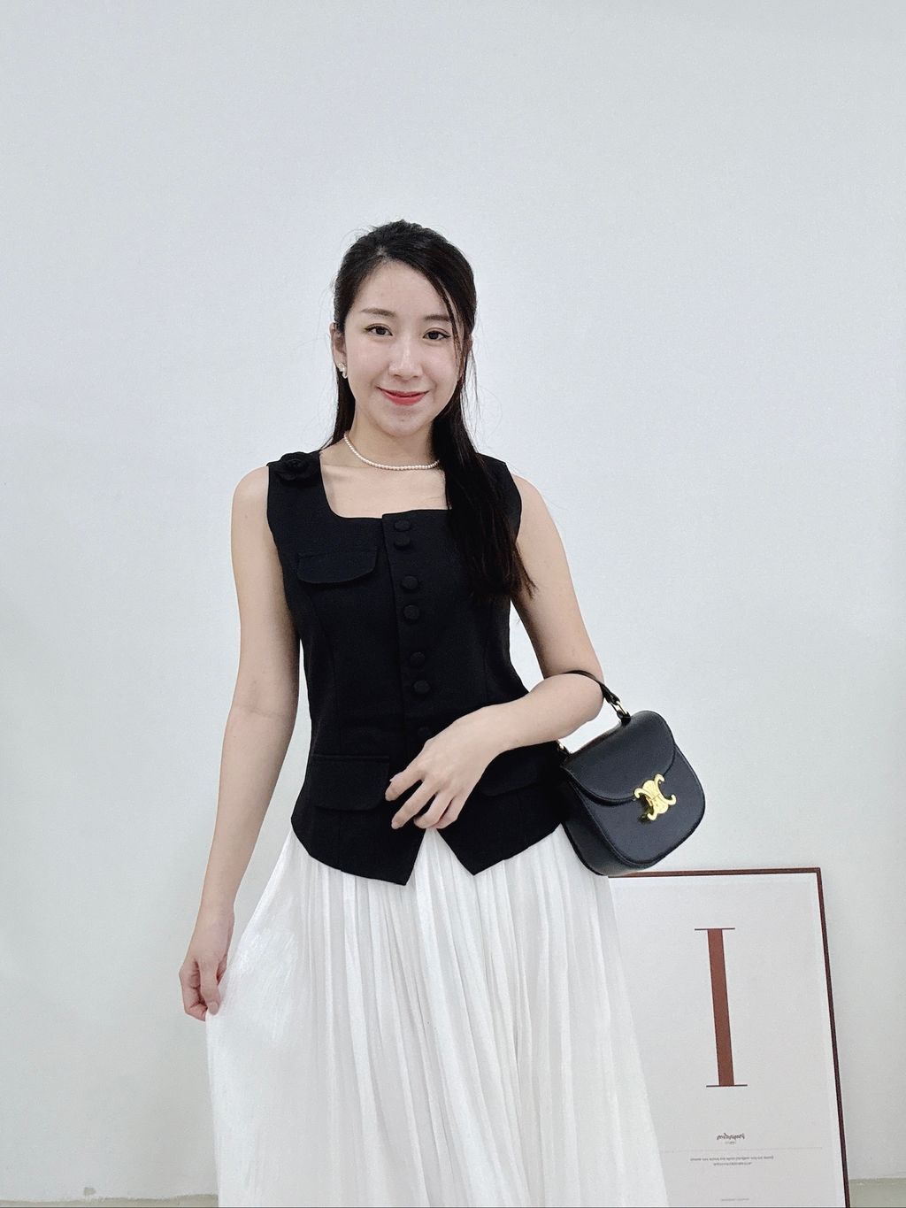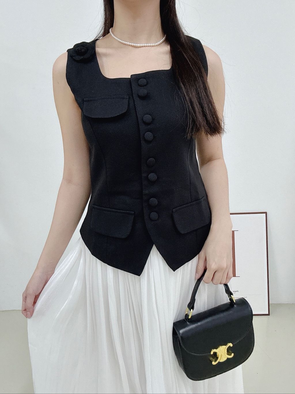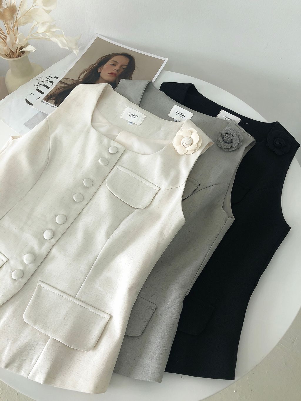 Features: Premium linen cotton materials , comfy texture , suit vest top design , functional buttons , come with rose brooch , easy to match with other bottoms.