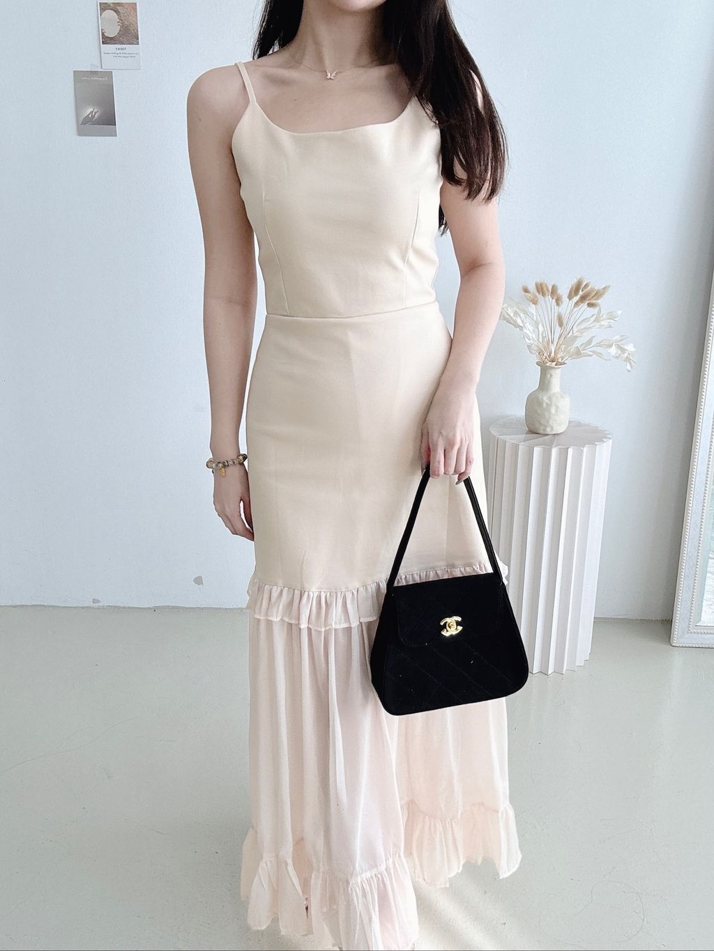 Features: Premium suit cotton material , mesh mermaid dress design , adjustable straps , slim-fit cutting , slightly stretchable , concealed back zipper , come with inner safety pants .