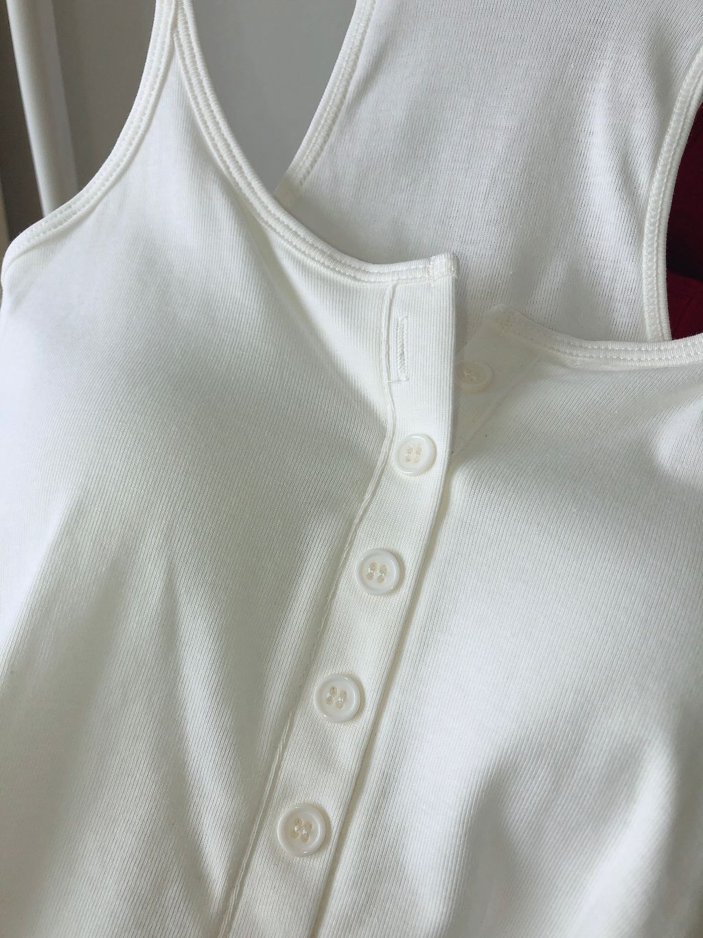 Features: Pure cotton material , stretchy material , comfy texture , casual button-up halter bralet top , padded , non-functional buttons , easy to match with any outerwears and bottoms.