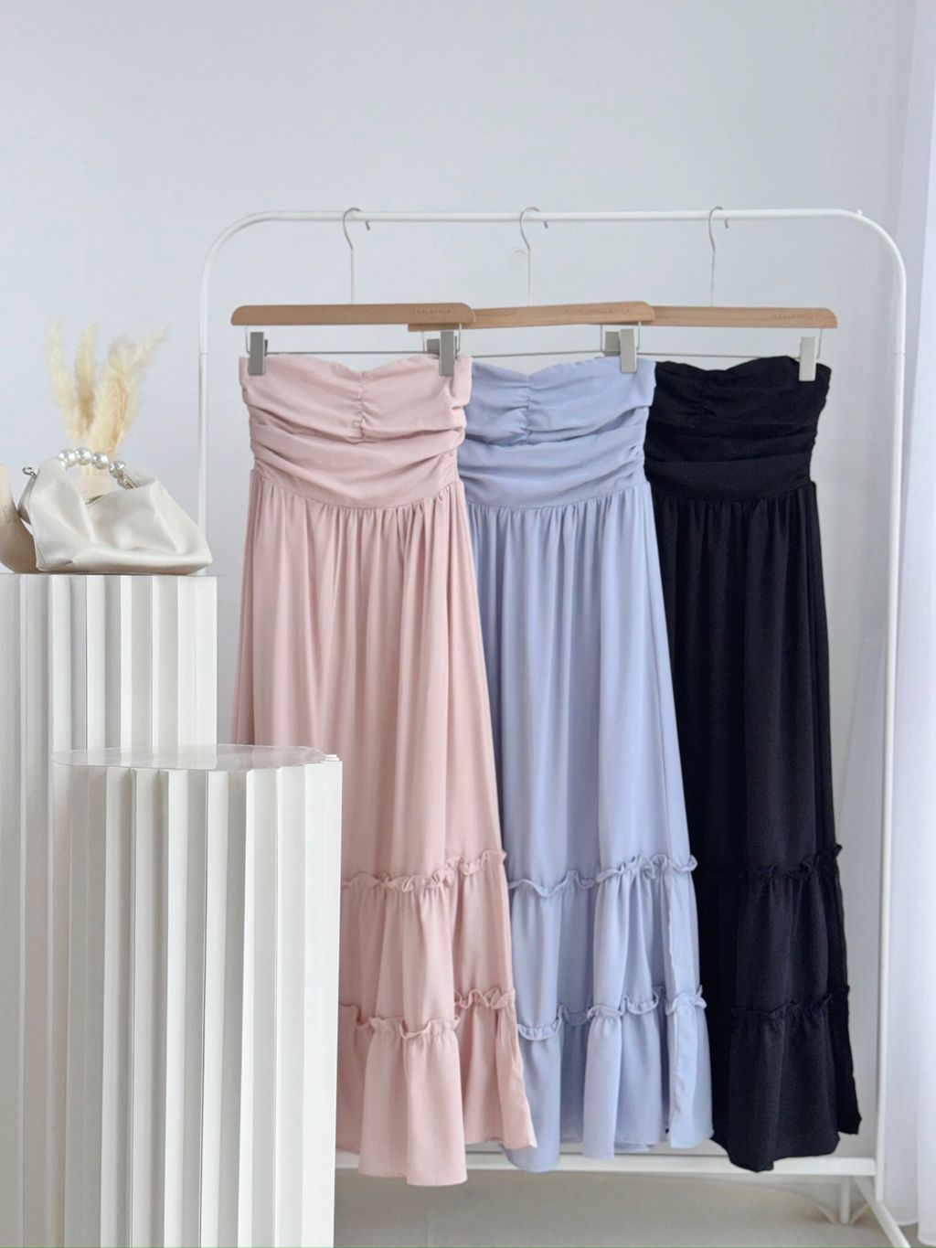 Milla Ruffle Tube Maxi Dress (Lilac Blue)