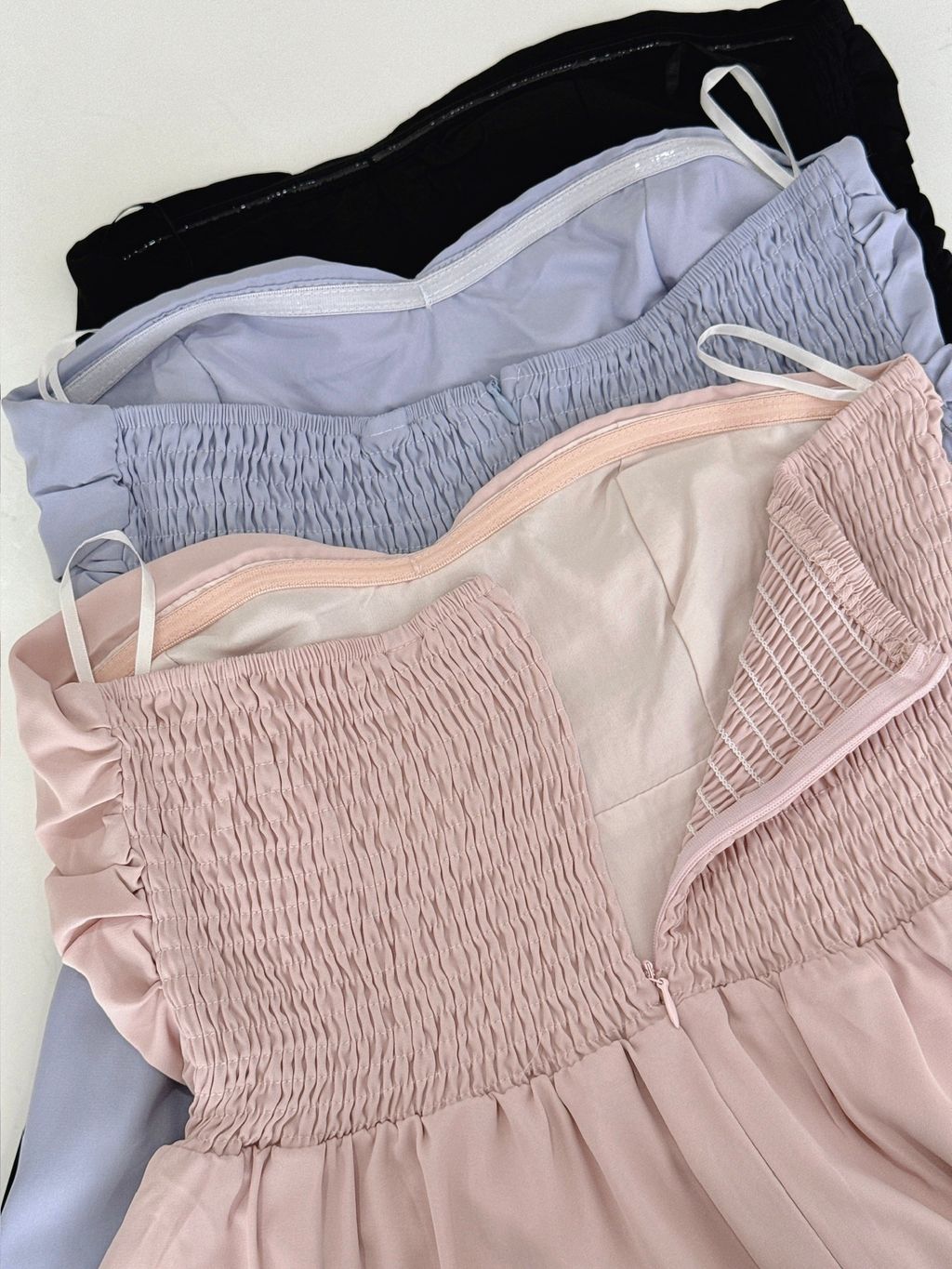 Features: Premium chiffon cotton material , ruffle tube dress design , stretchy back , comfy texture , come with anti slip band , back zipper .