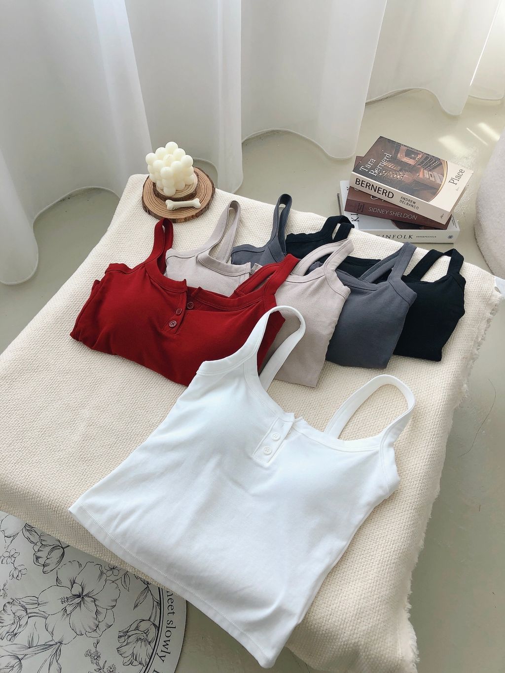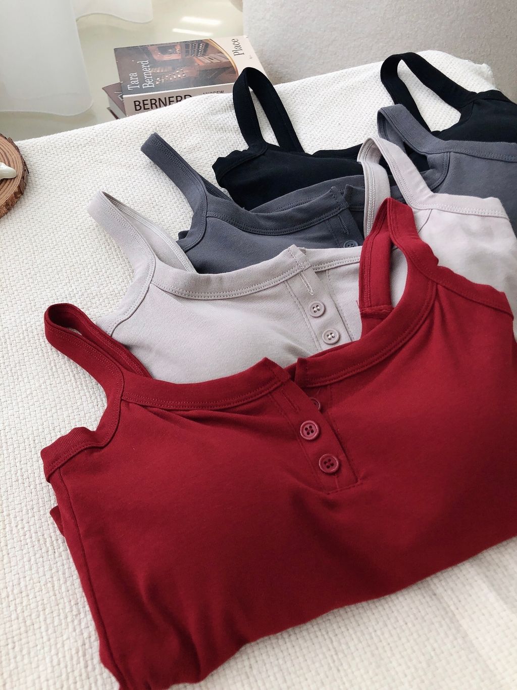 Features: Pure cotton material , stretchy material , comfy texture , casual button-up bralet top , padded , non-functional buttons , easy to match with any outerwears and bottoms.