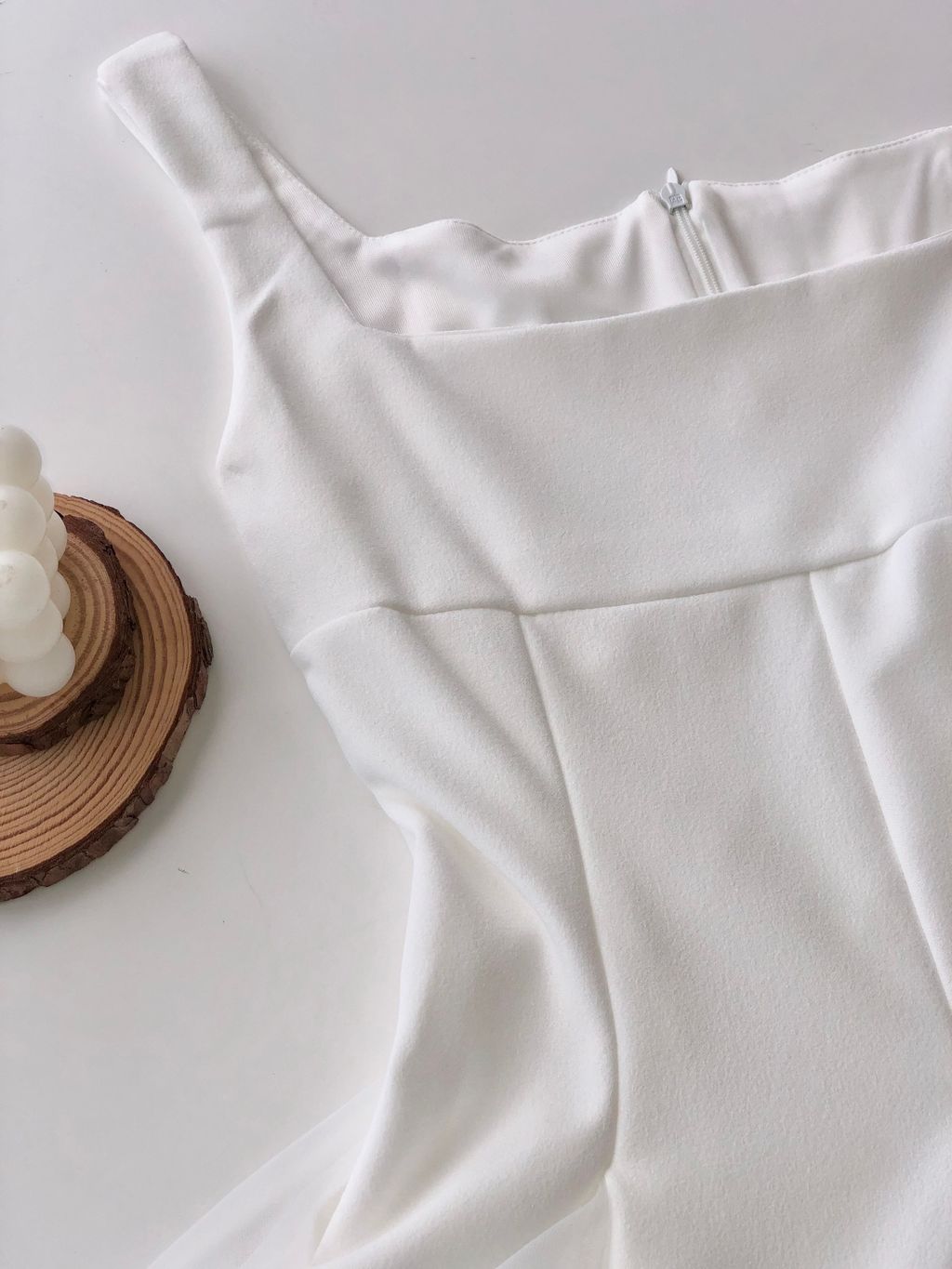 Features: Premium polyester cotton material , stretchy material , square neckline , mesh dress design , slim-fit cutting , concealed back zipper , come with inner lining , more suitable for petite ladies below 165cm to take .